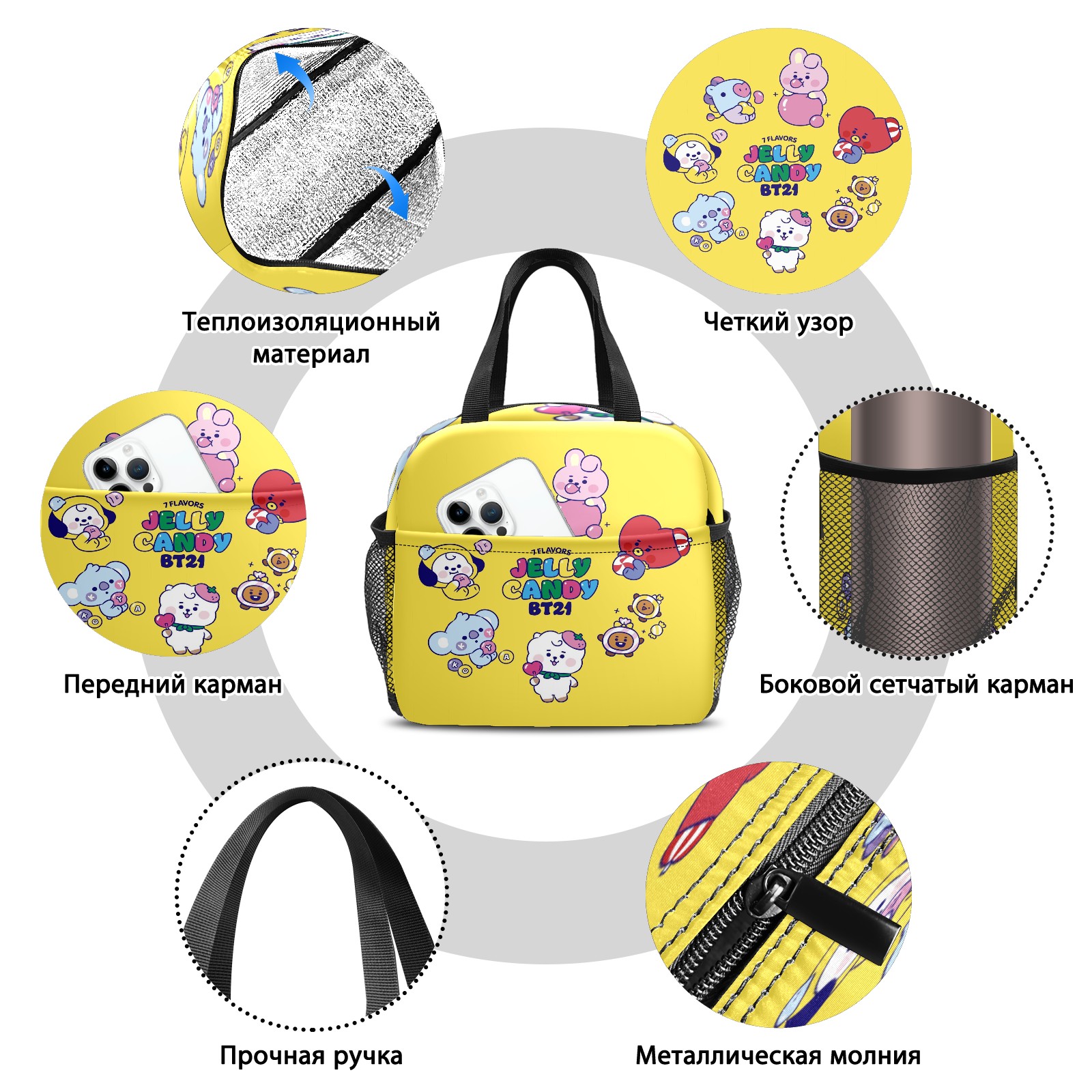 Lunch Bag,Lunch Box for Women Men,Bt21-08 Reusable Insulated Lunch Tote,Small Leakproof Cute Lunch Cooler with High Capacity for Work,Picnic,Camping