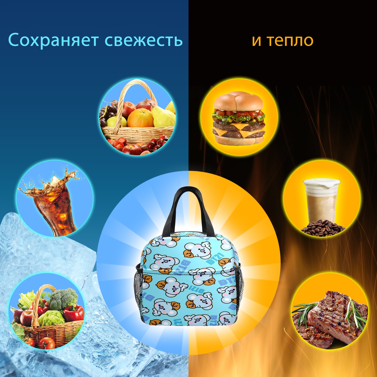 Lunch Bag,Lunch Box for Women Men,Bt21 Koya Bts Reusable Insulated Lunch Tote,Small Leakproof Cute Lunch Cooler with High Capacity for Work,Picnic,Camping