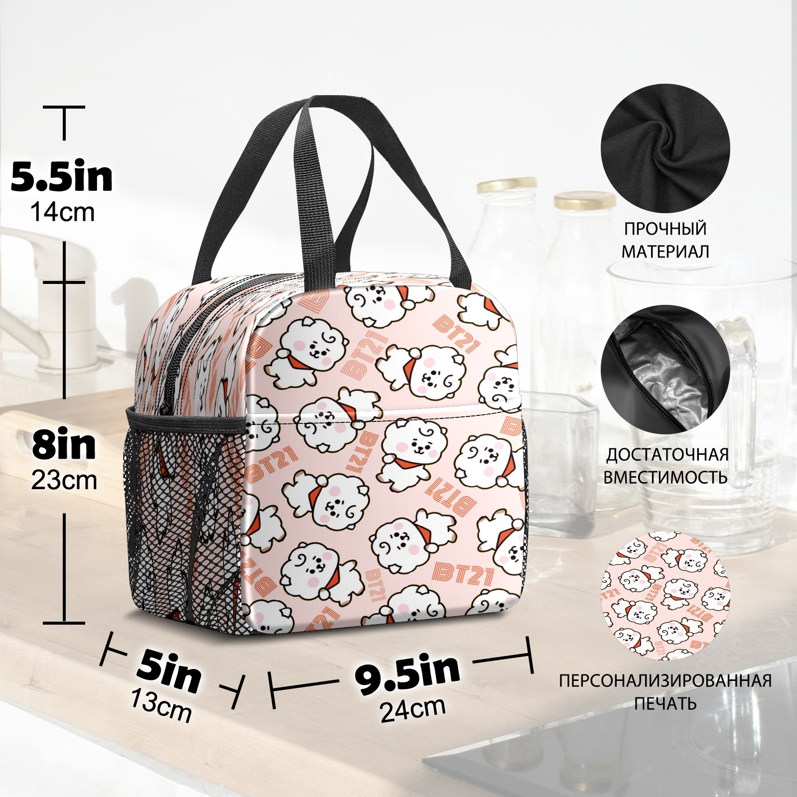 Lunch Bag,Lunch Box for Women Men,Bt21-02 Reusable Insulated Lunch Tote,Small Leakproof Cute Lunch Cooler with High Capacity for Work,Picnic,Camping