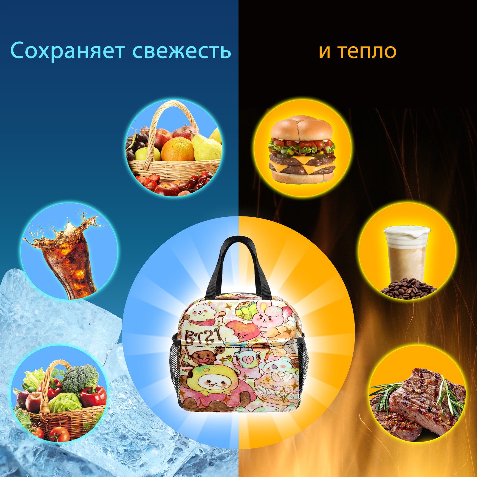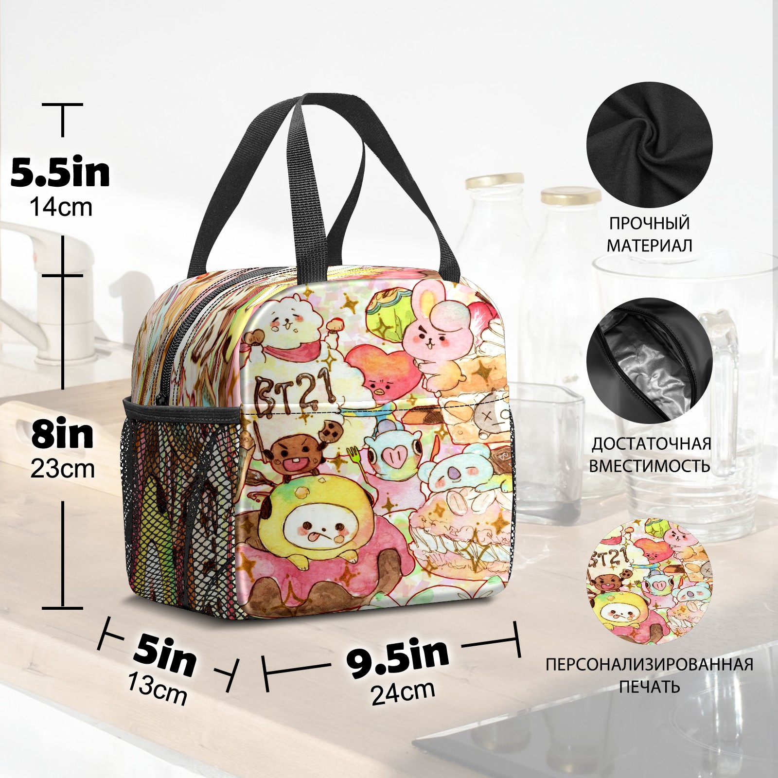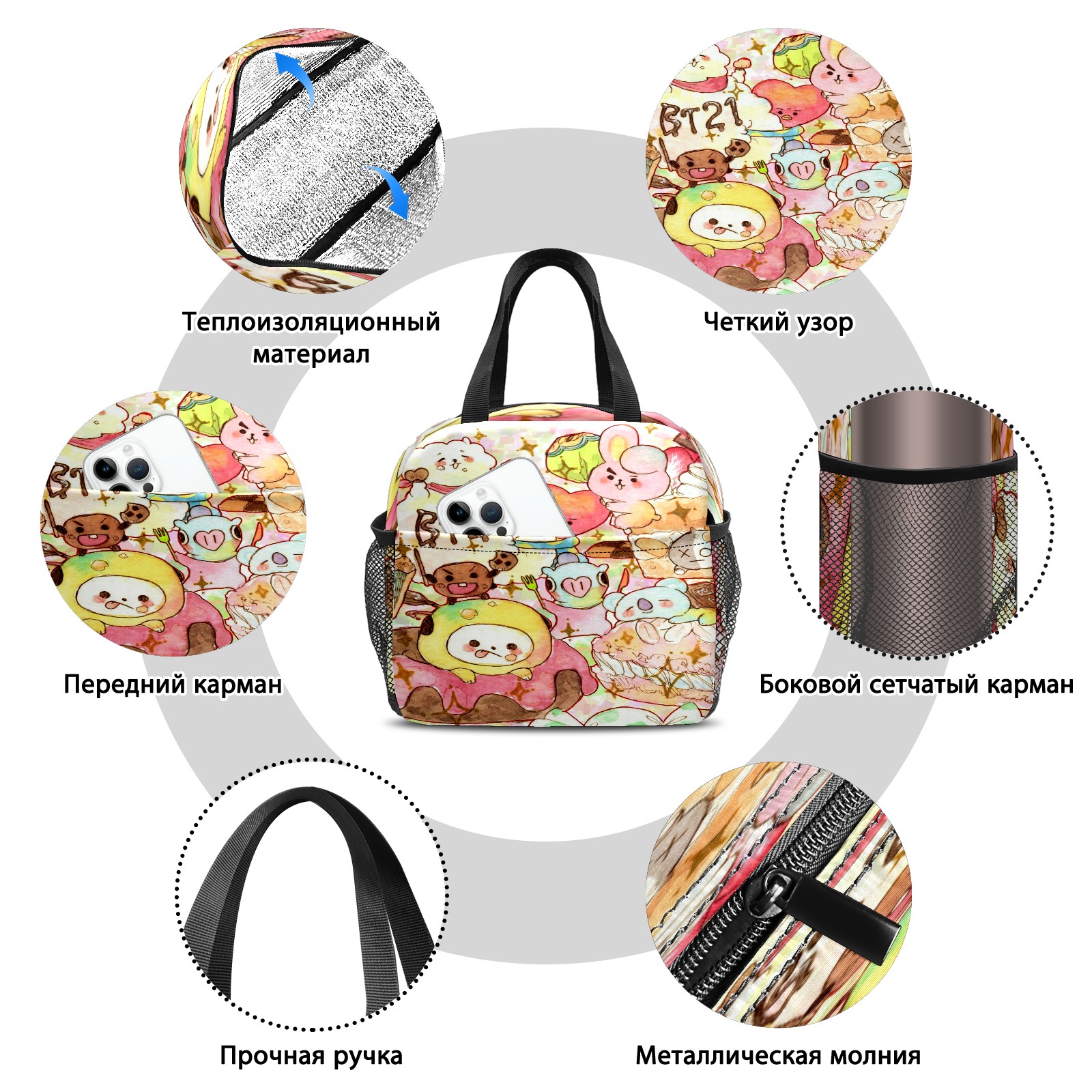 Lunch Bag,Lunch Box for Women Men,Bts Bt21 防弾少年団 Reusable Insulated Lunch Tote,Small Leakproof Cute Lunch Cooler with High Capacity for Work,Picnic,Camping