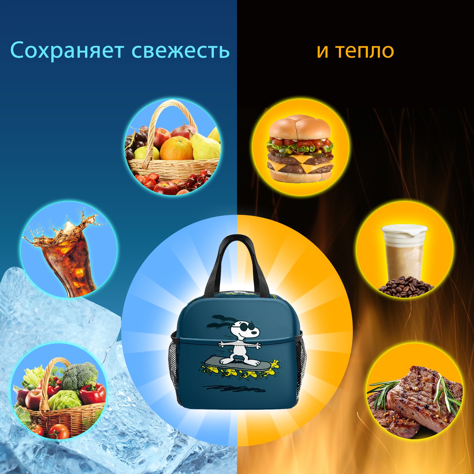 Lunch Bag,Lunch Box for Women Men,スヌーピー Reusable Insulated Lunch Tote,Small Leakproof Cute Lunch Cooler with High Capacity for Work,Picnic,Camping