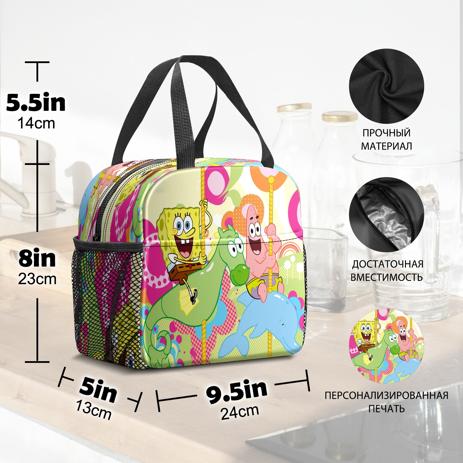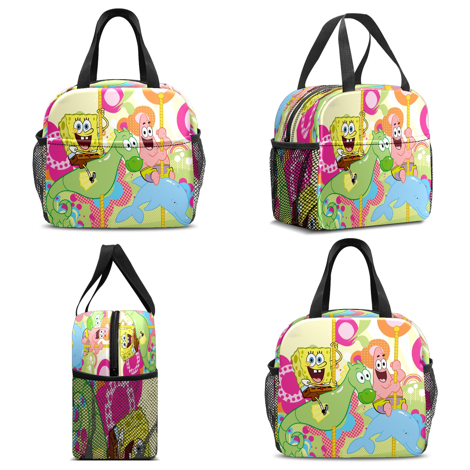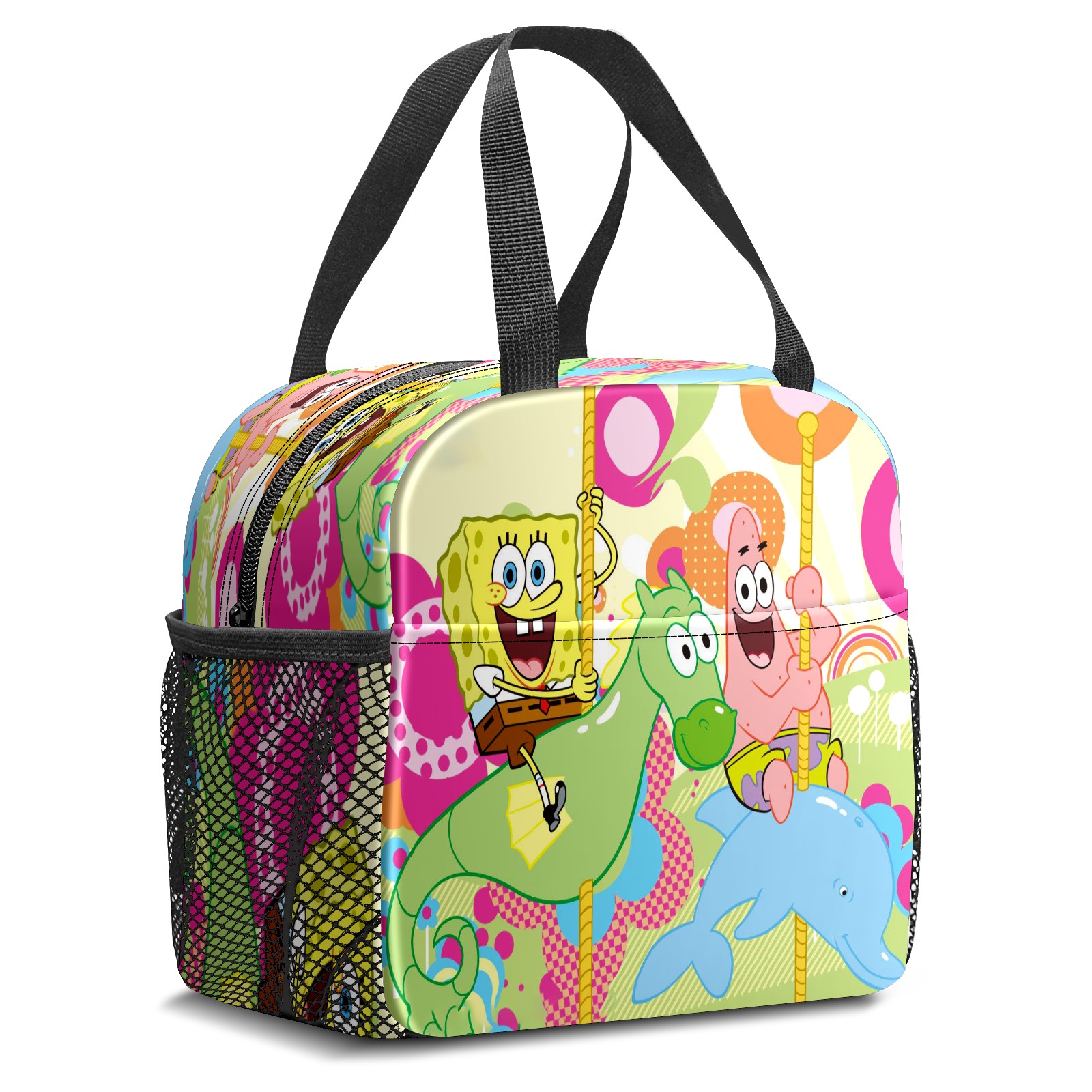 Lunch Bag,Lunch Box for Women Men,Spongebob Patrick Carousel Dolphin Hippo Colorful Reusable Insulated Lunch Tote,Small Leakproof Cute Lunch Cooler with High Capacity for Work,Picnic,Camping