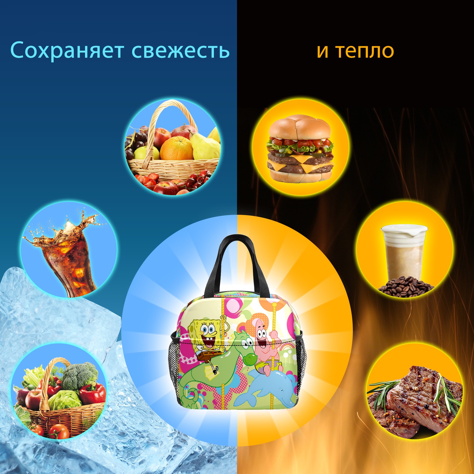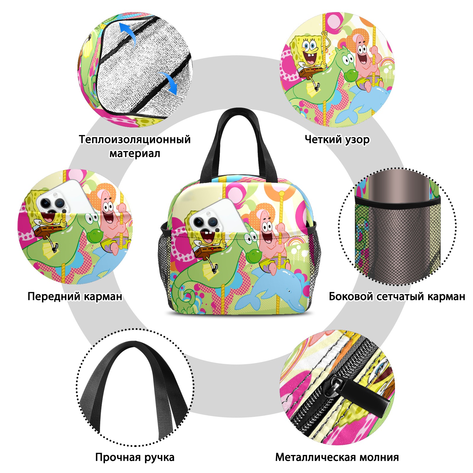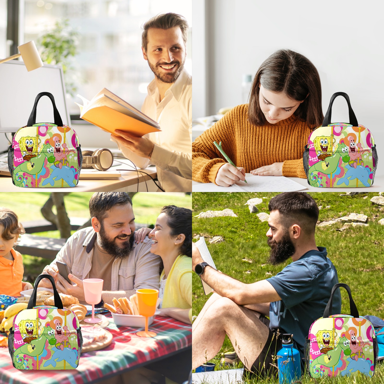 Lunch Bag,Lunch Box for Women Men,Spongebob Patrick Carousel Dolphin Hippo Colorful Reusable Insulated Lunch Tote,Small Leakproof Cute Lunch Cooler with High Capacity for Work,Picnic,Camping