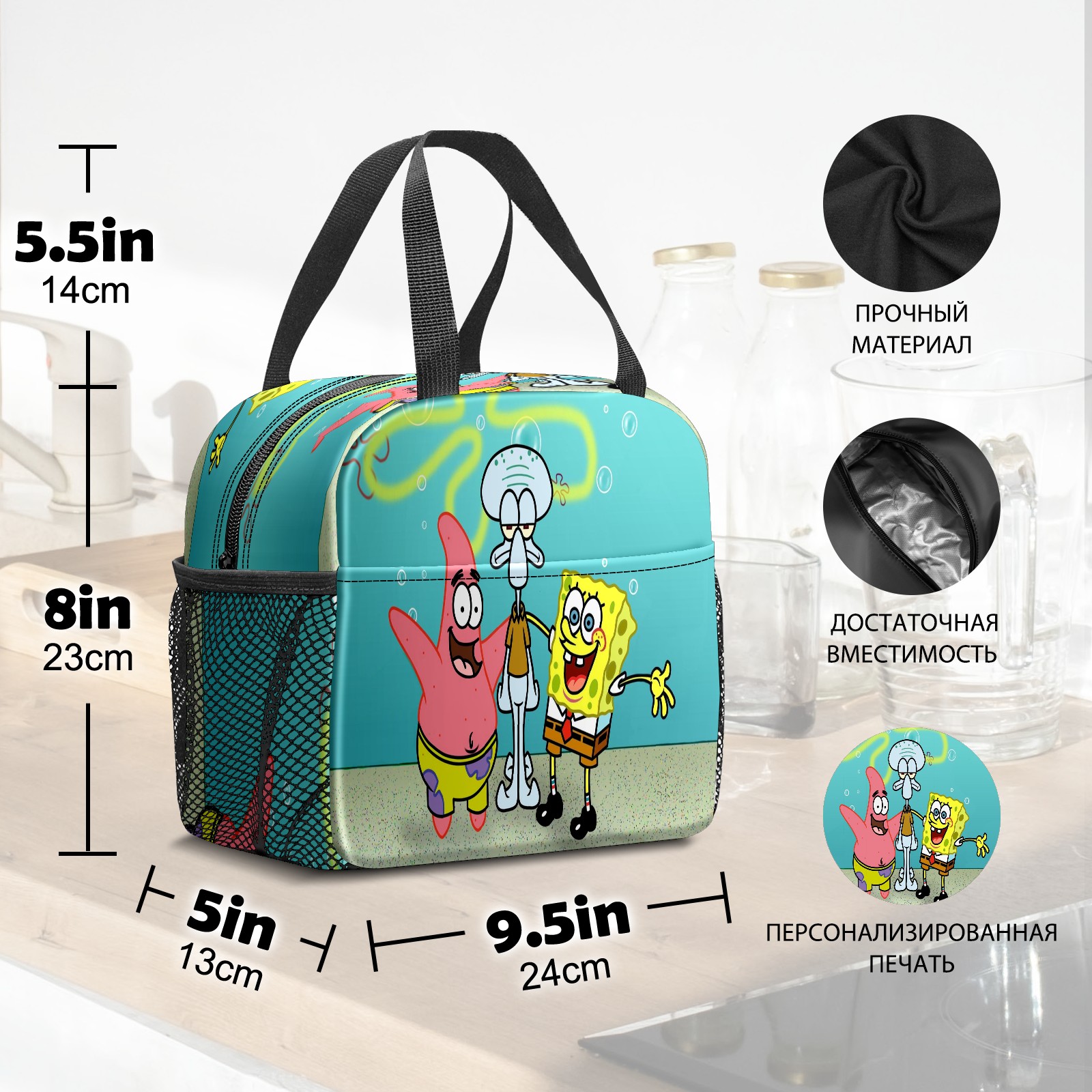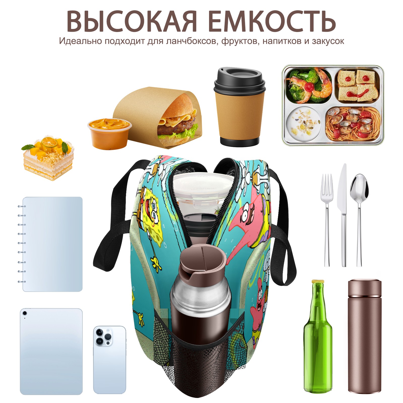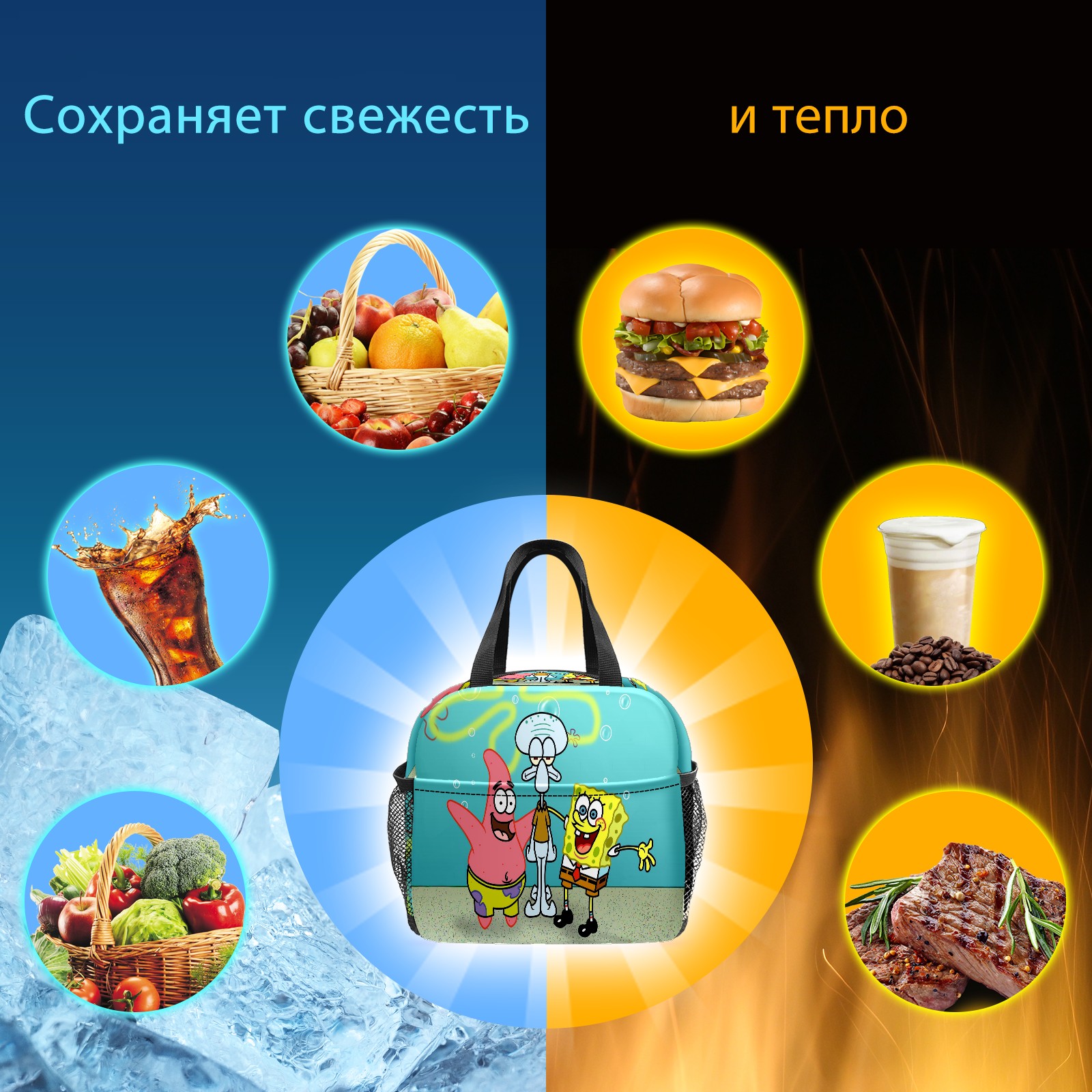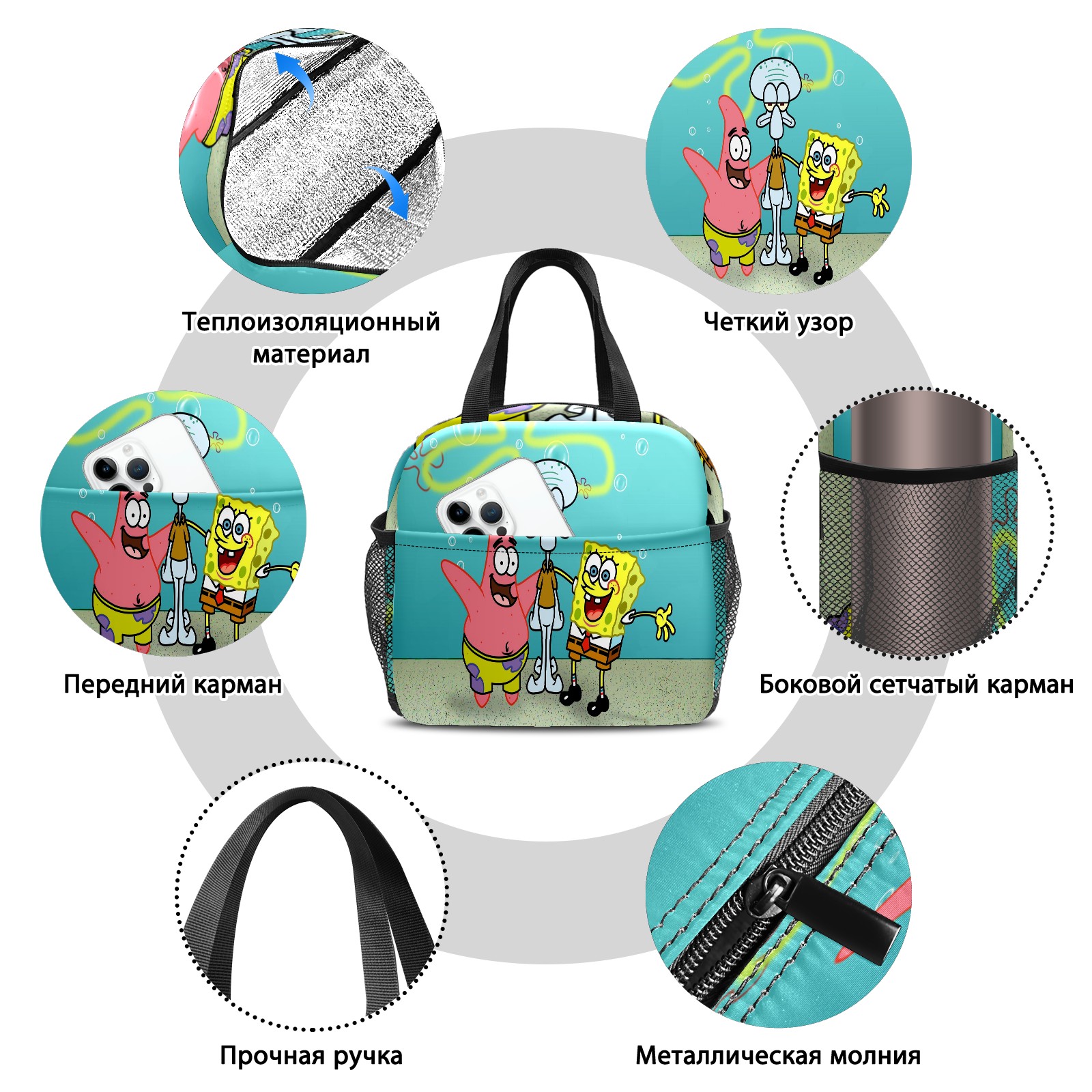 Lunch Bag,Lunch Box for Women Men,Happy Patrick Spongebob Squidward Water Bubble Reusable Insulated Lunch Tote,Small Leakproof Cute Lunch Cooler with High Capacity for Work,Picnic,Camping