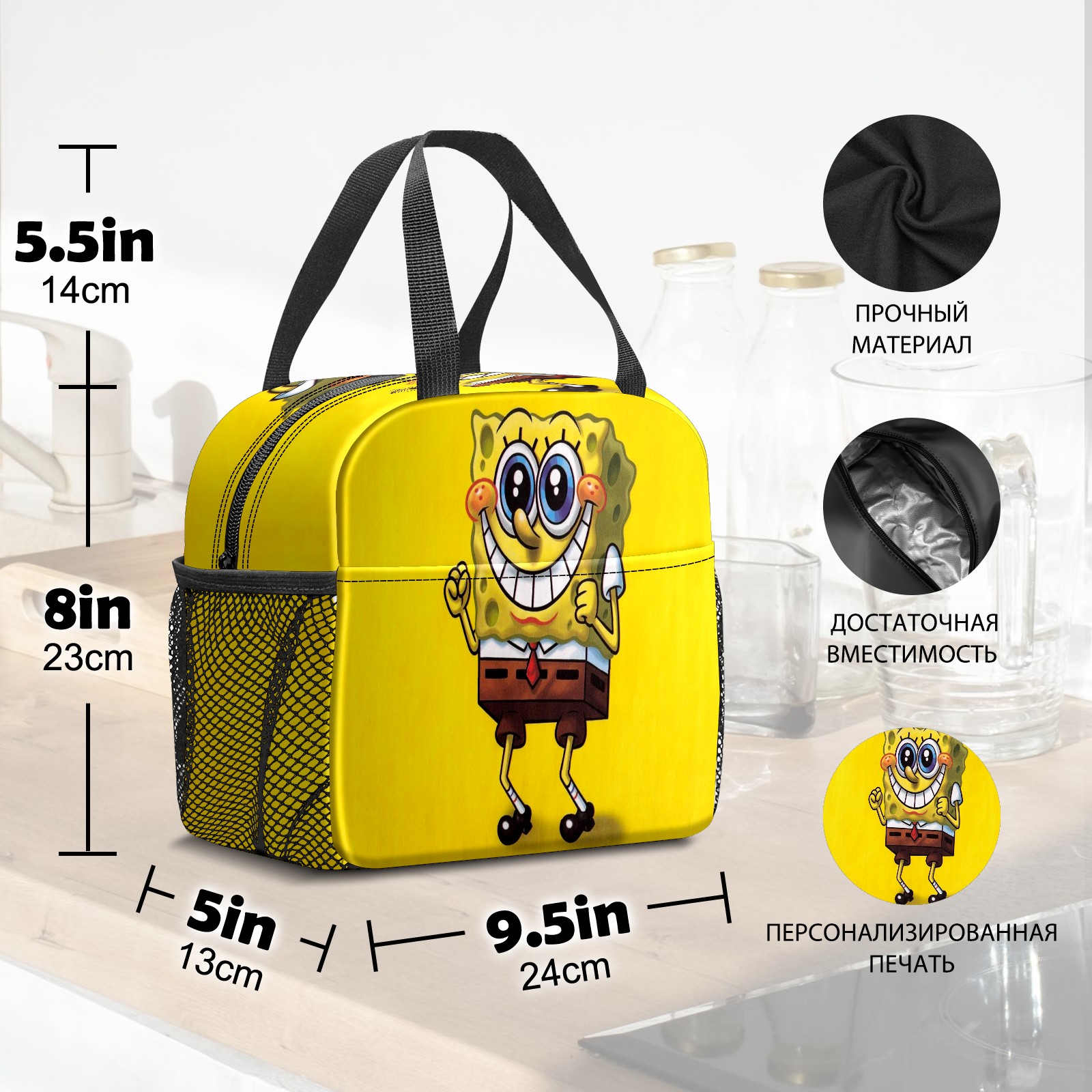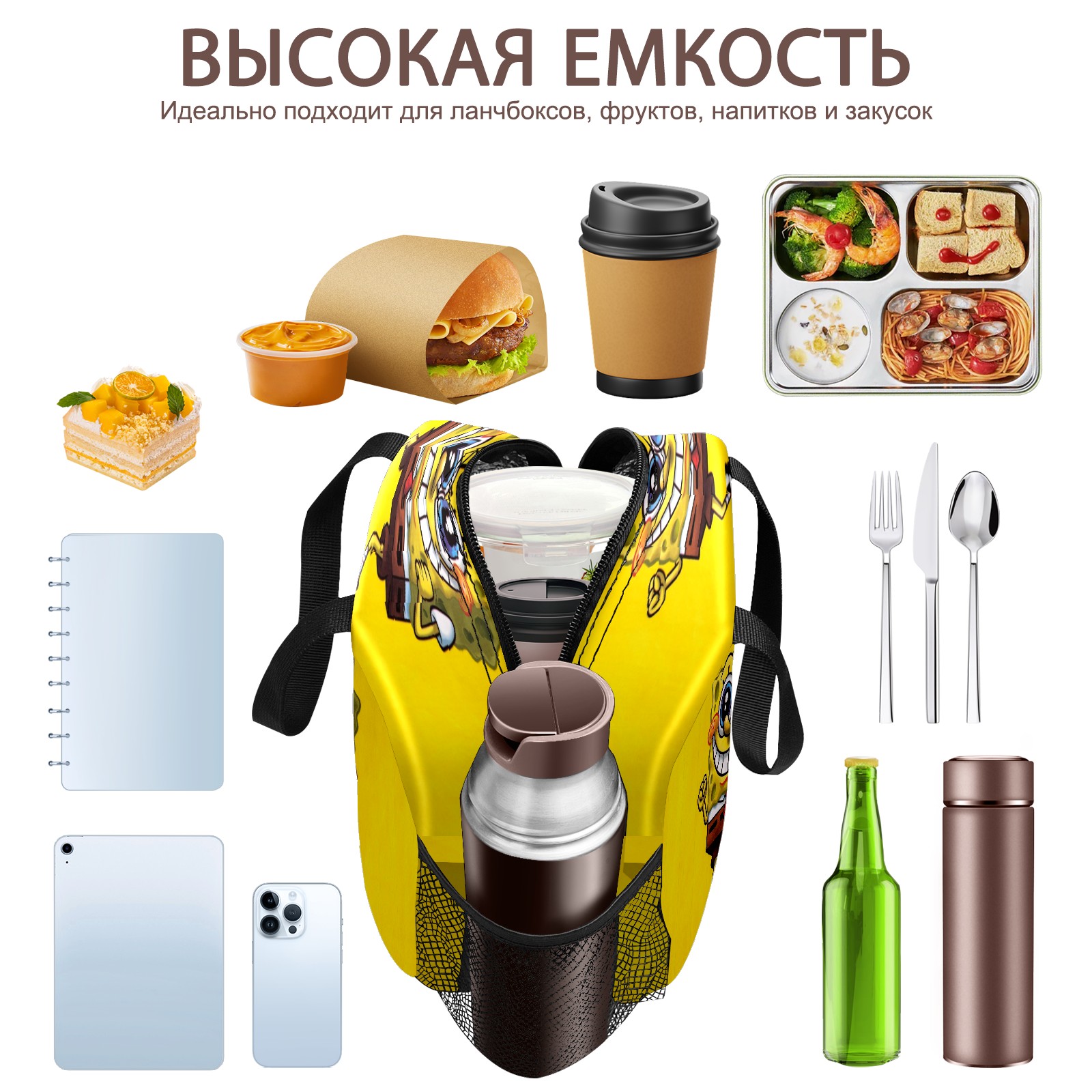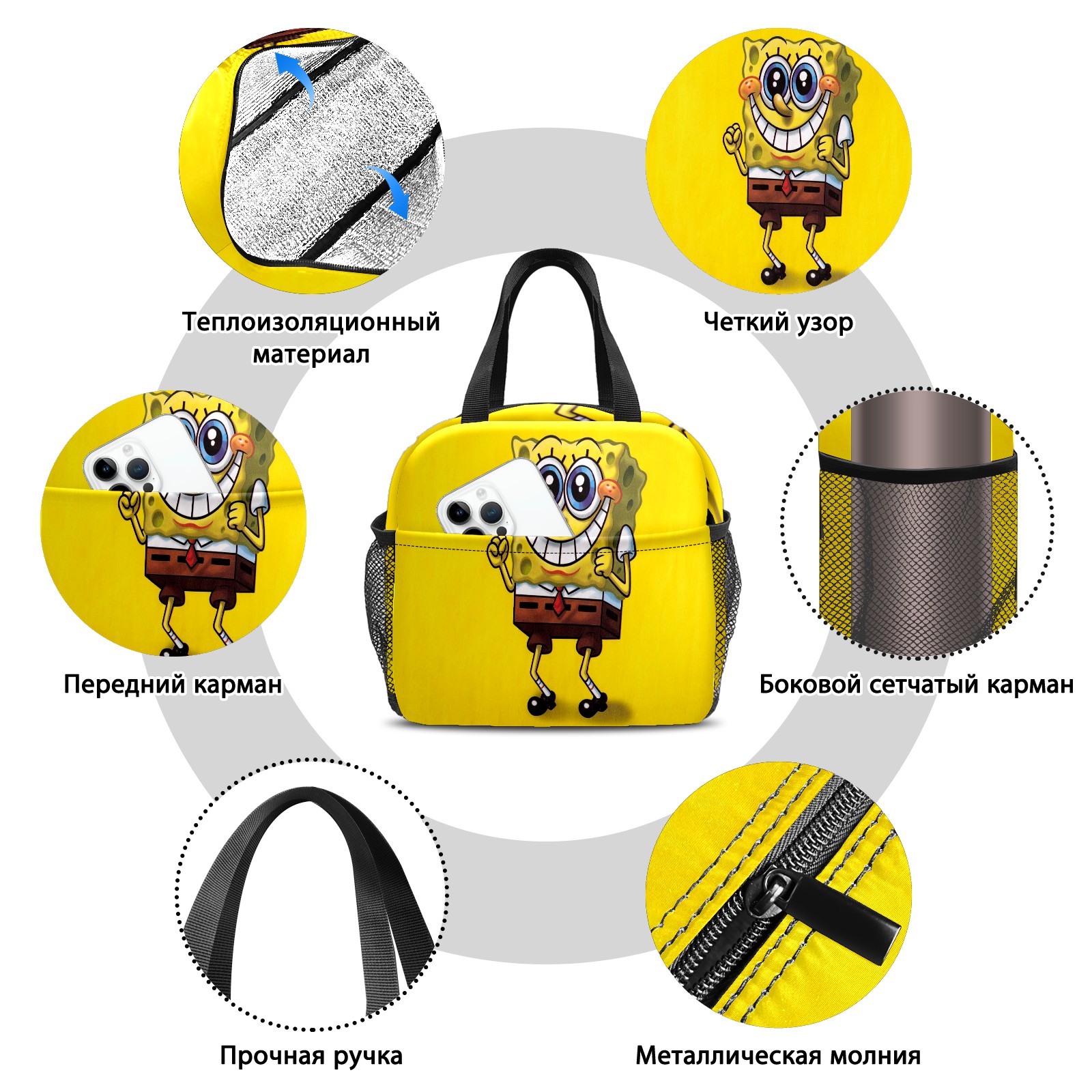 Lunch Bag,Lunch Box for Women Men,Funny Spongebob Cute Smile Yellow Background Reusable Insulated Lunch Tote,Small Leakproof Cute Lunch Cooler with High Capacity for Work,Picnic,Camping