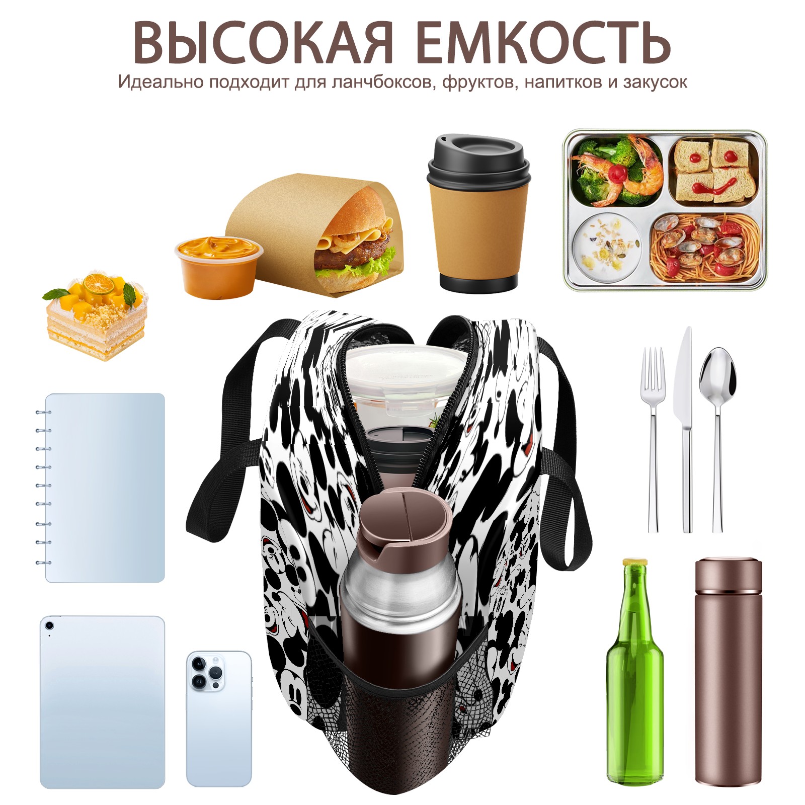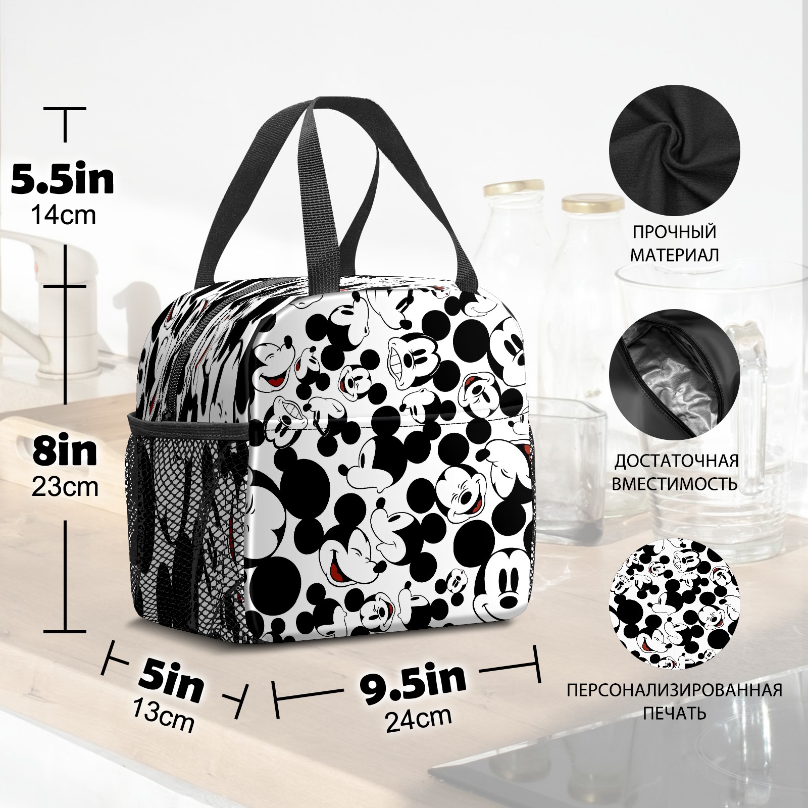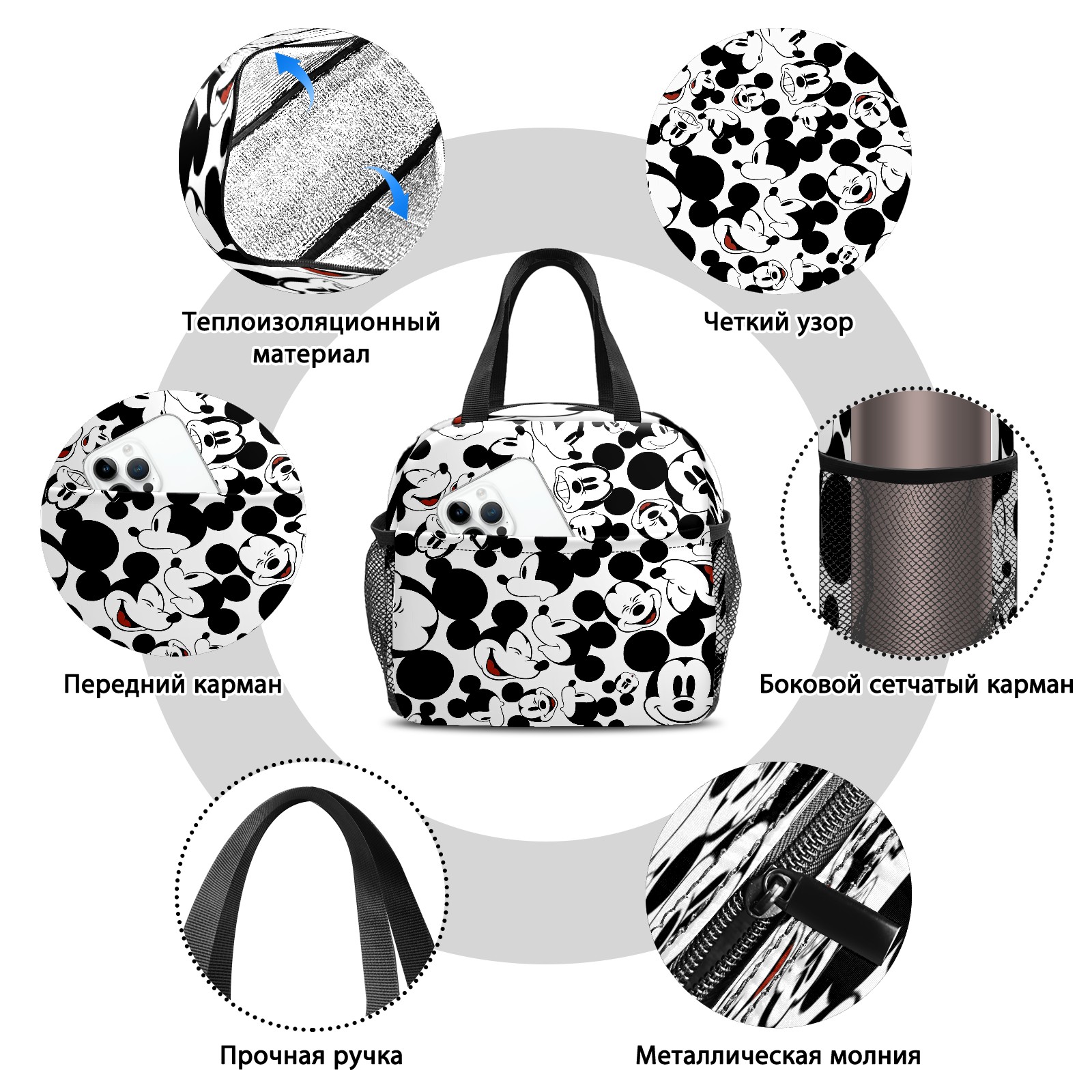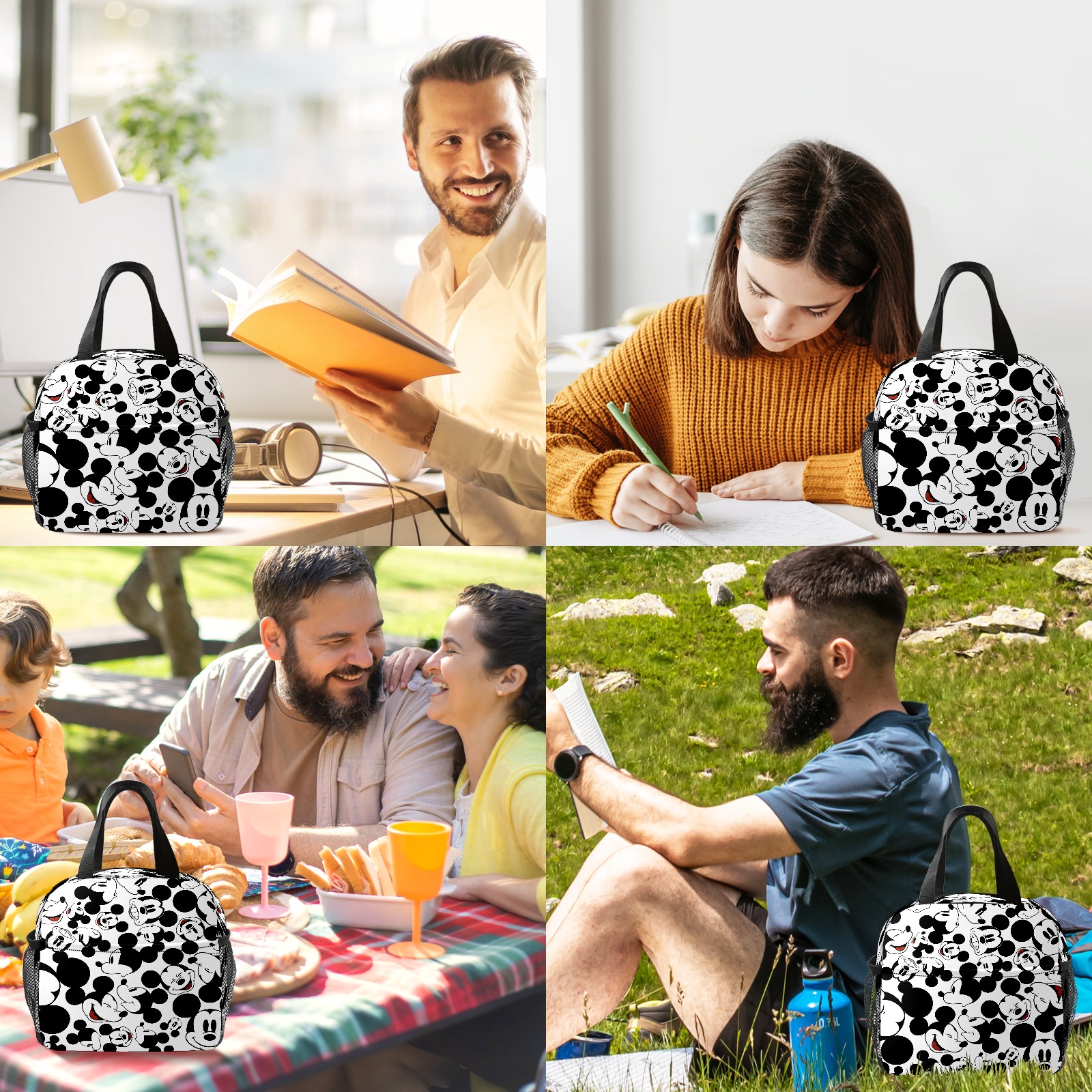 Lunch Bag,Lunch Box for Women Men,Happy Mickey Mouse Black White Reusable Insulated Lunch Tote,Small Leakproof Cute Lunch Cooler with High Capacity for Work,Picnic,Camping