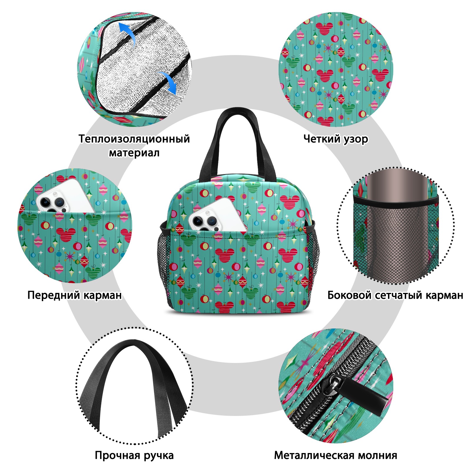 Lunch Bag,Lunch Box for Women Men,Merry Christmas Mickey Mouse Retro Reusable Insulated Lunch Tote,Small Leakproof Cute Lunch Cooler with High Capacity for Work,Picnic,Camping