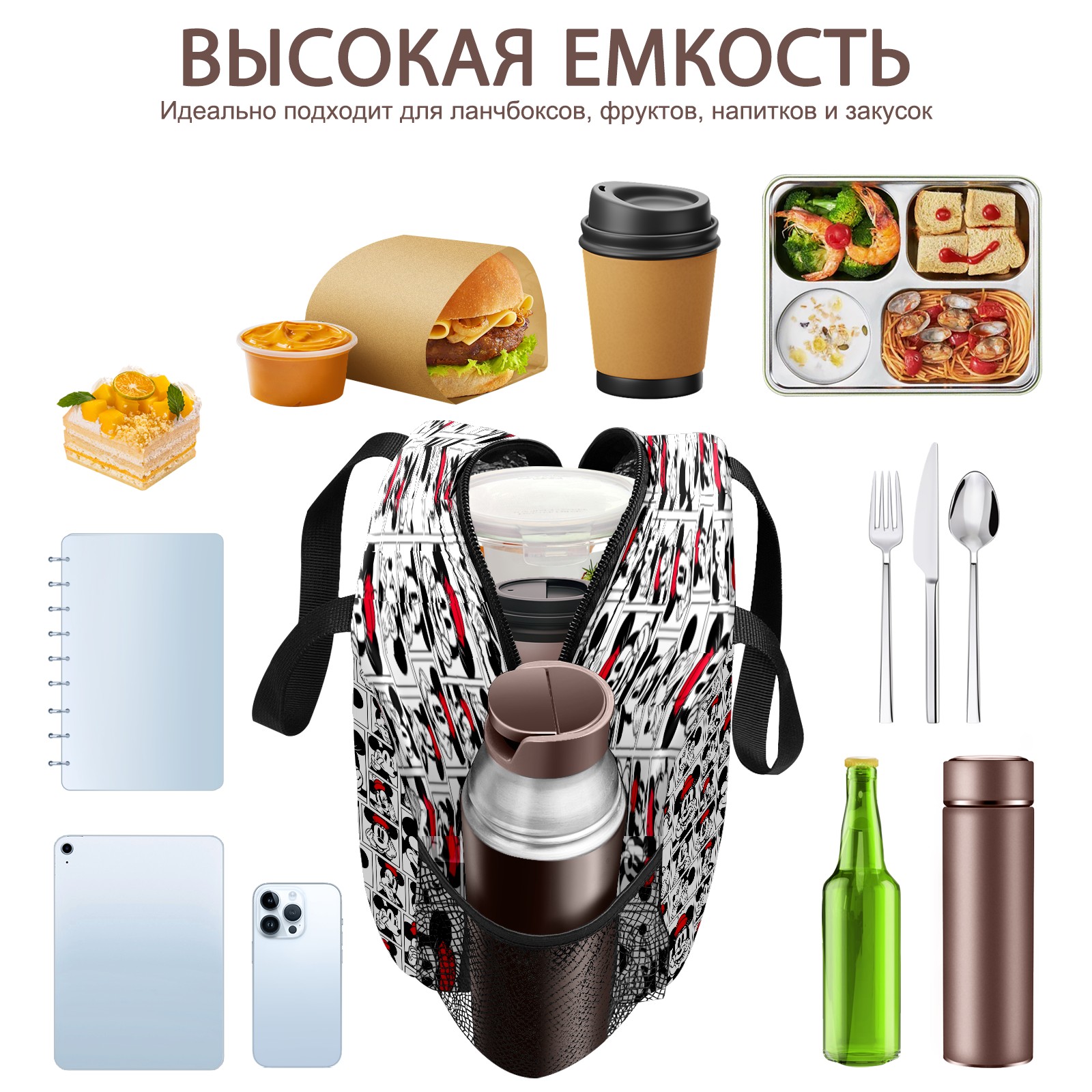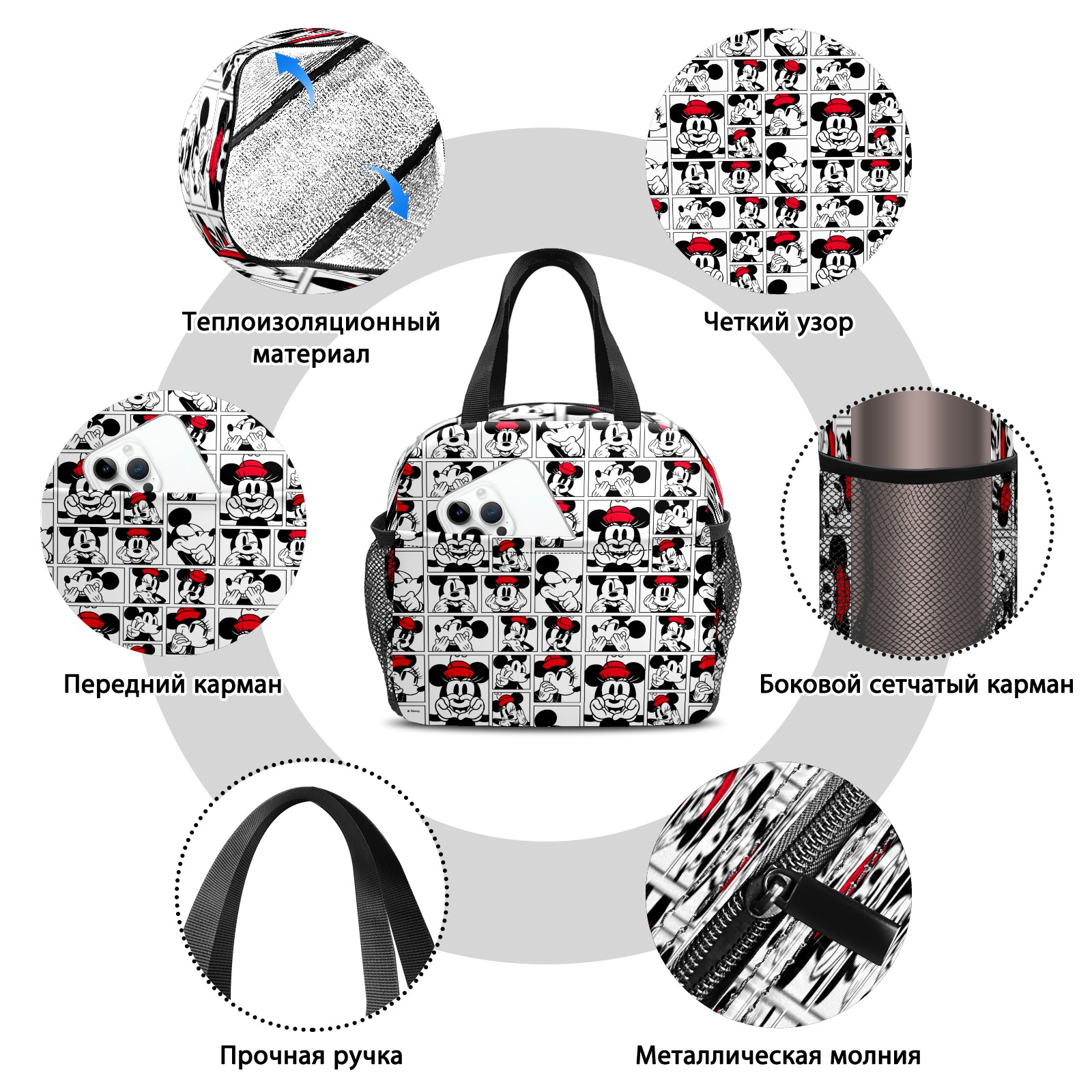 Lunch Bag,Lunch Box for Women Men,Funny Mickey Minnie Music Pattern Reusable Insulated Lunch Tote,Small Leakproof Cute Lunch Cooler with High Capacity for Work,Picnic,Camping