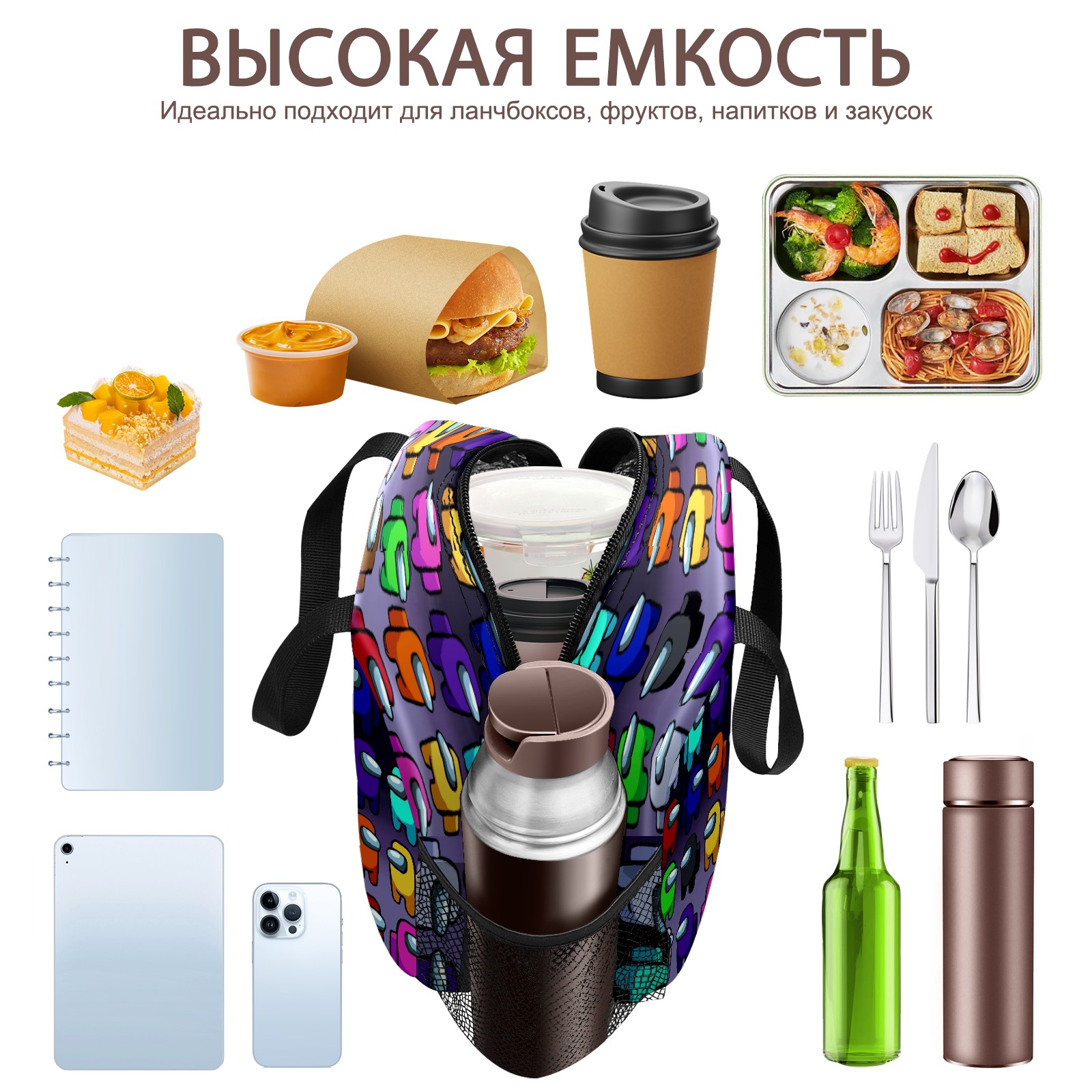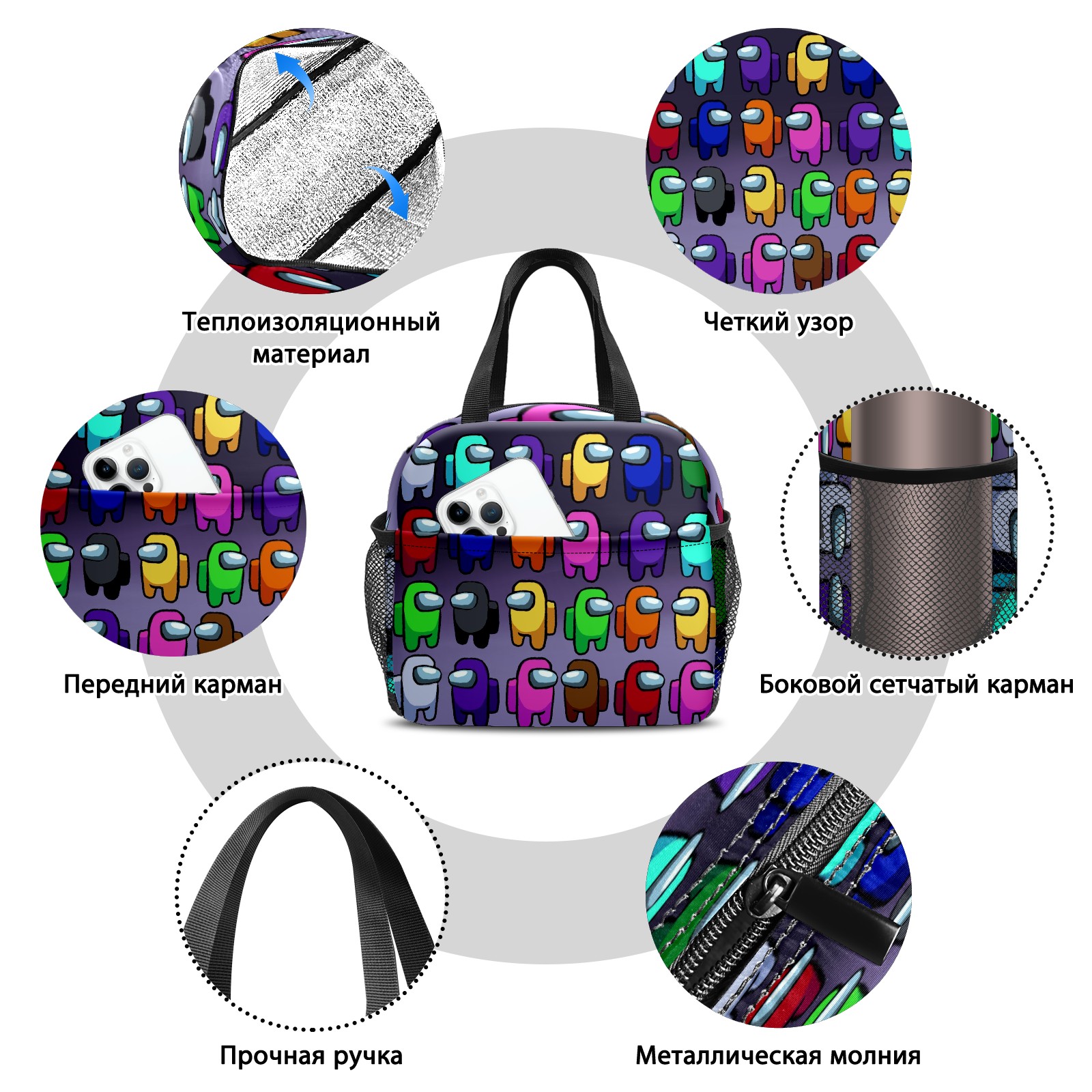Lunch Bag,Lunch Box for Women Men,Among Us Cartoon Cute Reusable Insulated Lunch Tote,Small Leakproof Cute Lunch Cooler with High Capacity for Work,Picnic,Camping