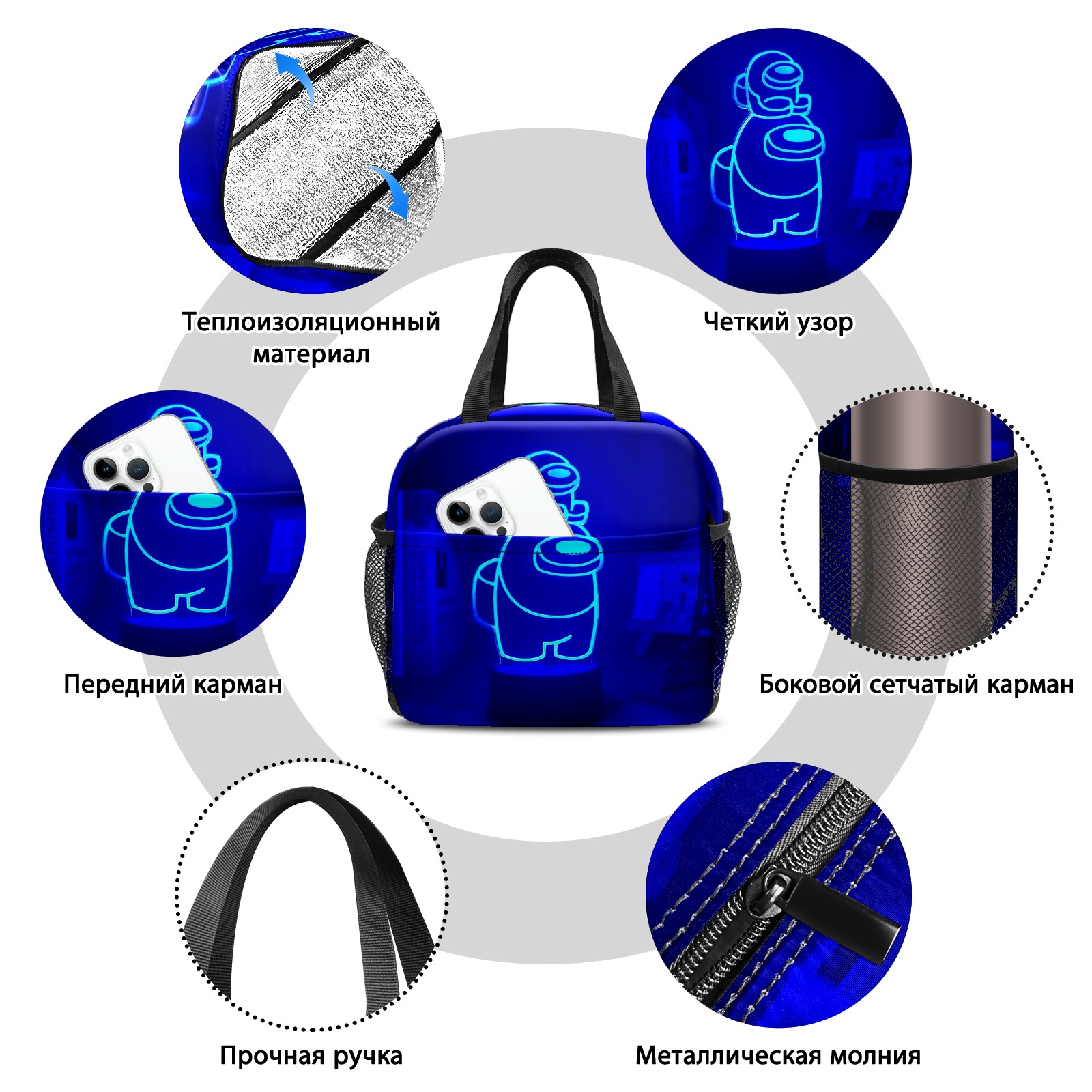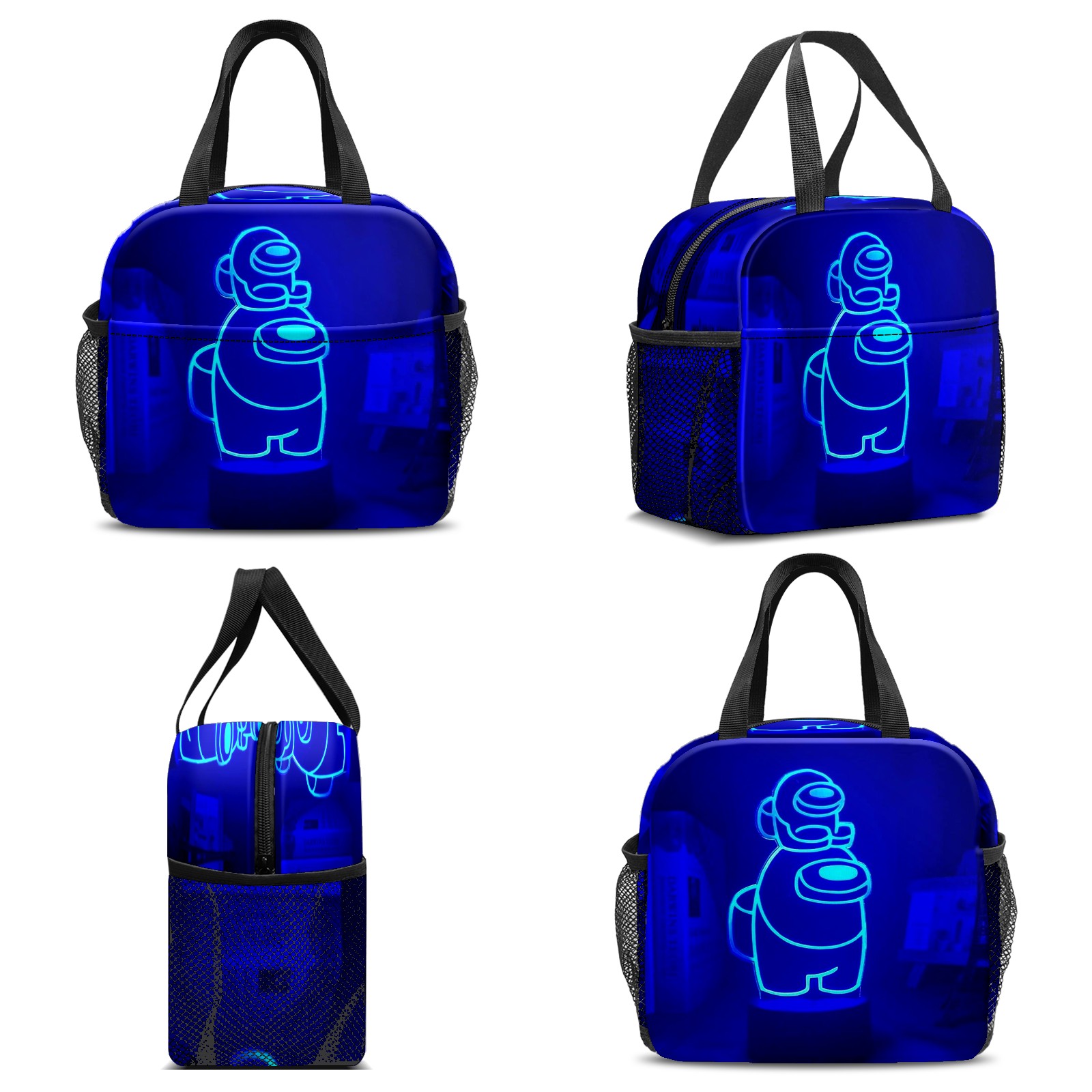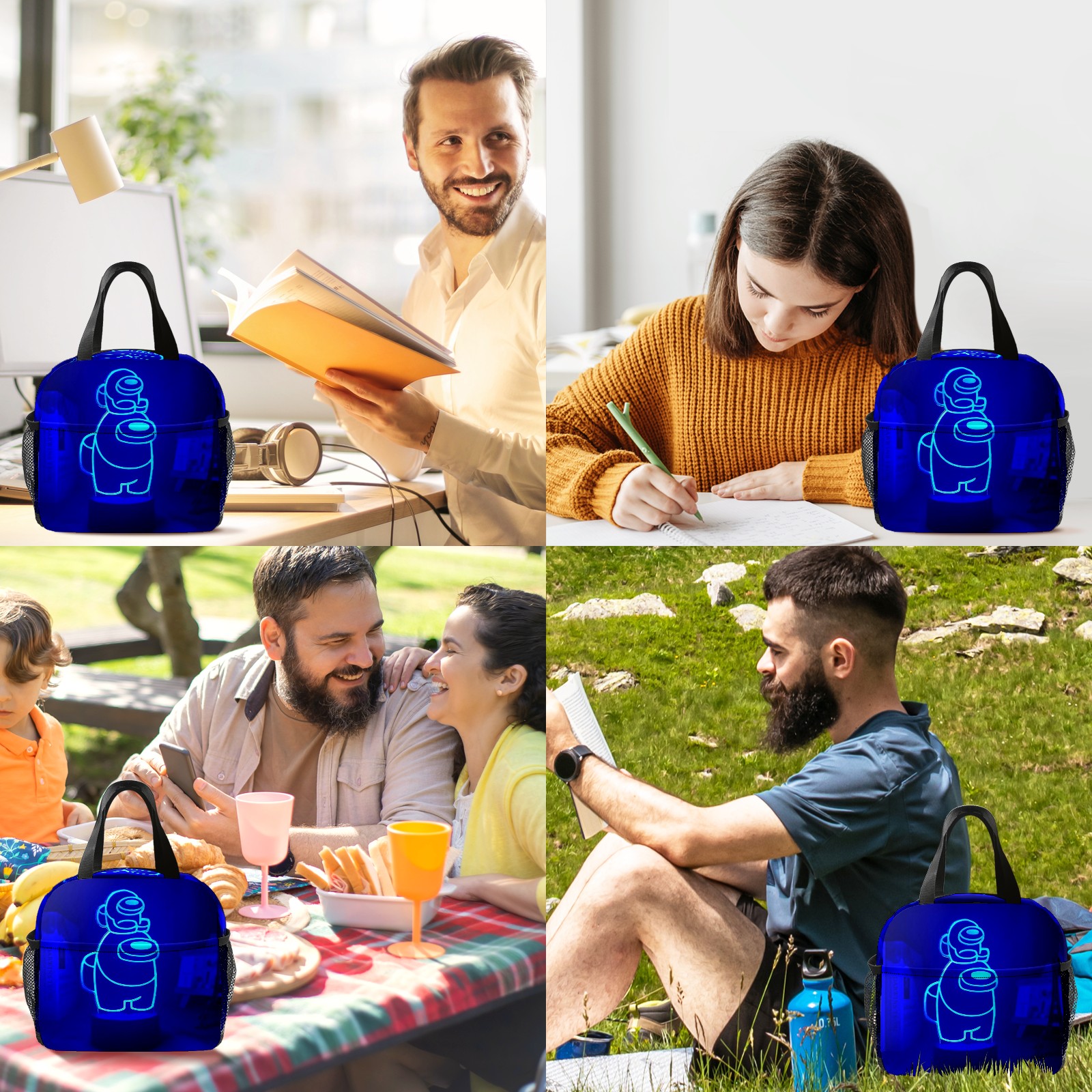 Lunch Bag,Lunch Box for Women Men,Neon Among Us Blue Reusable Insulated Lunch Tote,Small Leakproof Cute Lunch Cooler with High Capacity for Work,Picnic,Camping