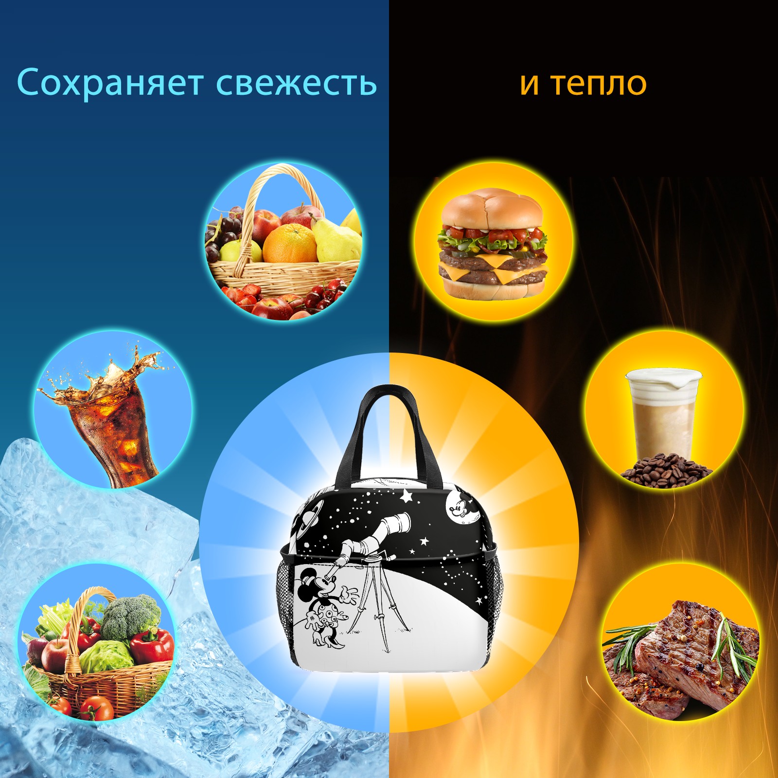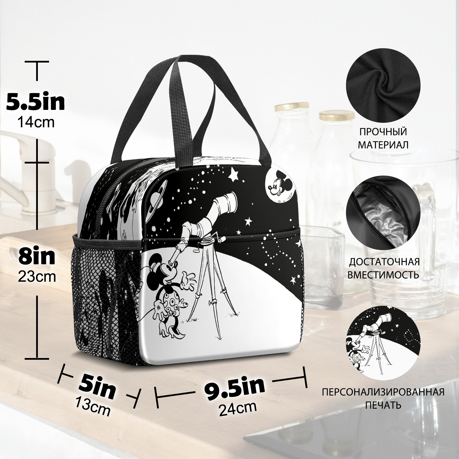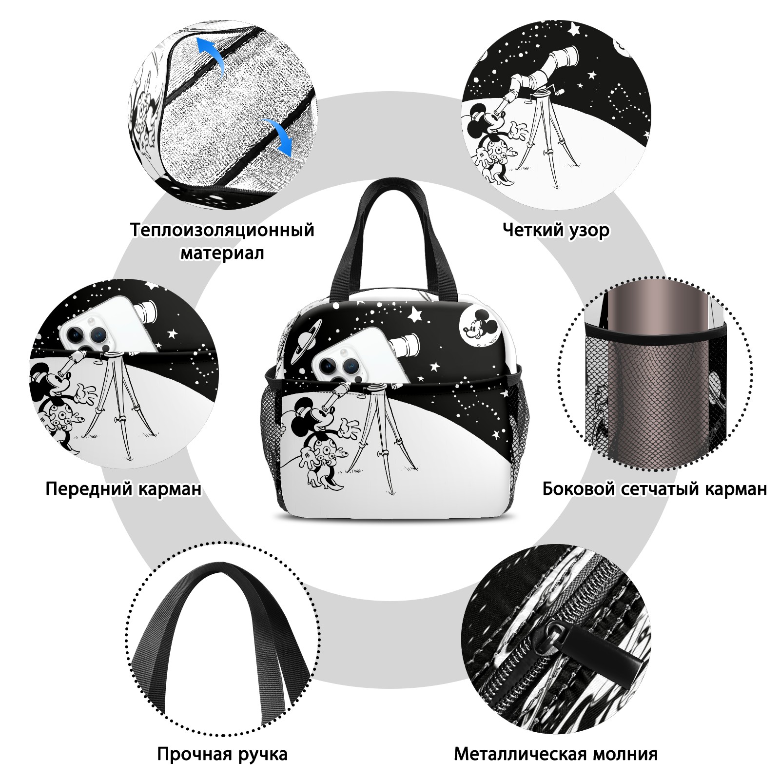 Lunch Bag,Lunch Box for Women Men,Vintage Minne Mickey Biggest Of All Stars Reusable Insulated Lunch Tote,Small Leakproof Cute Lunch Cooler with High Capacity for Work,Picnic,Camping