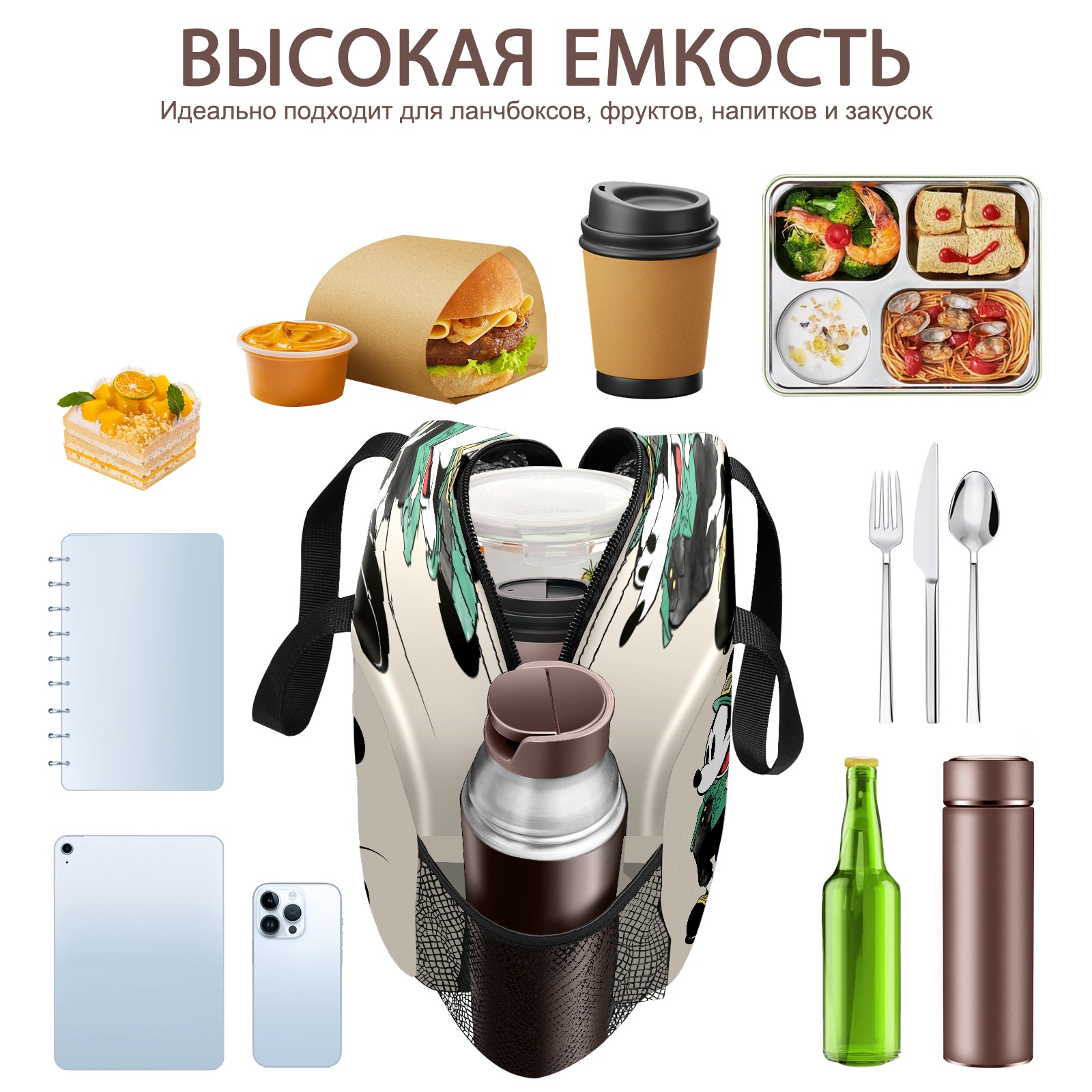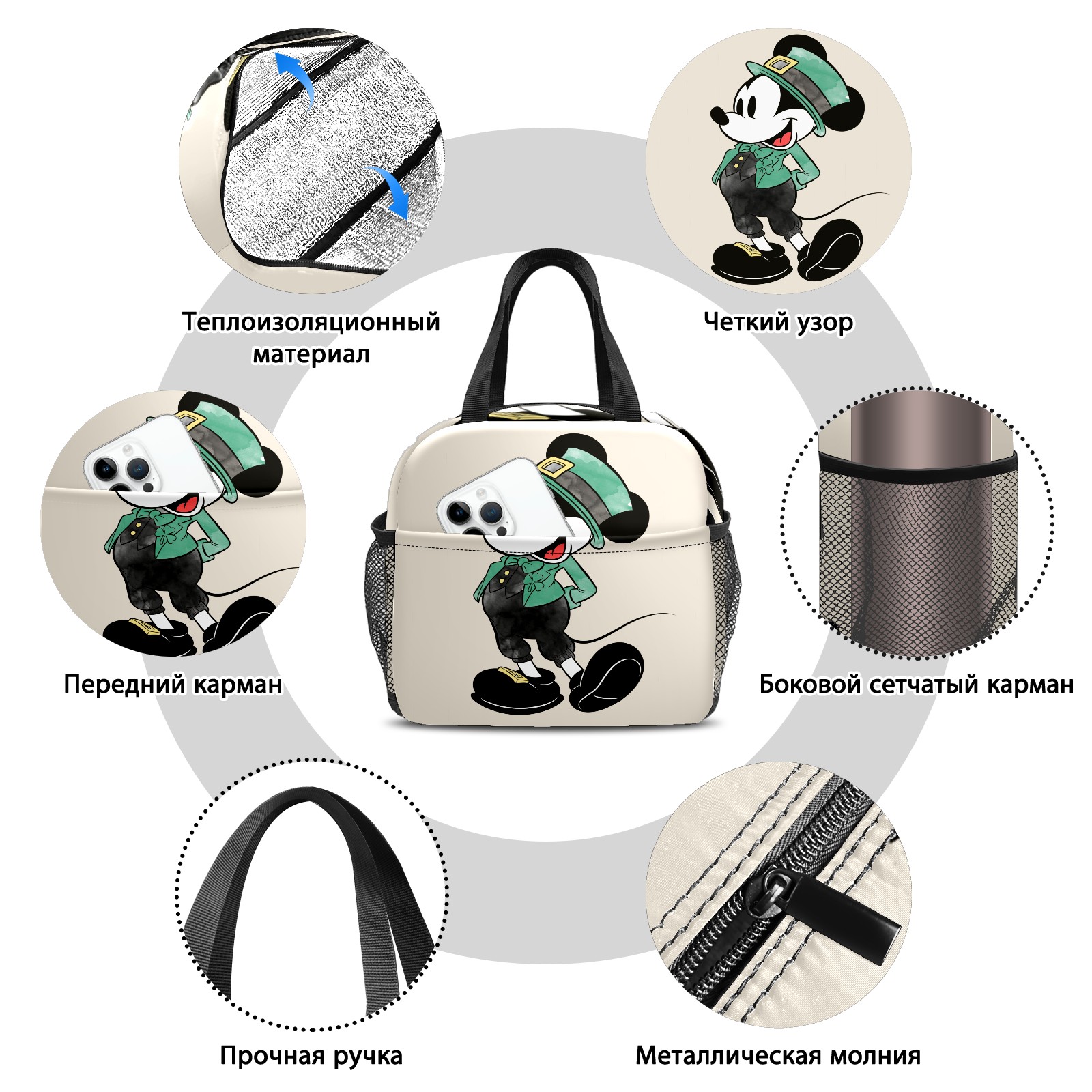 Lunch Bag,Lunch Box for Women Men,Mickey Mouse Watercolor St. Patrick's Day Reusable Insulated Lunch Tote,Small Leakproof Cute Lunch Cooler with High Capacity for Work,Picnic,Camping