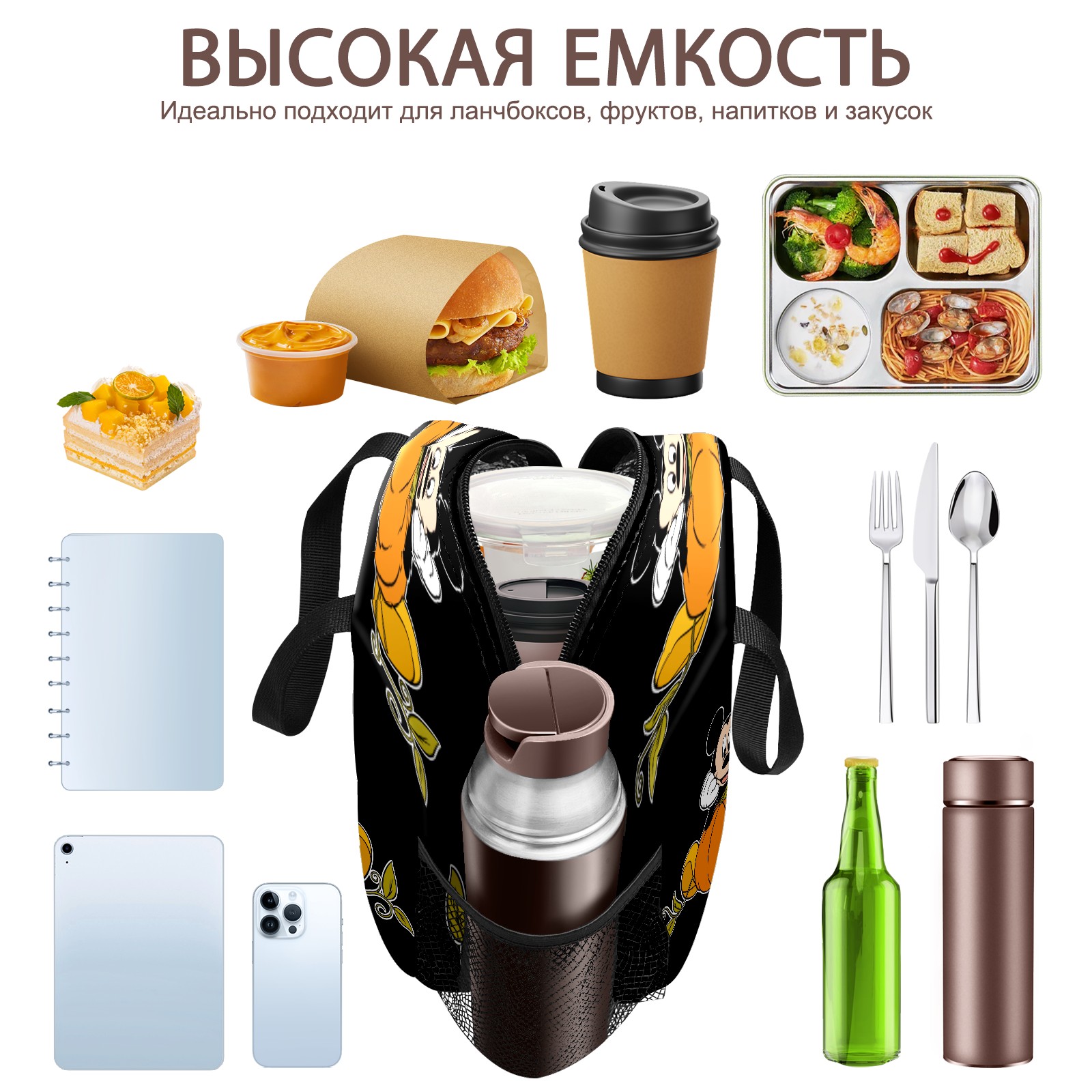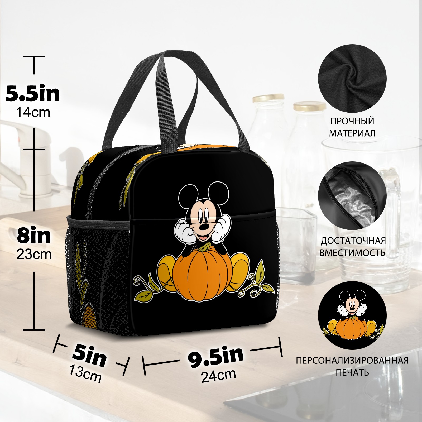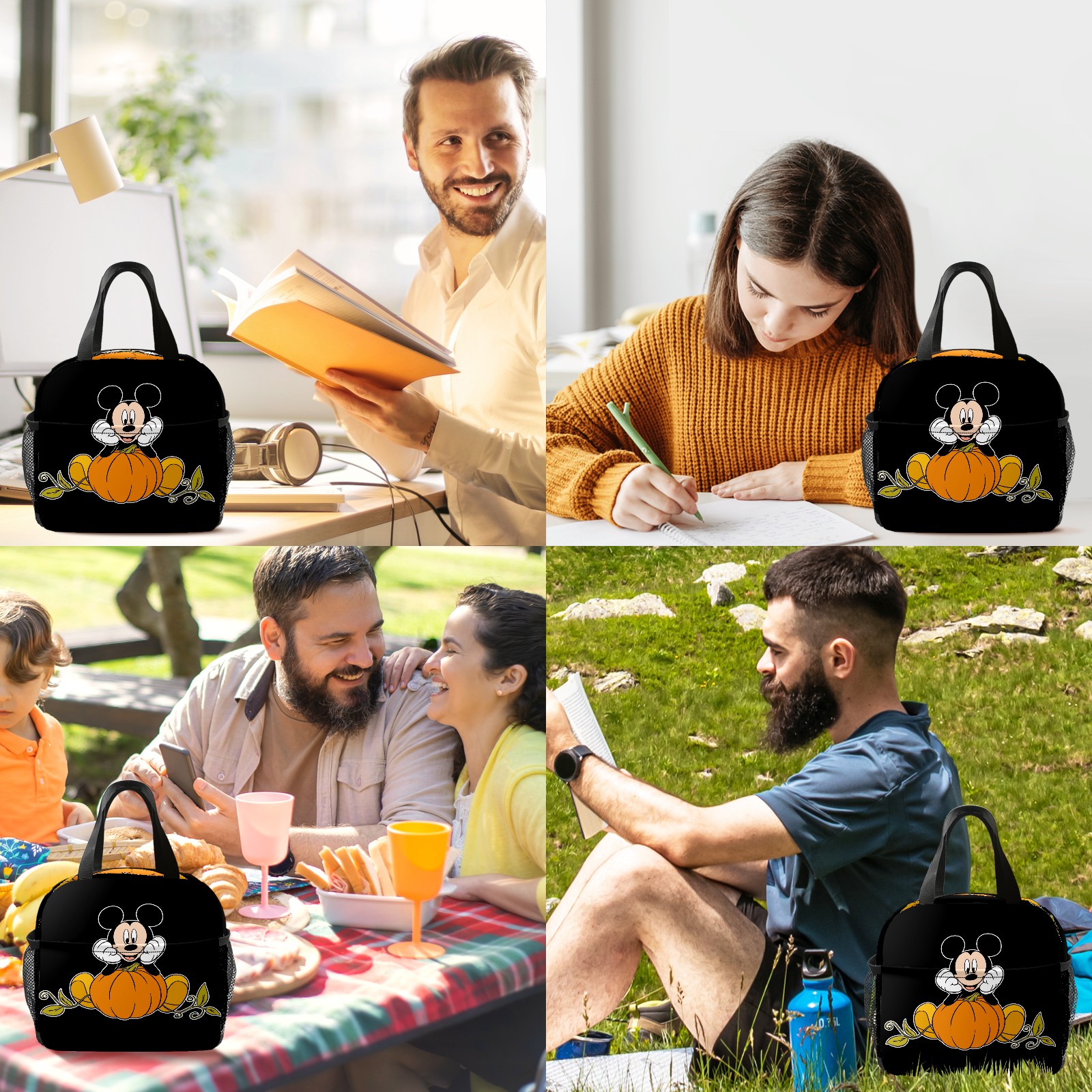 Lunch Bag,Lunch Box for Women Men,Mickey Mouse Sitting On Pumpkin Reusable Insulated Lunch Tote,Small Leakproof Cute Lunch Cooler with High Capacity for Work,Picnic,Camping