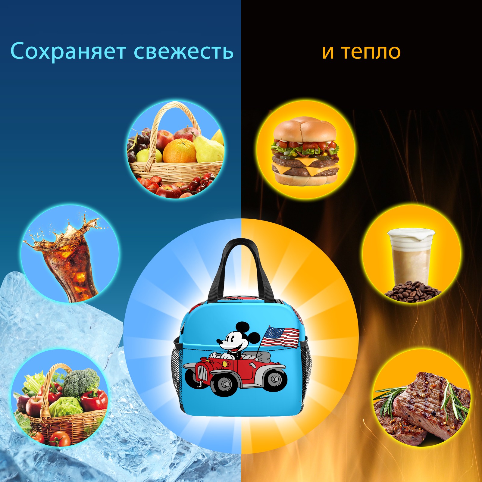 Lunch Bag,Lunch Box for Women Men,Holiday Mickey Mouse Reusable Insulated Lunch Tote,Small Leakproof Cute Lunch Cooler with High Capacity for Work,Picnic,Camping
