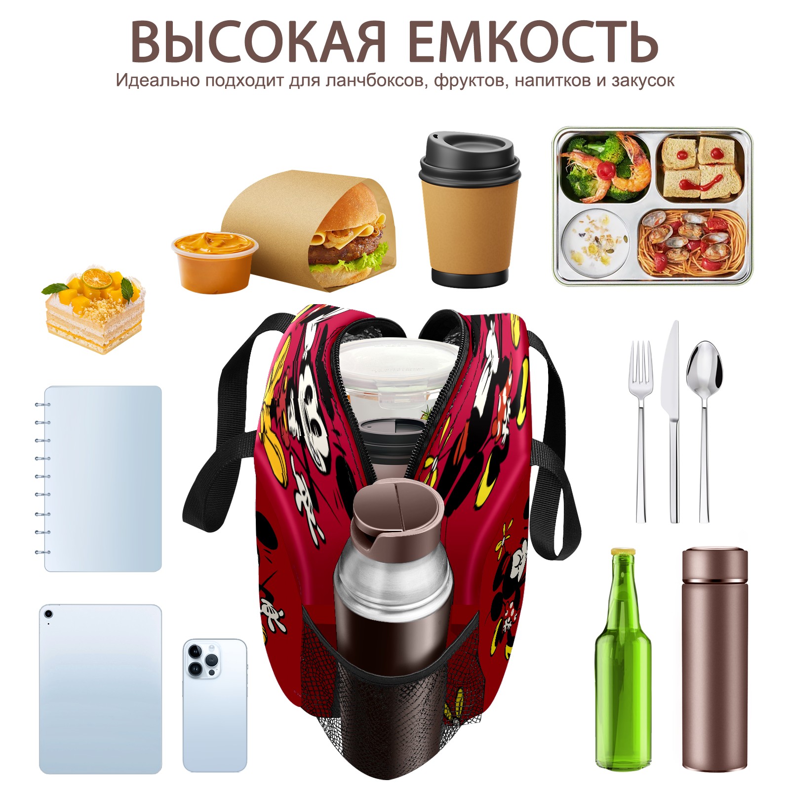 Lunch Bag,Lunch Box for Women Men,Minnie Kissing Mickey Mouse Reusable Insulated Lunch Tote,Small Leakproof Cute Lunch Cooler with High Capacity for Work,Picnic,Camping
