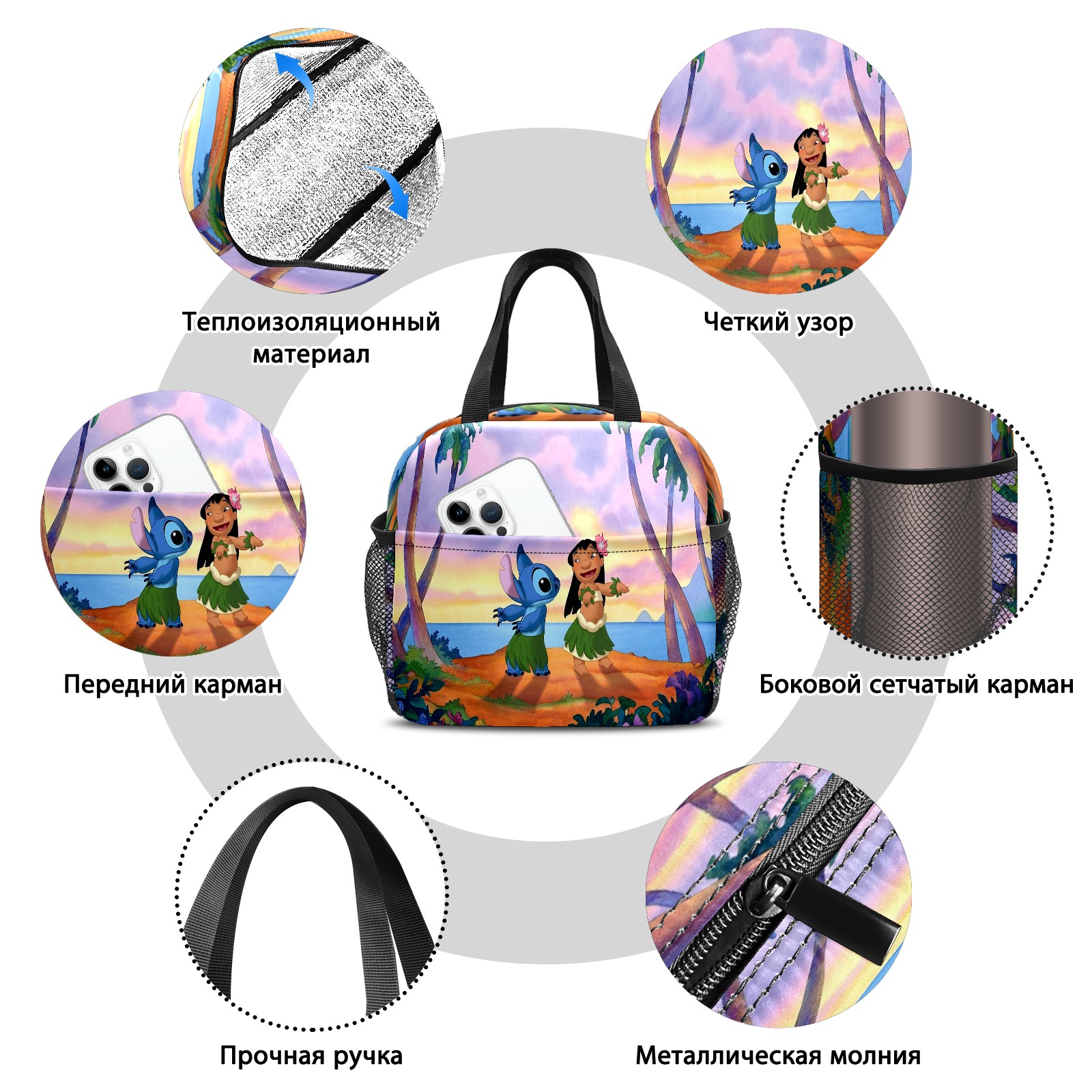 Lunch Bag,Lunch Box for Women Men,Lilo-and-stitch-disney Reusable Insulated Lunch Tote,Small Leakproof Cute Lunch Cooler with High Capacity for Work,Picnic,Camping
