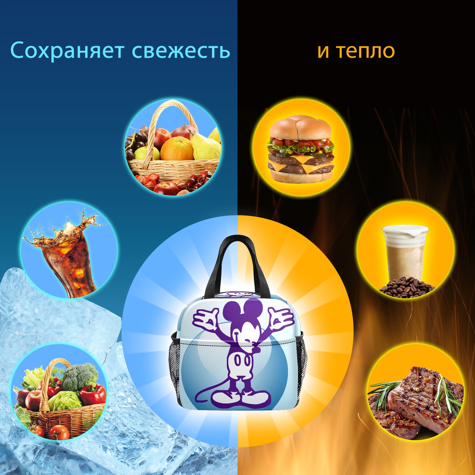 Lunch Bag,Lunch Box for Women Men,Vintage Mickey Reusable Insulated Lunch Tote,Small Leakproof Cute Lunch Cooler with High Capacity for Work,Picnic,Camping