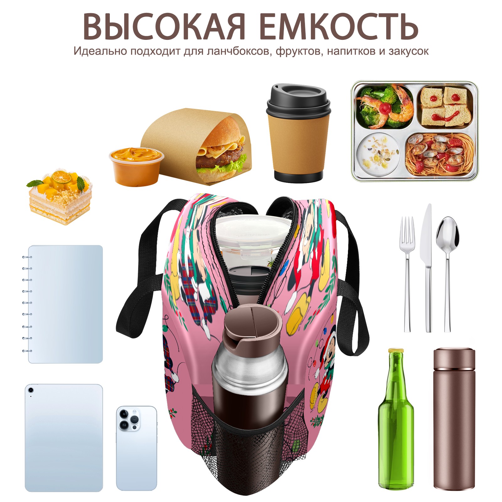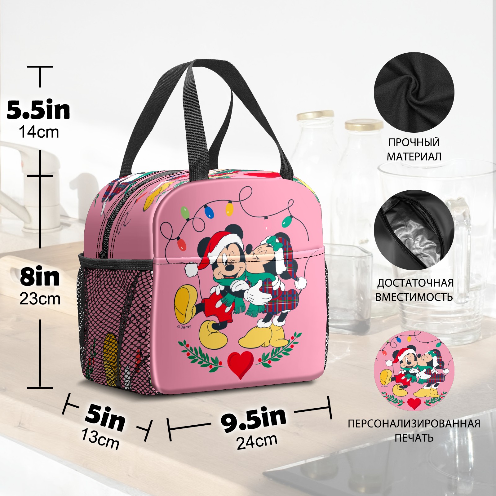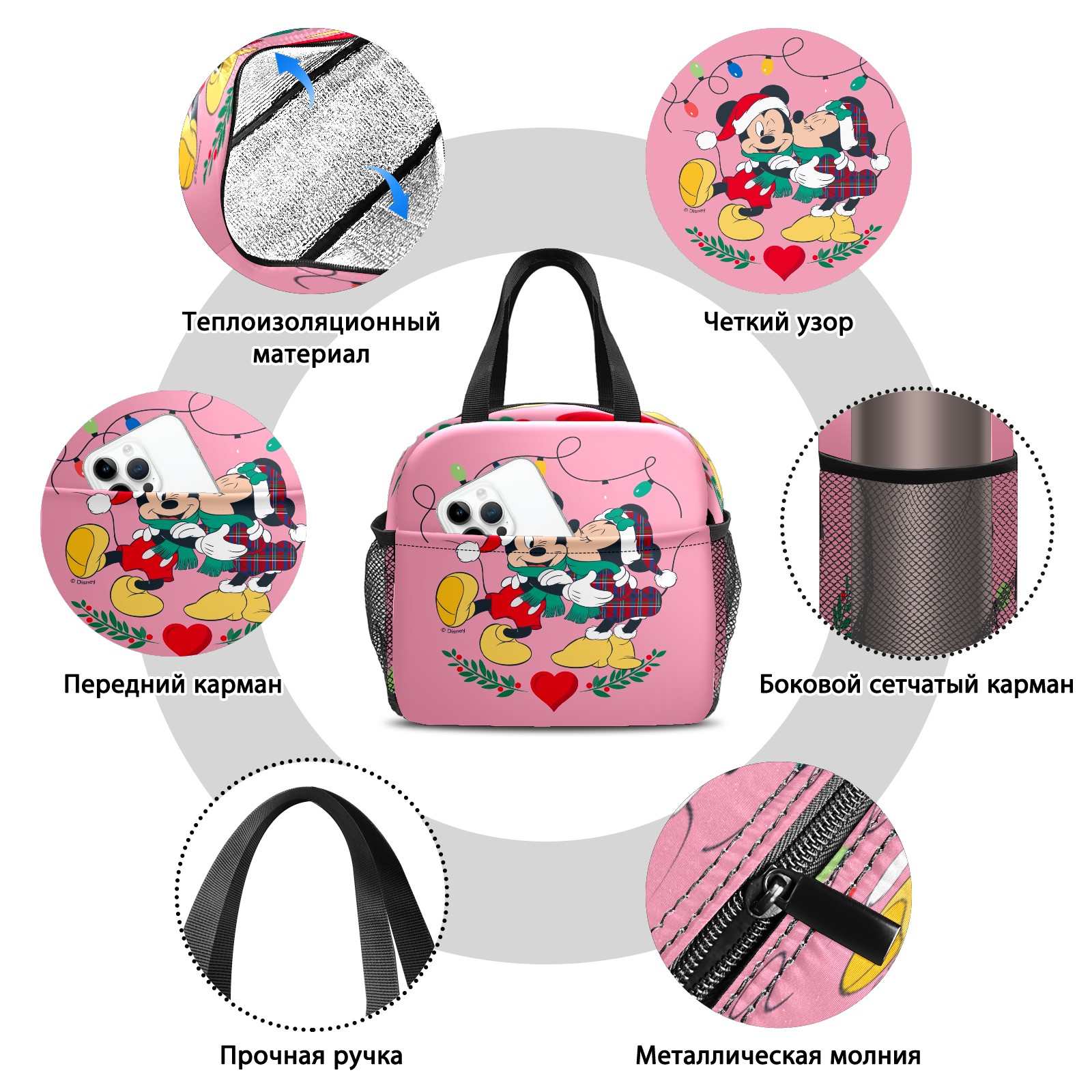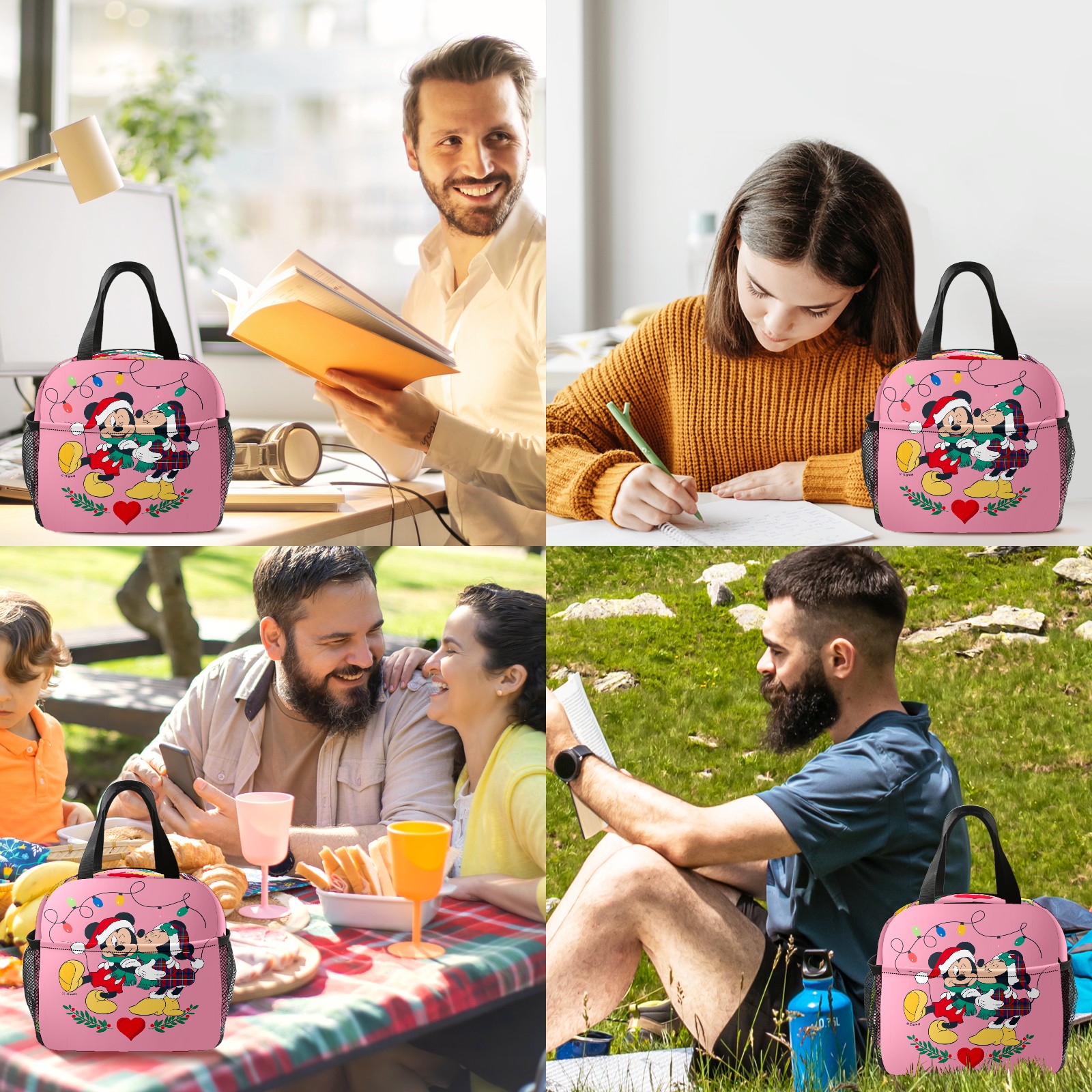 Lunch Bag,Lunch Box for Women Men,Mickey Minnie Holiday Kisses Pink Reusable Insulated Lunch Tote,Small Leakproof Cute Lunch Cooler with High Capacity for Work,Picnic,Camping