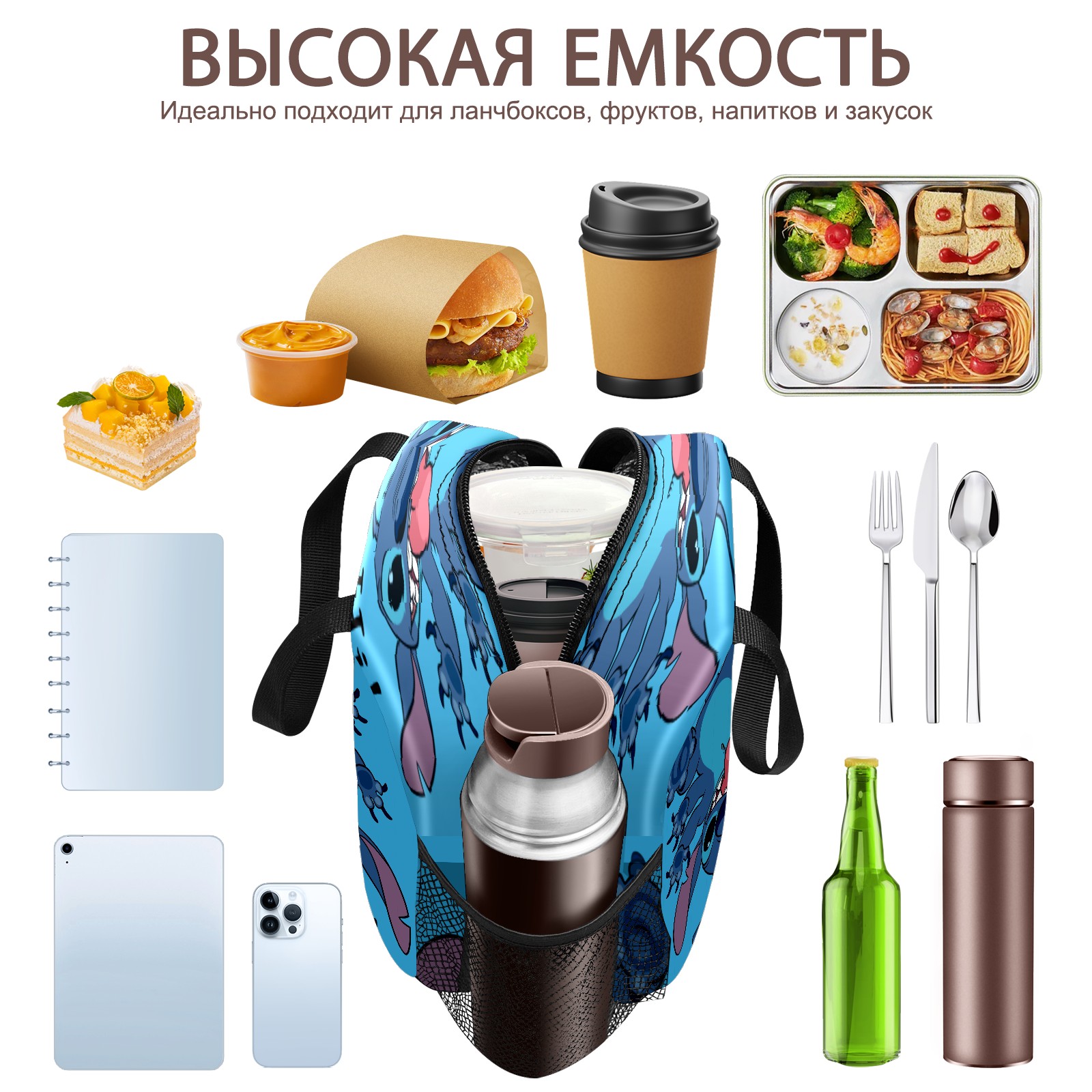 Lunch Bag,Lunch Box for Women Men,Stitch Hi Lilo Stich Reusable Insulated Lunch Tote,Small Leakproof Cute Lunch Cooler with High Capacity for Work,Picnic,Camping