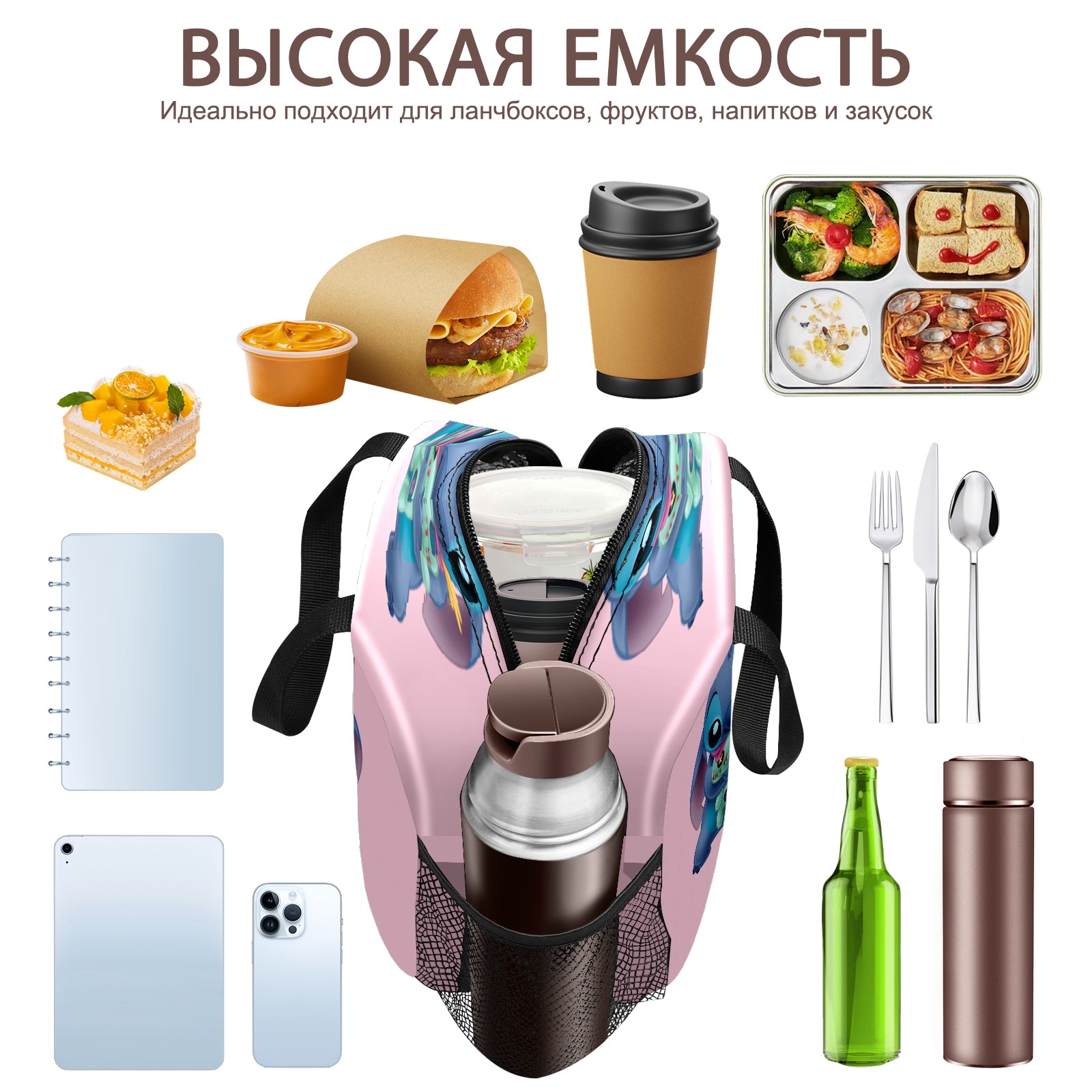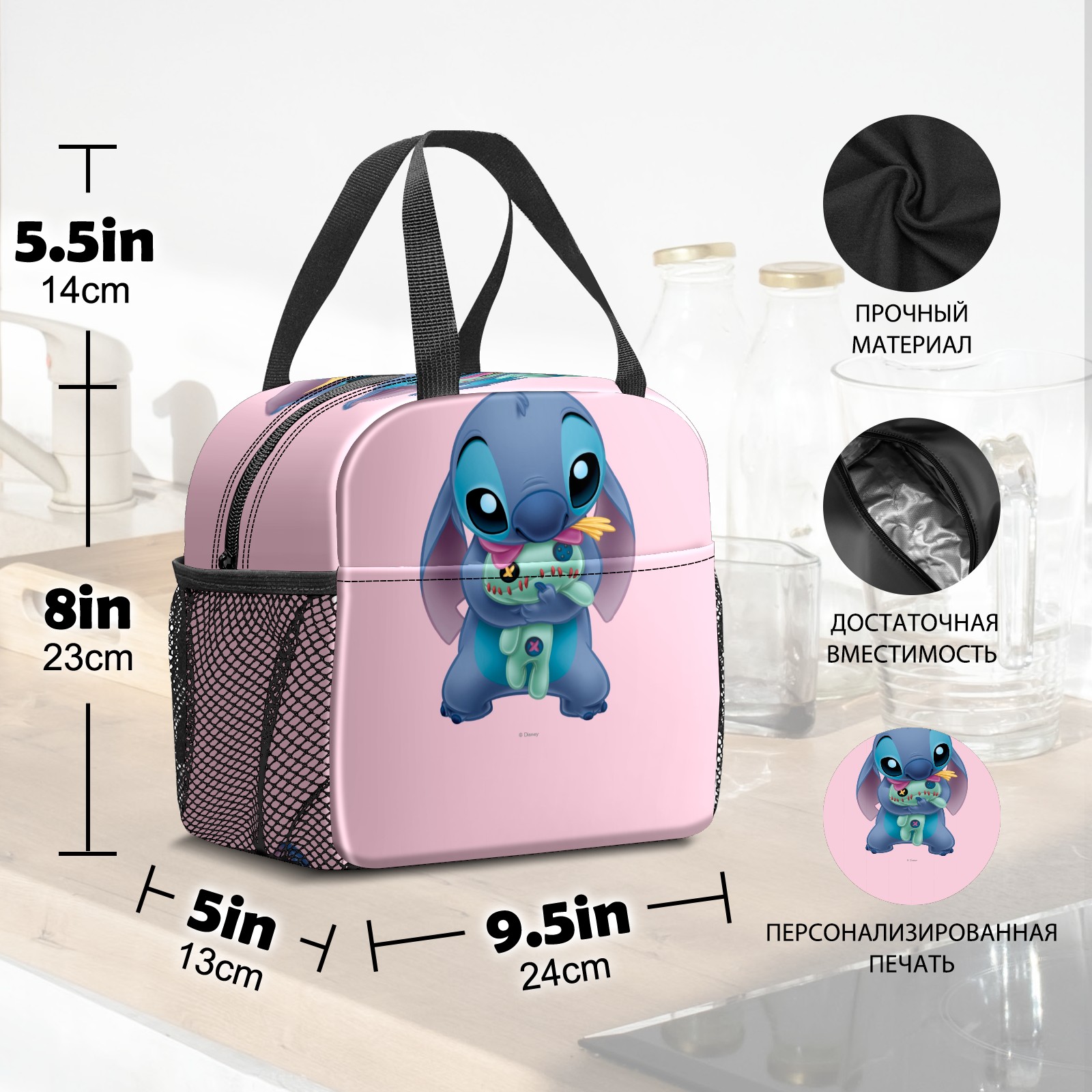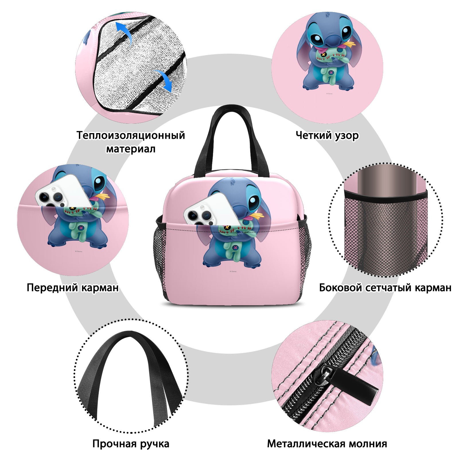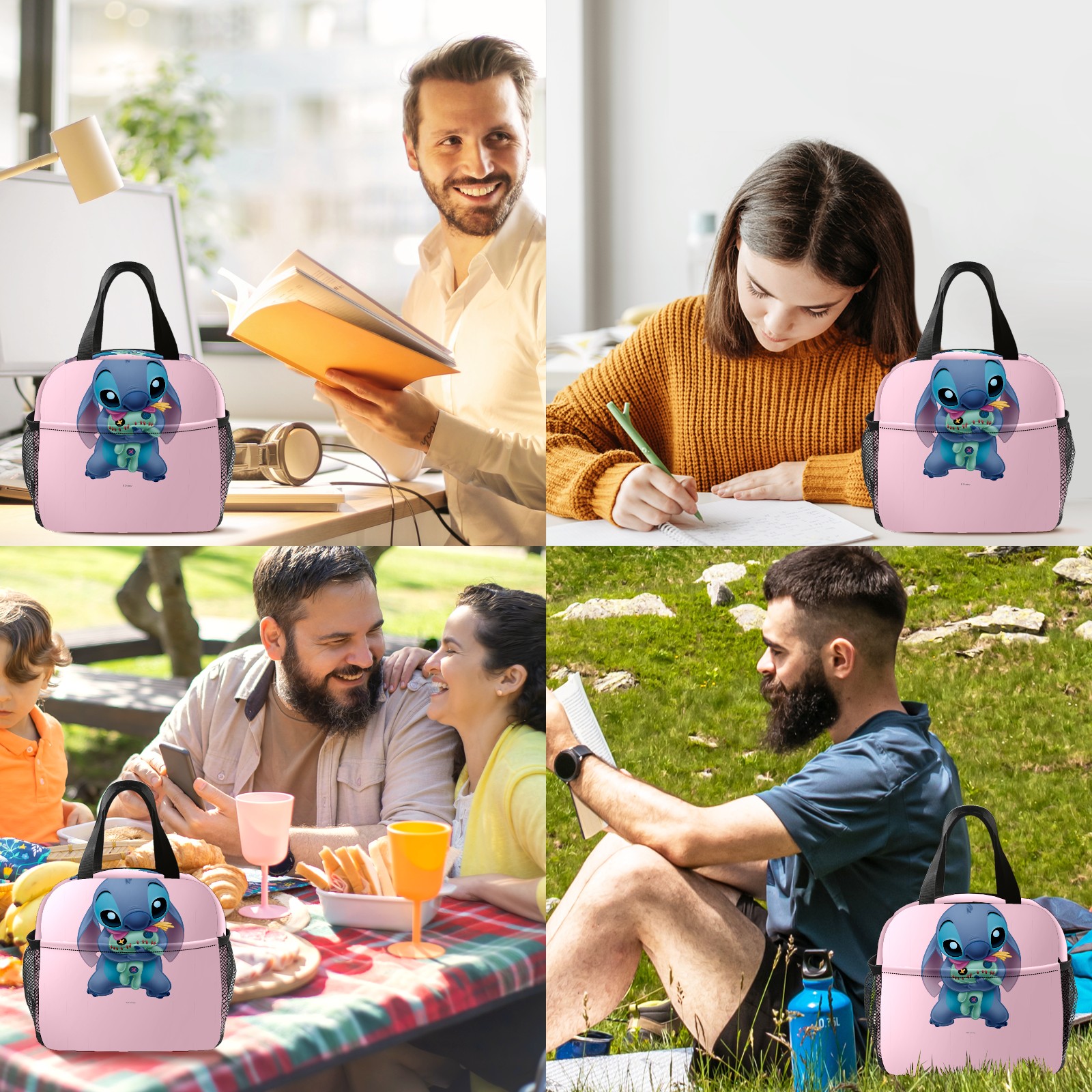 Lunch Bag,Lunch Box for Women Men,Lilo Stich Stitch With Ugly Doll Pink Reusable Insulated Lunch Tote,Small Leakproof Cute Lunch Cooler with High Capacity for Work,Picnic,Camping