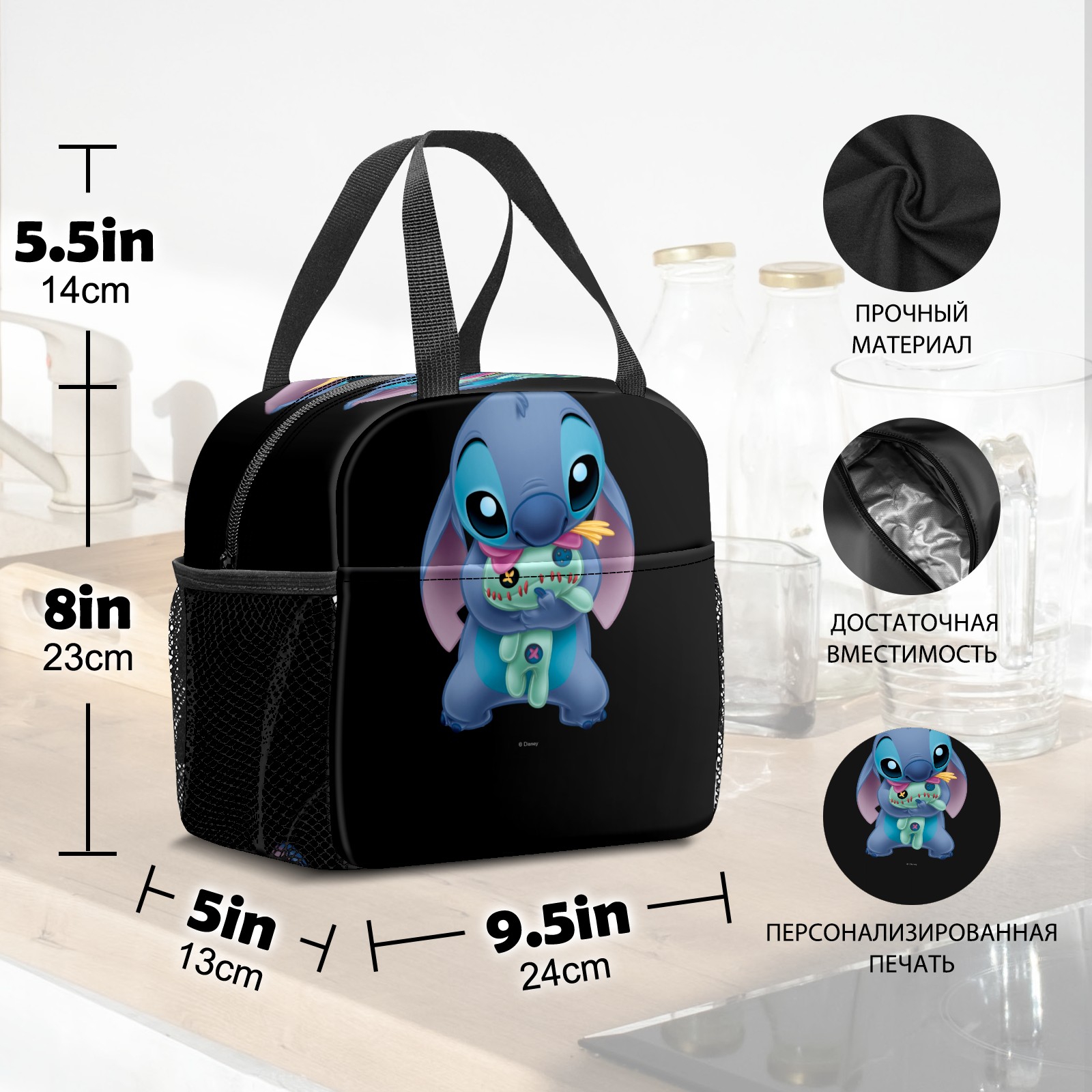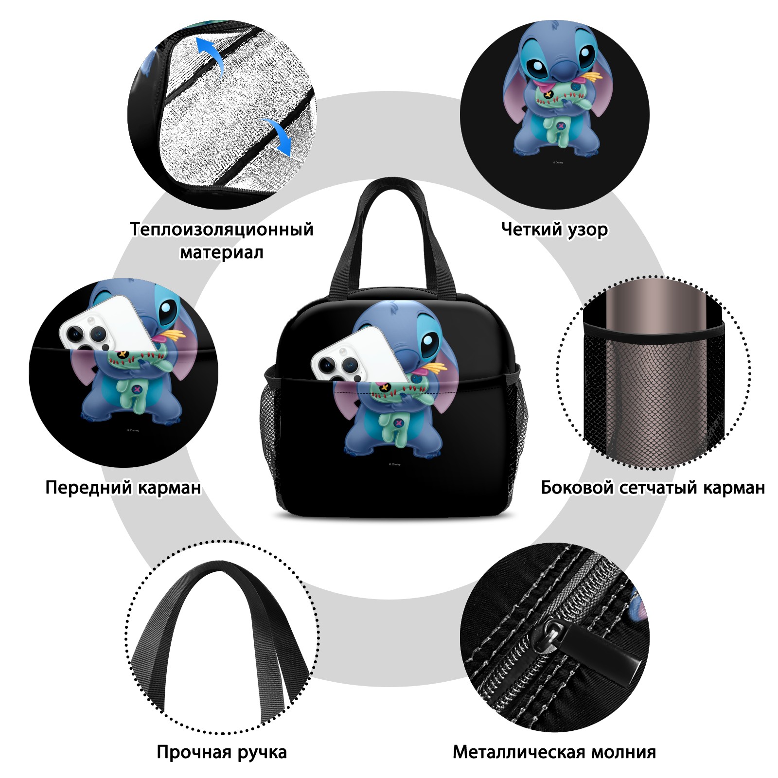 Lunch Bag,Lunch Box for Women Men,Lilo Stich Stitch With Ugly Doll Black Reusable Insulated Lunch Tote,Small Leakproof Cute Lunch Cooler with High Capacity for Work,Picnic,Camping