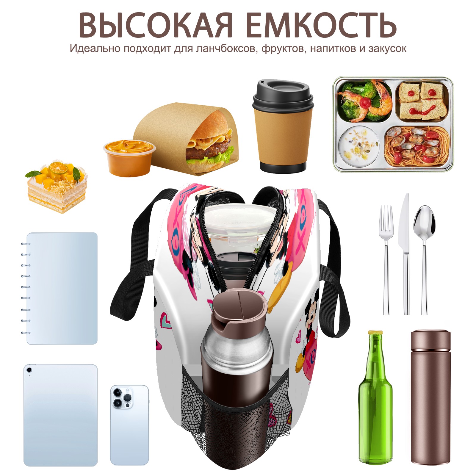 Lunch Bag,Lunch Box for Women Men,Mickey Minnie Valentine's Day Reusable Insulated Lunch Tote,Small Leakproof Cute Lunch Cooler with High Capacity for Work,Picnic,Camping