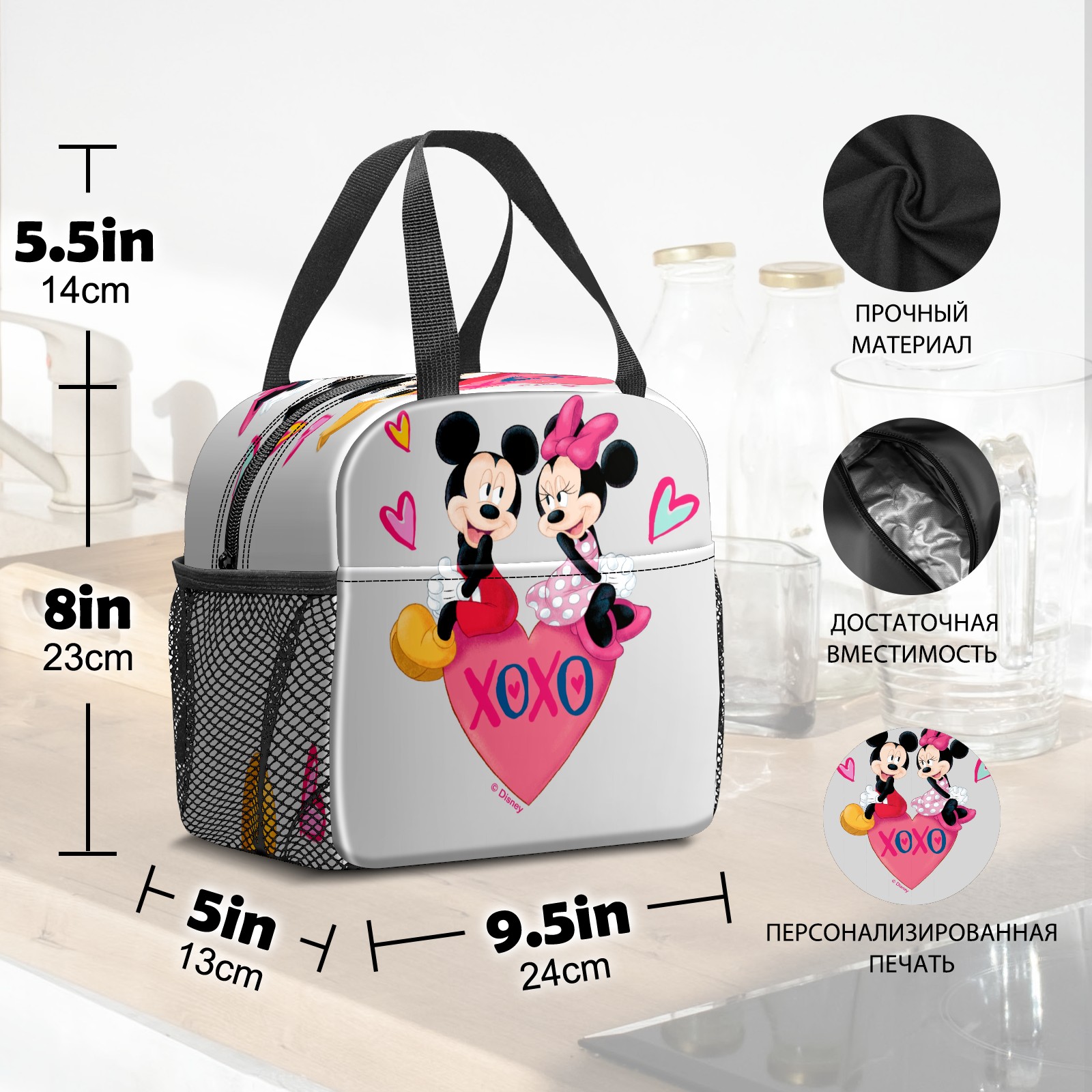 Lunch Bag,Lunch Box for Women Men,Mickey Minnie Valentine's Day Grey Reusable Insulated Lunch Tote,Small Leakproof Cute Lunch Cooler with High Capacity for Work,Picnic,Camping