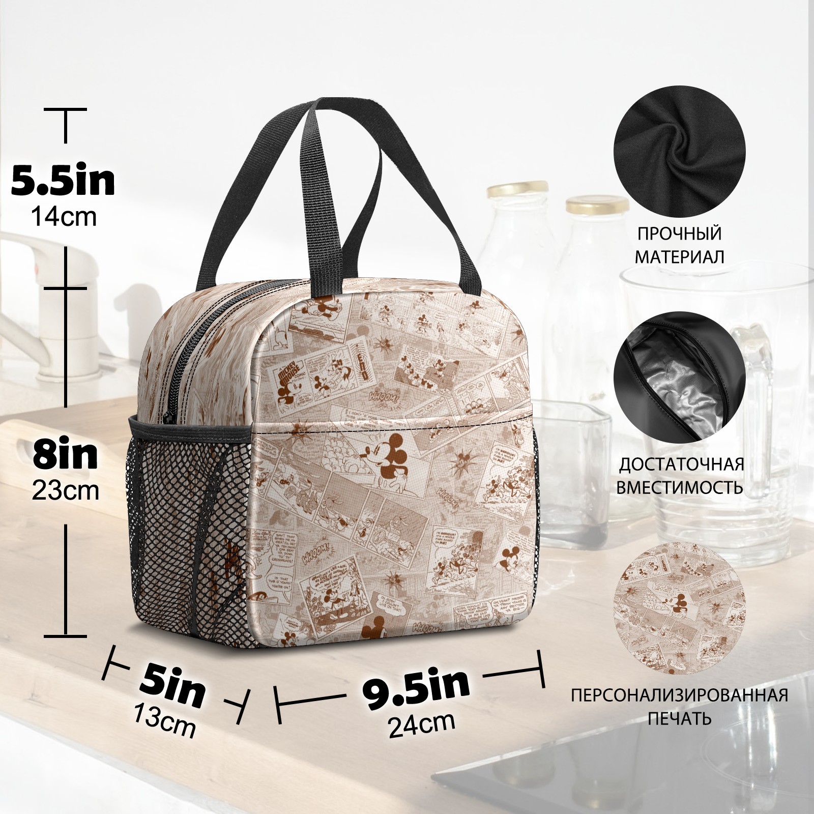 Lunch Bag,Lunch Box for Women Men,Mickey Mouse Antique Mickey Reusable Insulated Lunch Tote,Small Leakproof Cute Lunch Cooler with High Capacity for Work,Picnic,Camping