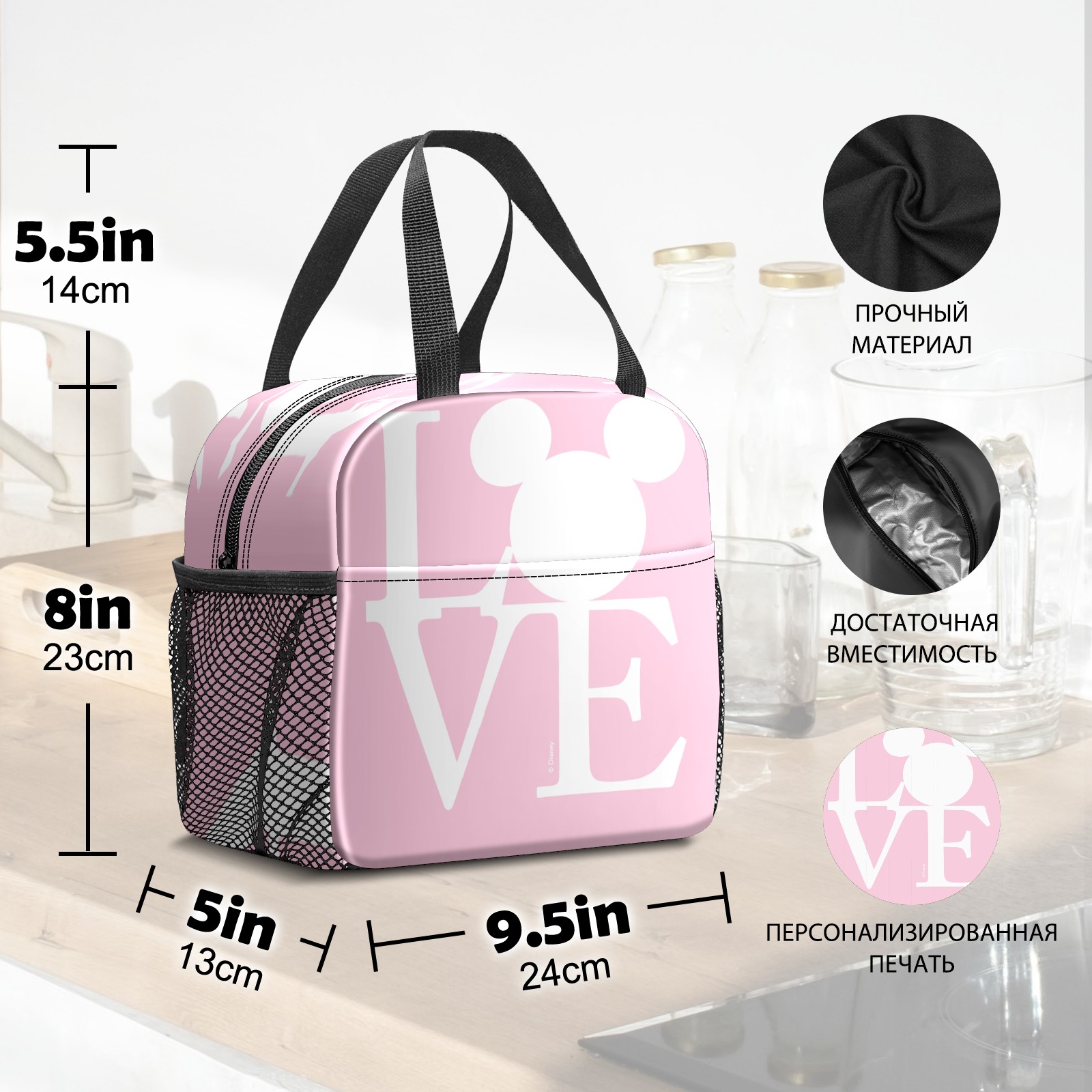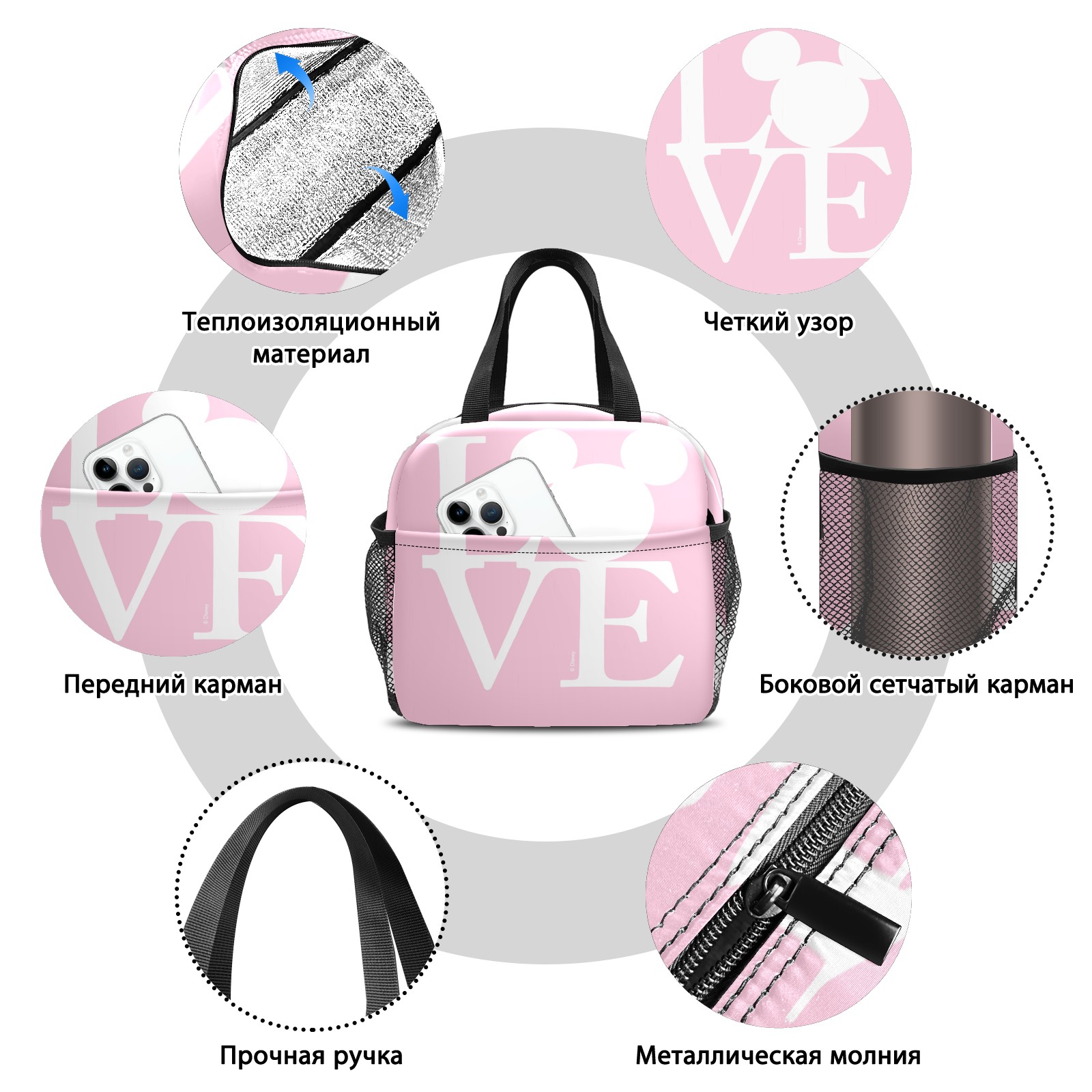 Lunch Bag,Lunch Box for Women Men,Mickey Mouse LOVE Valentine's Day Light Pink Reusable Insulated Lunch Tote,Small Leakproof Cute Lunch Cooler with High Capacity for Work,Picnic,Camping
