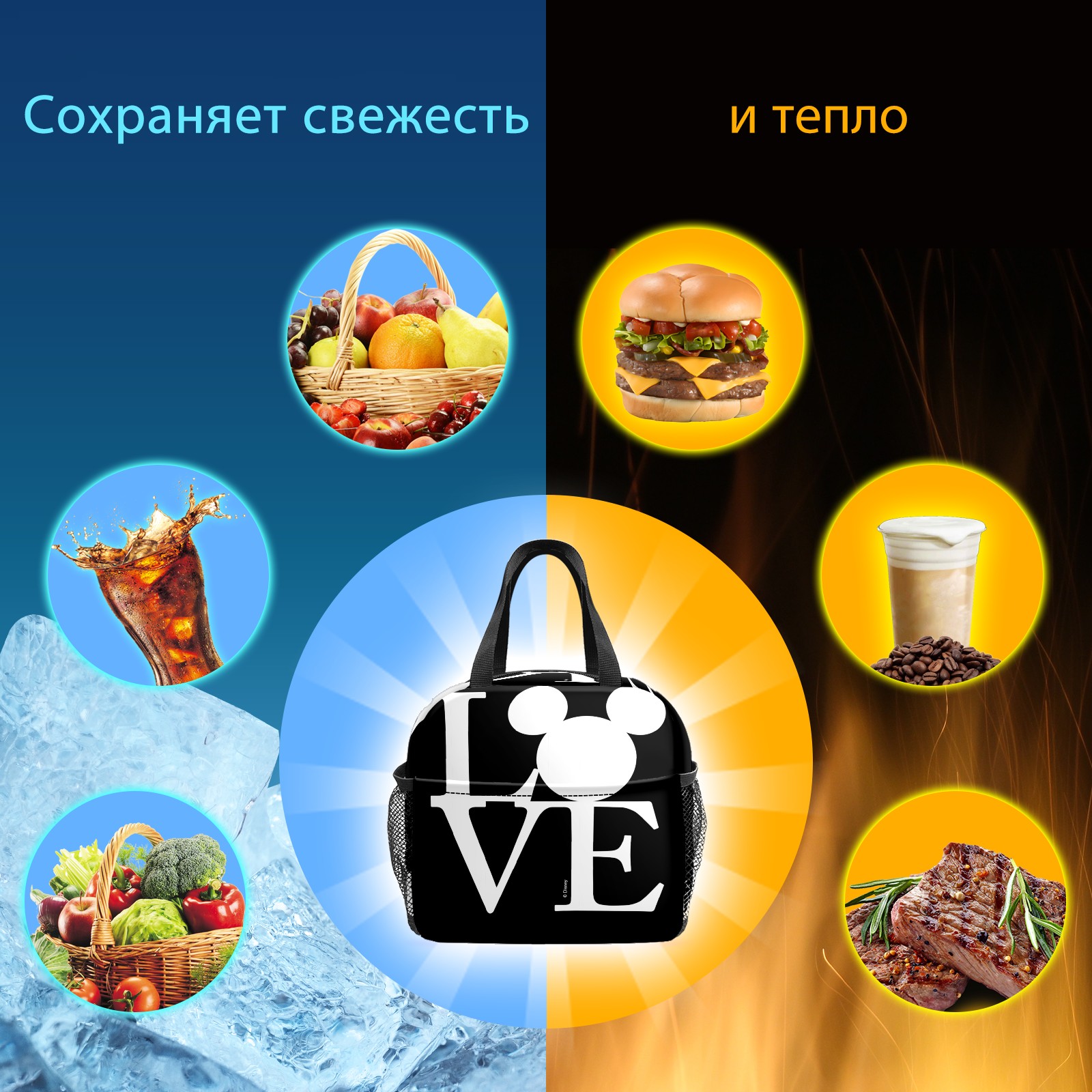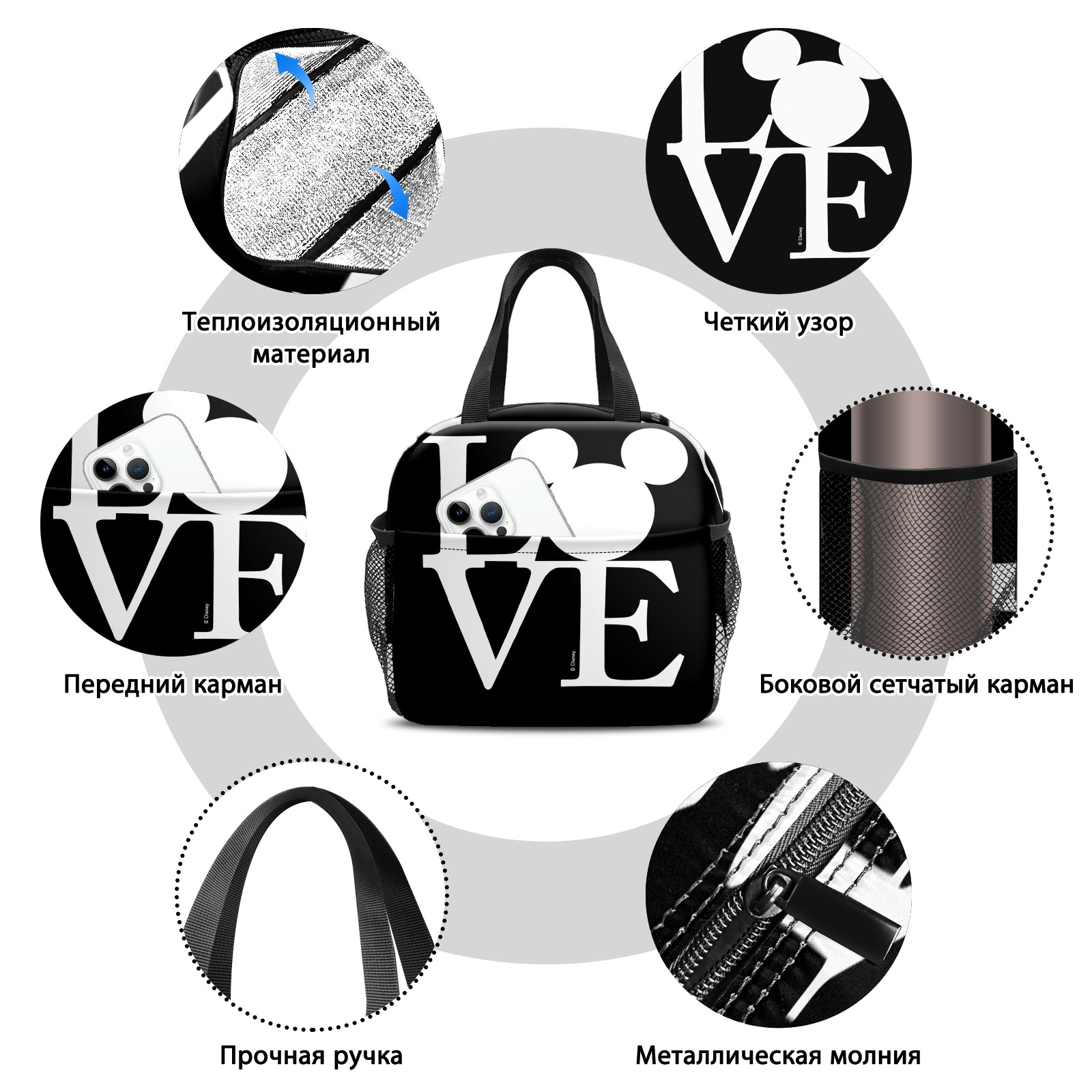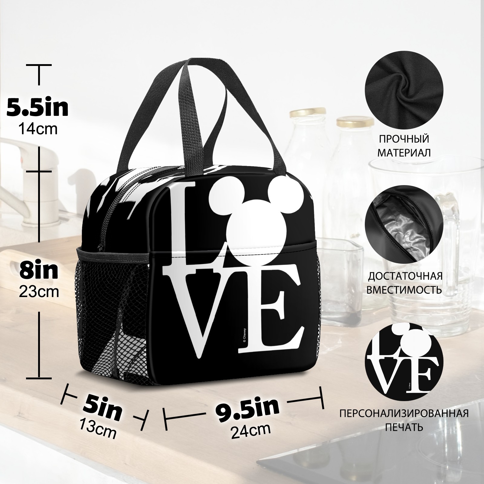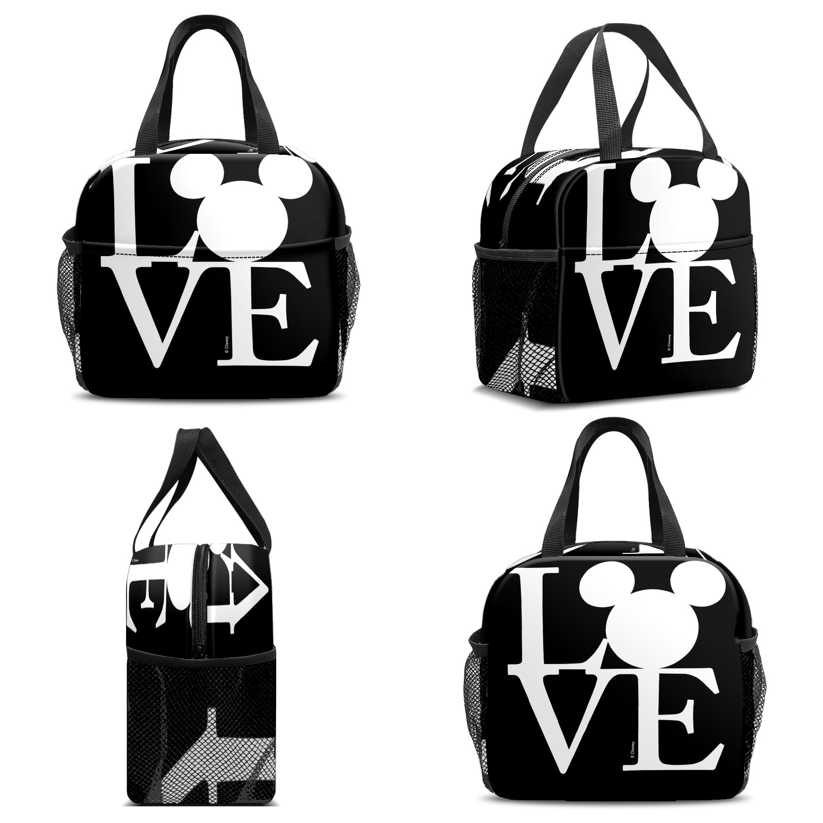 Lunch Bag,Lunch Box for Women Men,Mickey Mouse LOVE Valentine's Day Black Reusable Insulated Lunch Tote,Small Leakproof Cute Lunch Cooler with High Capacity for Work,Picnic,Camping
