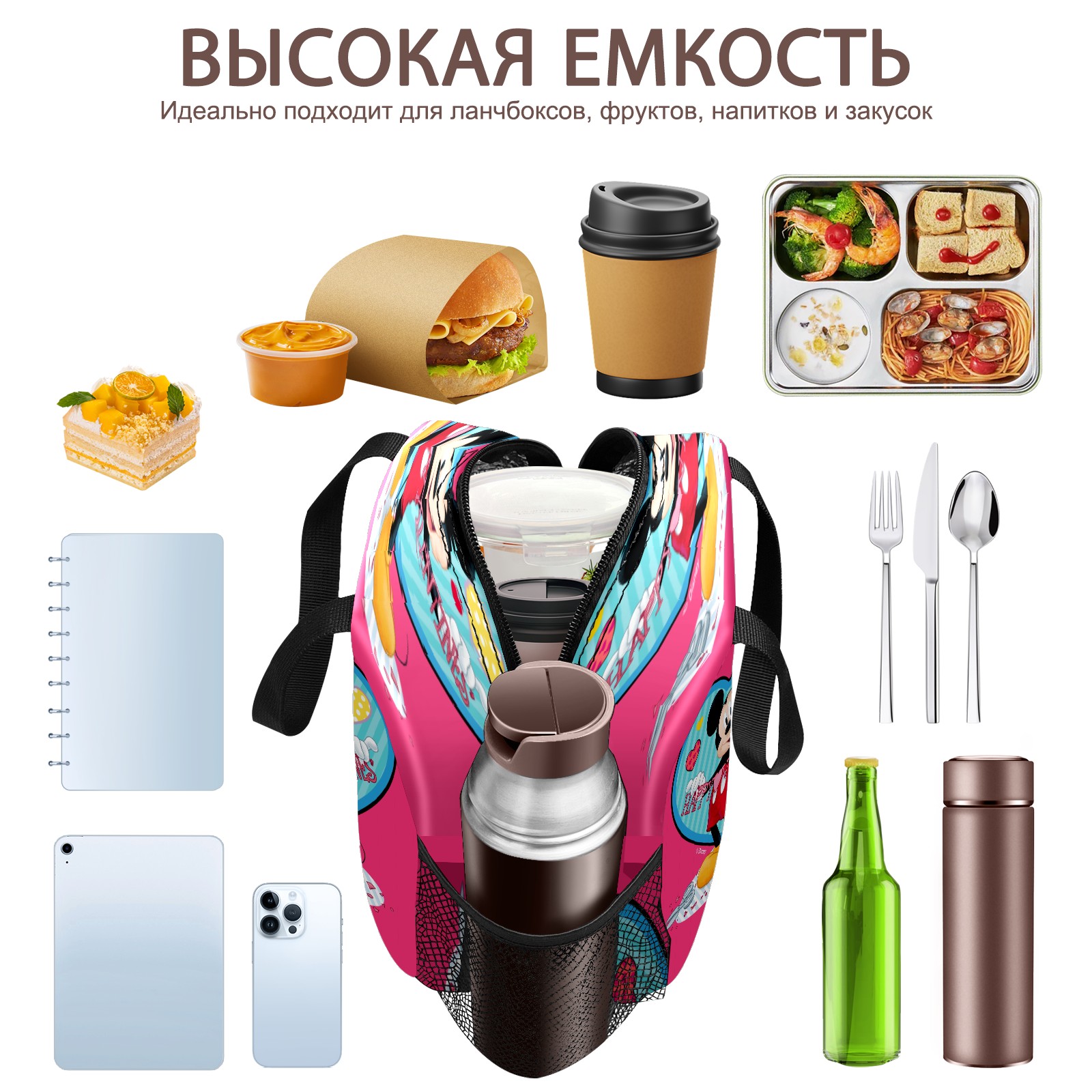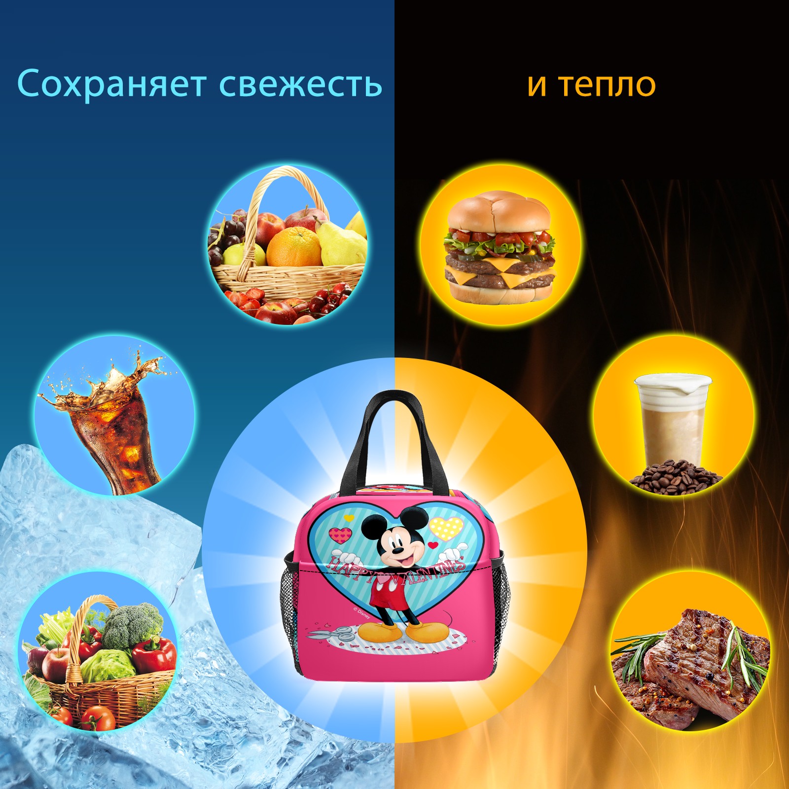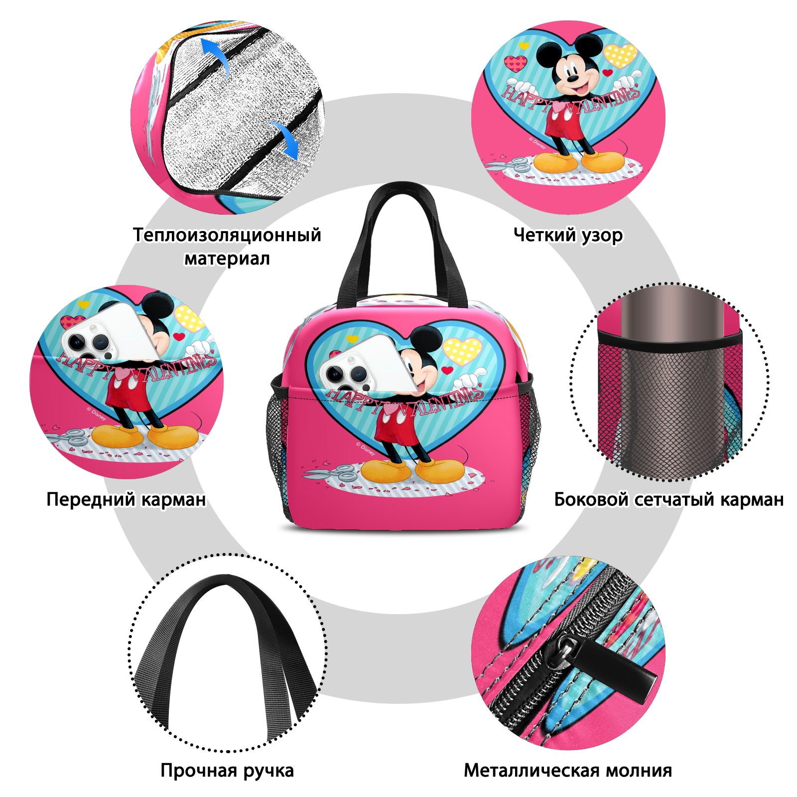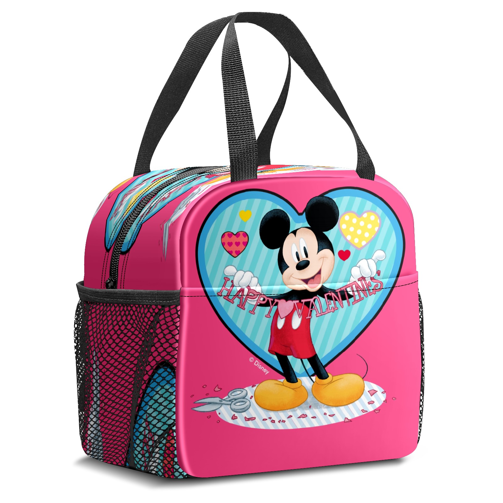 Lunch Bag,Lunch Box for Women Men,Mickey Mouse Happy Valentines Day Pink Reusable Insulated Lunch Tote,Small Leakproof Cute Lunch Cooler with High Capacity for Work,Picnic,Camping
