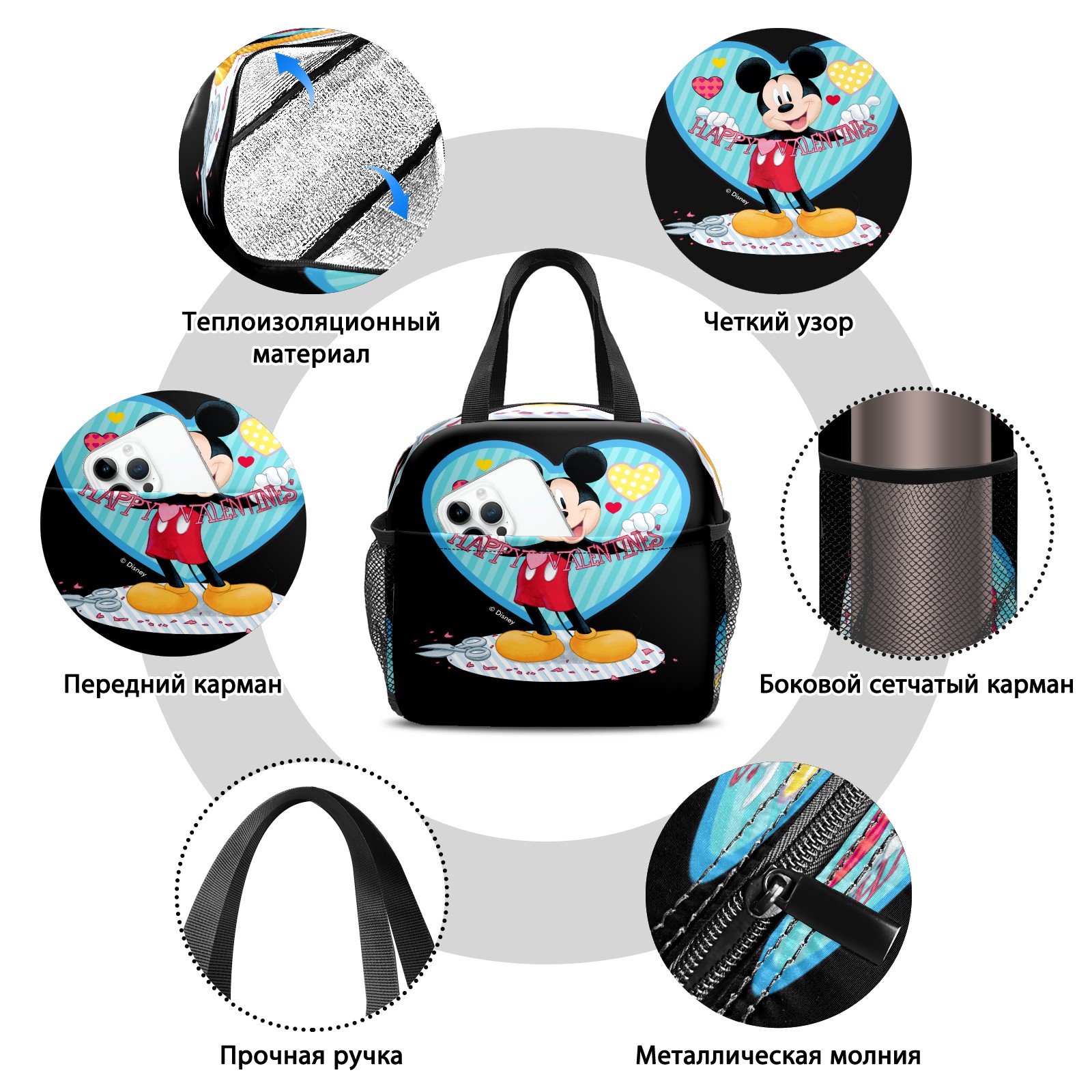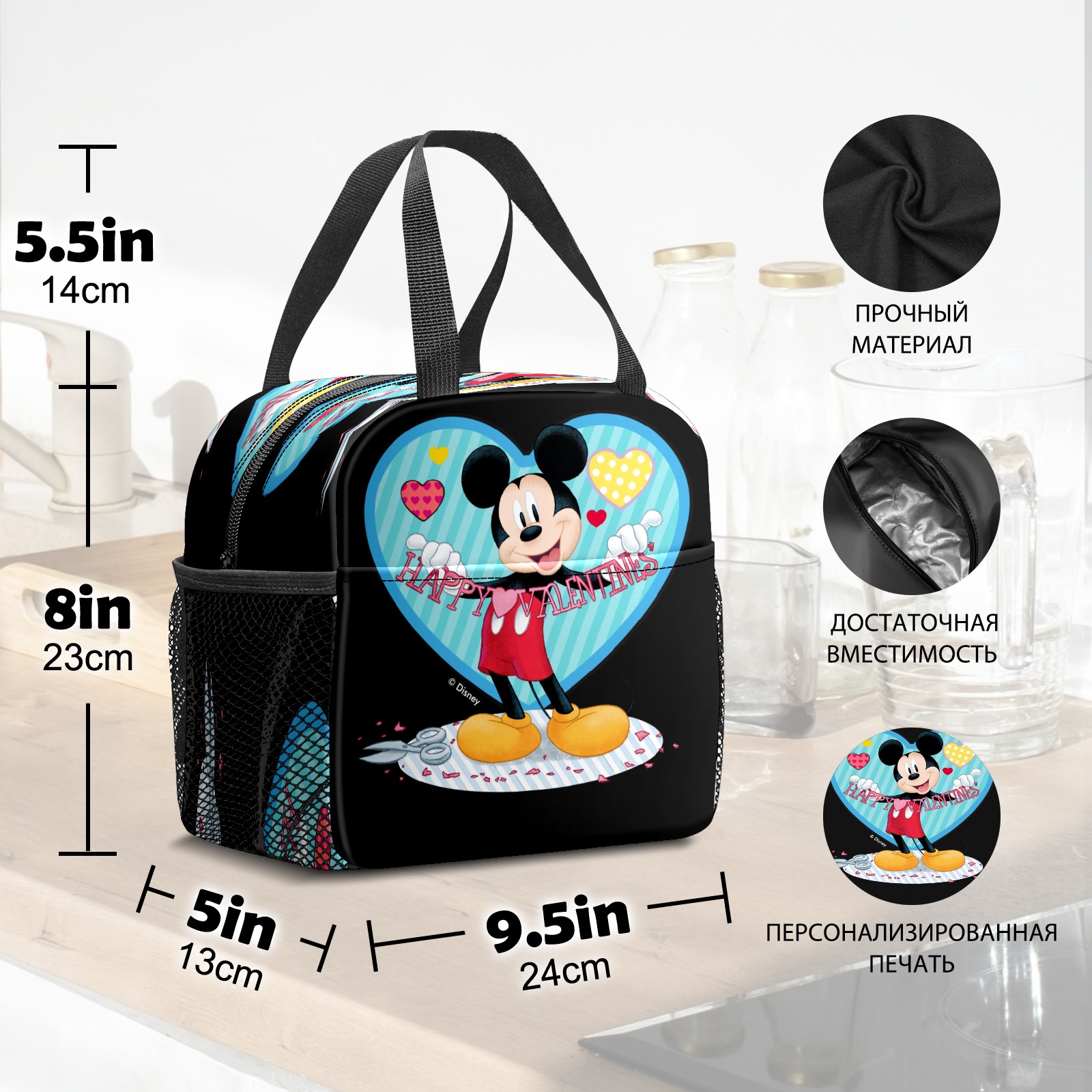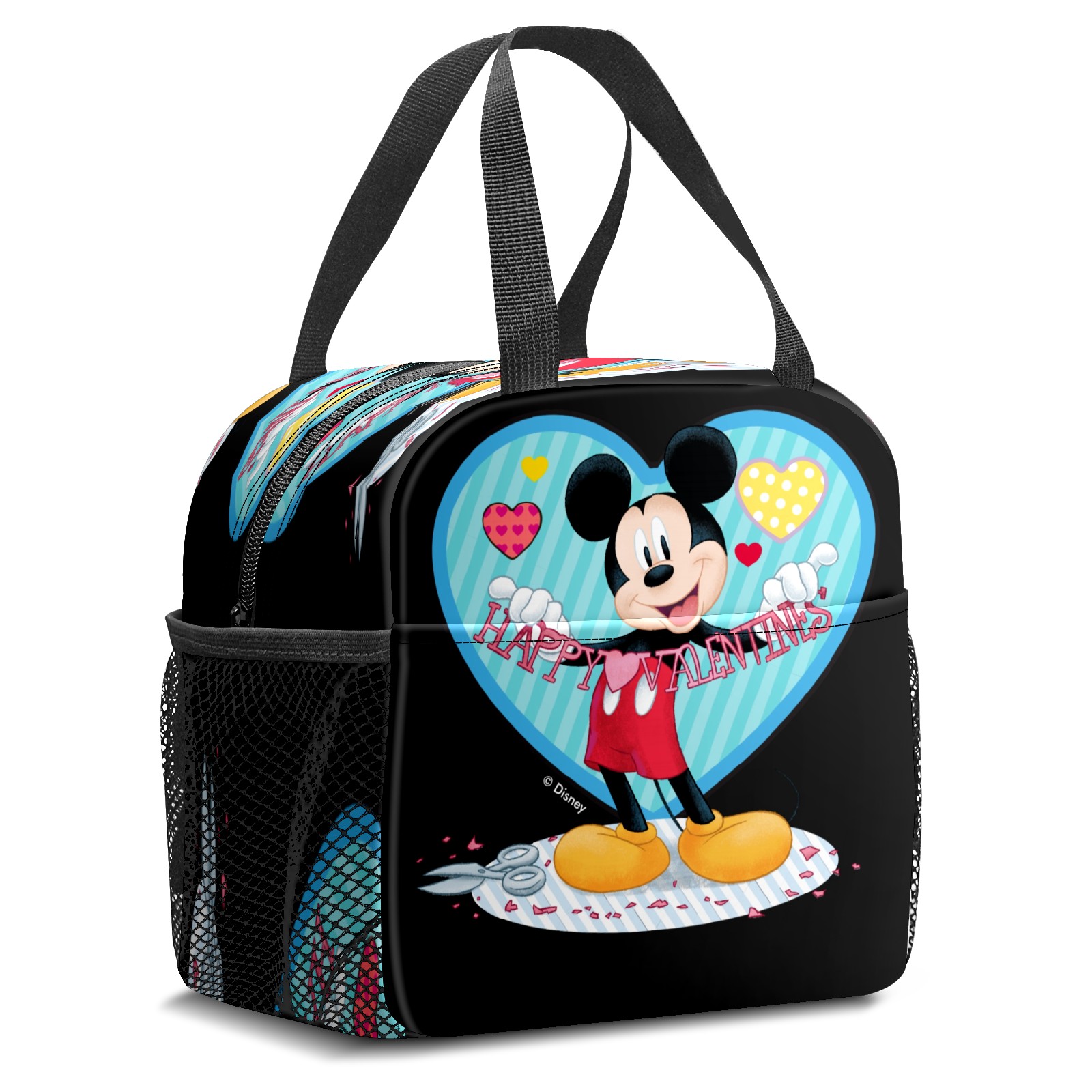 Lunch Bag,Lunch Box for Women Men,Mickey Mouse Happy Valentines Day Black Reusable Insulated Lunch Tote,Small Leakproof Cute Lunch Cooler with High Capacity for Work,Picnic,Camping