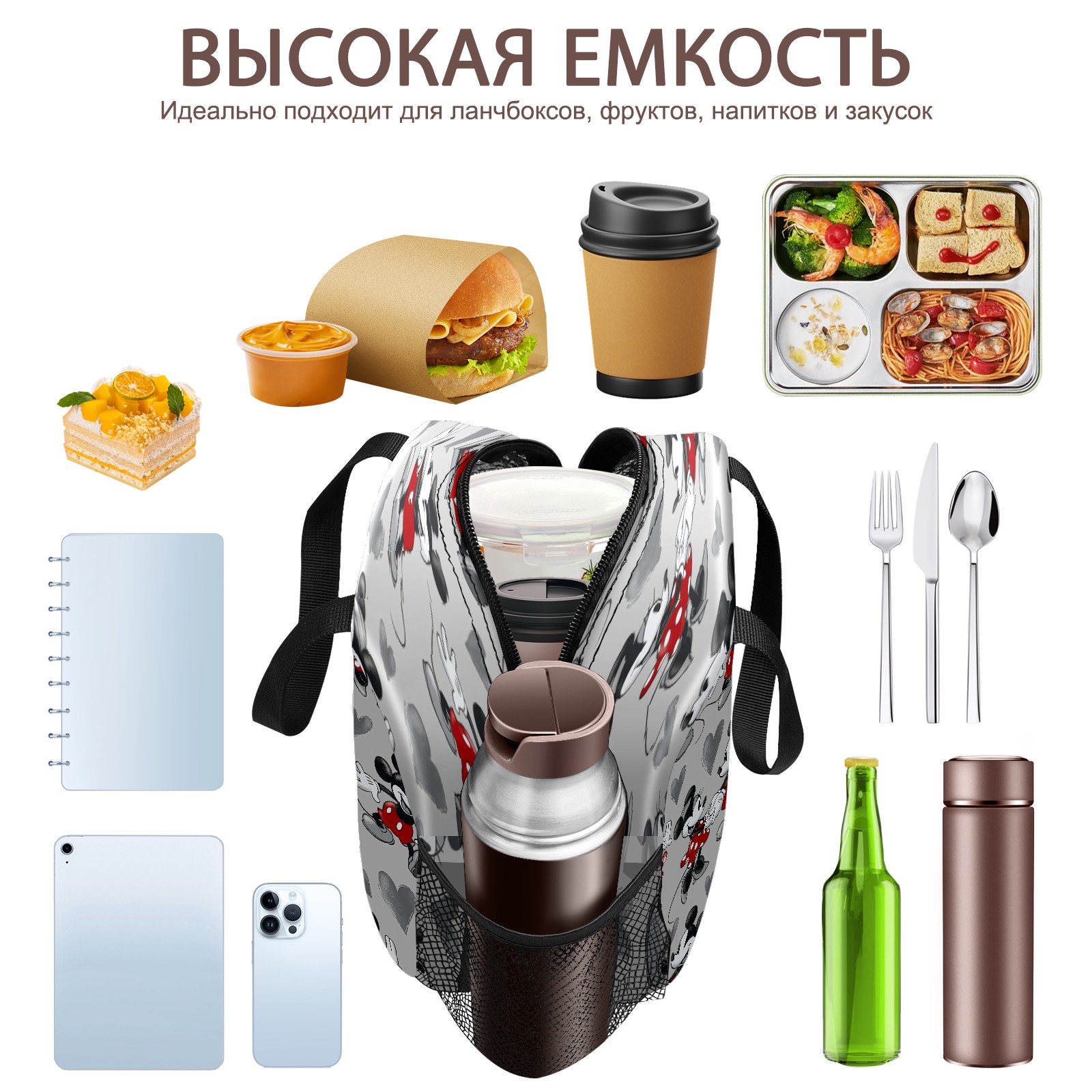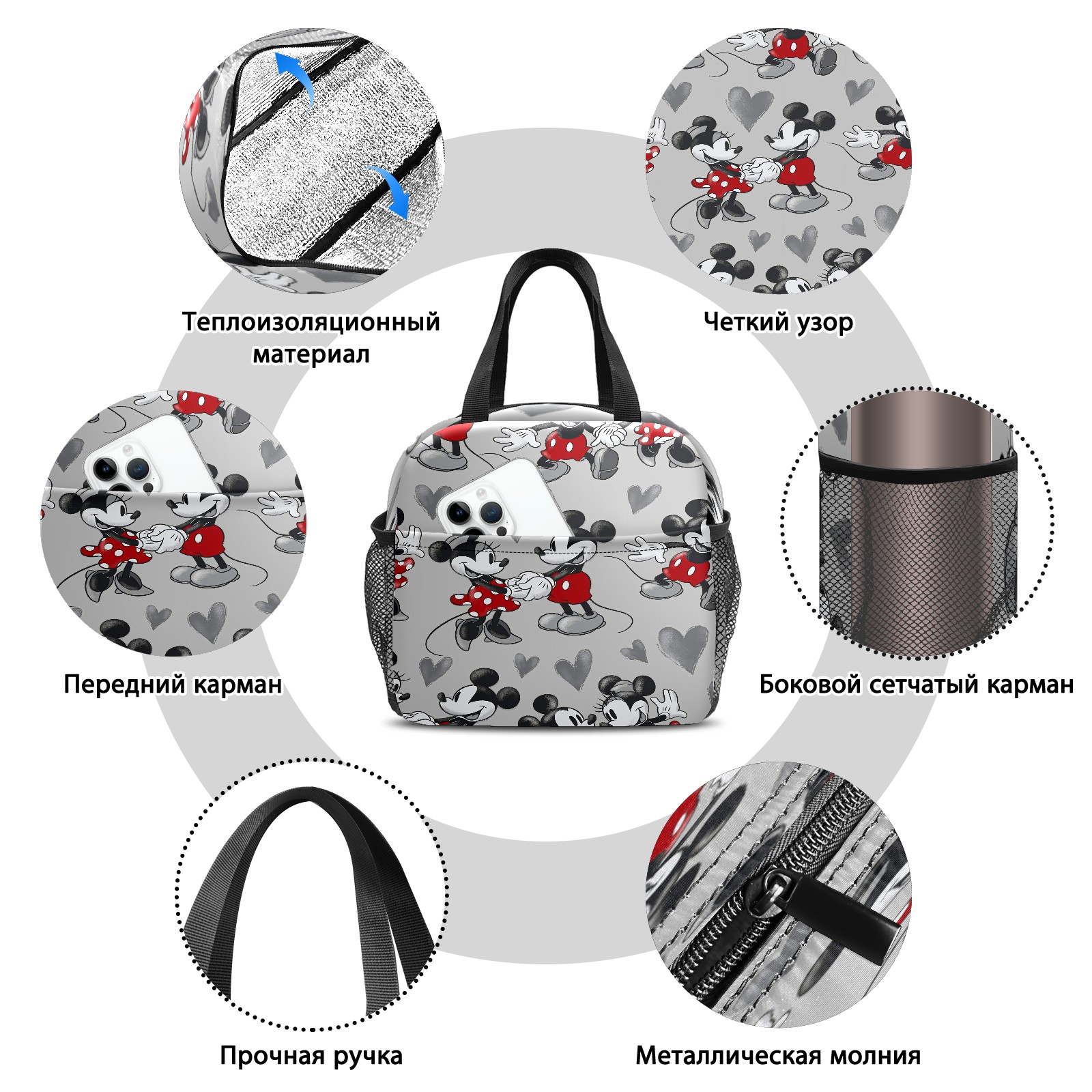 Lunch Bag,Lunch Box for Women Men,Mickey Mouse Grey Love Heart Reusable Insulated Lunch Tote,Small Leakproof Cute Lunch Cooler with High Capacity for Work,Picnic,Camping