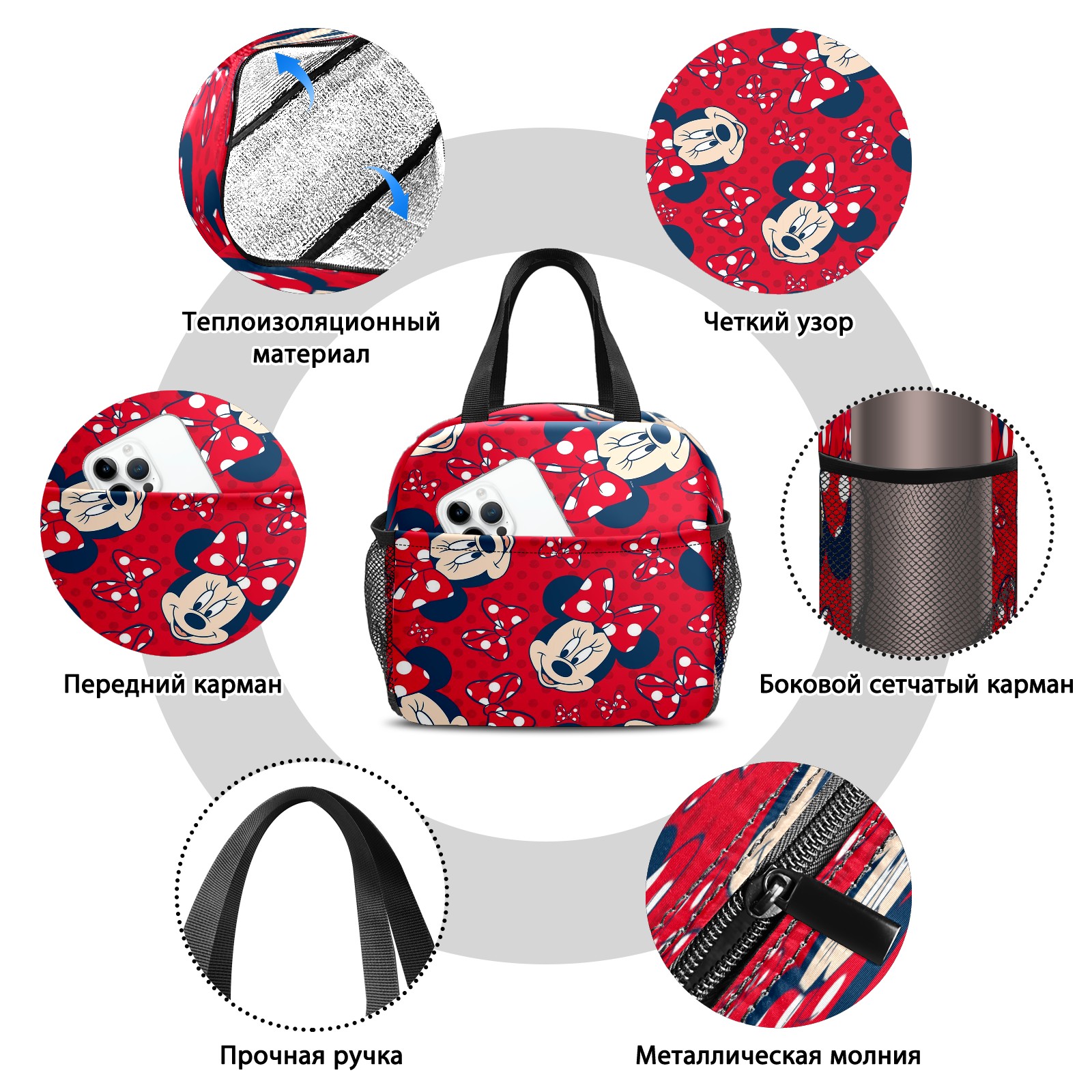 Lunch Bag,Lunch Box for Women Men,Mickey Mouse Minnie With Bow Reusable Insulated Lunch Tote,Small Leakproof Cute Lunch Cooler with High Capacity for Work,Picnic,Camping