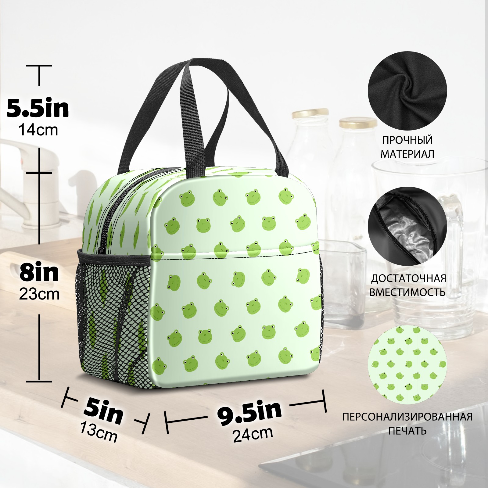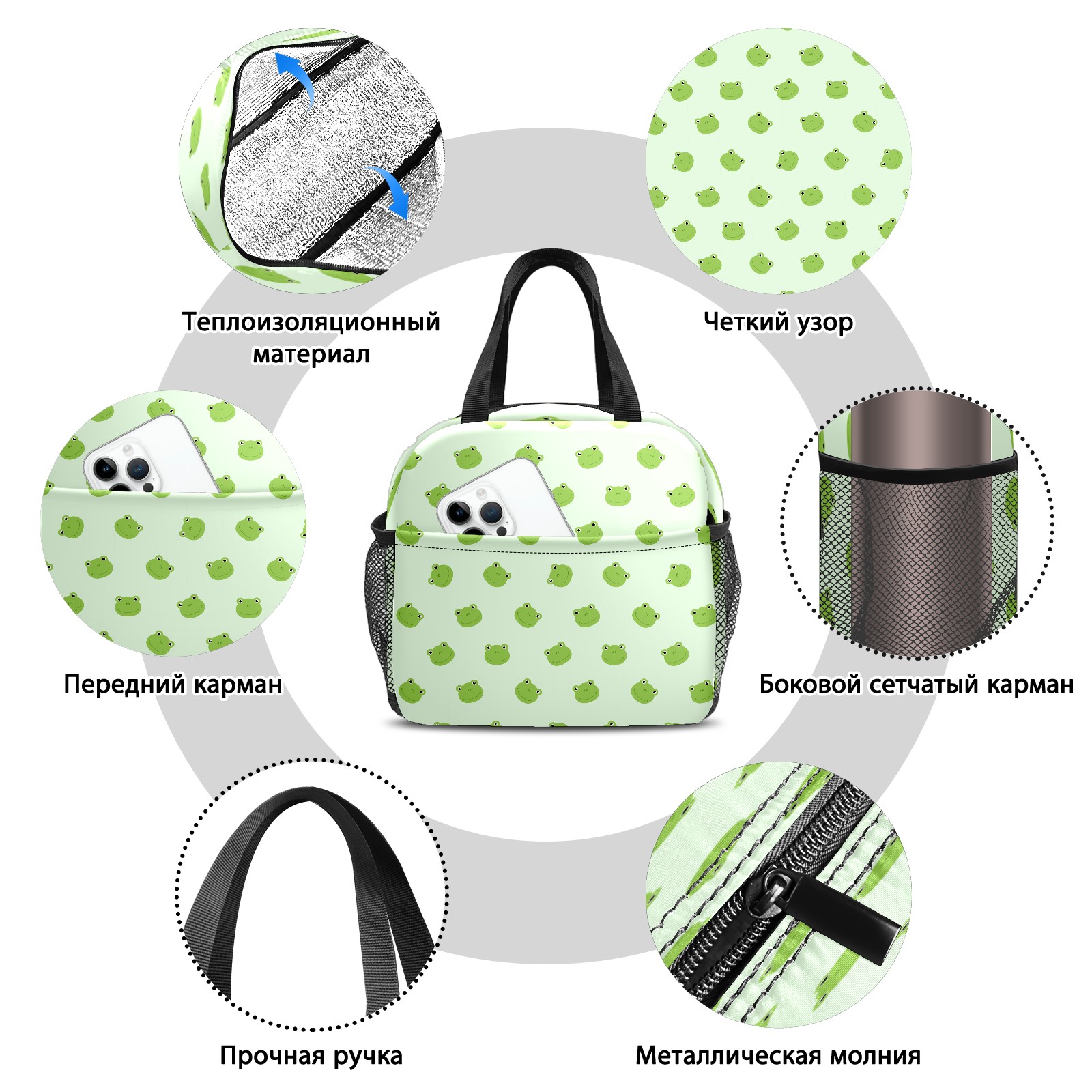 Lunch Bag,Lunch Box for Women Men,Animal Green Frog Pattern Reusable Insulated Lunch Tote,Small Leakproof Cute Lunch Cooler with High Capacity for Work,Picnic,Camping