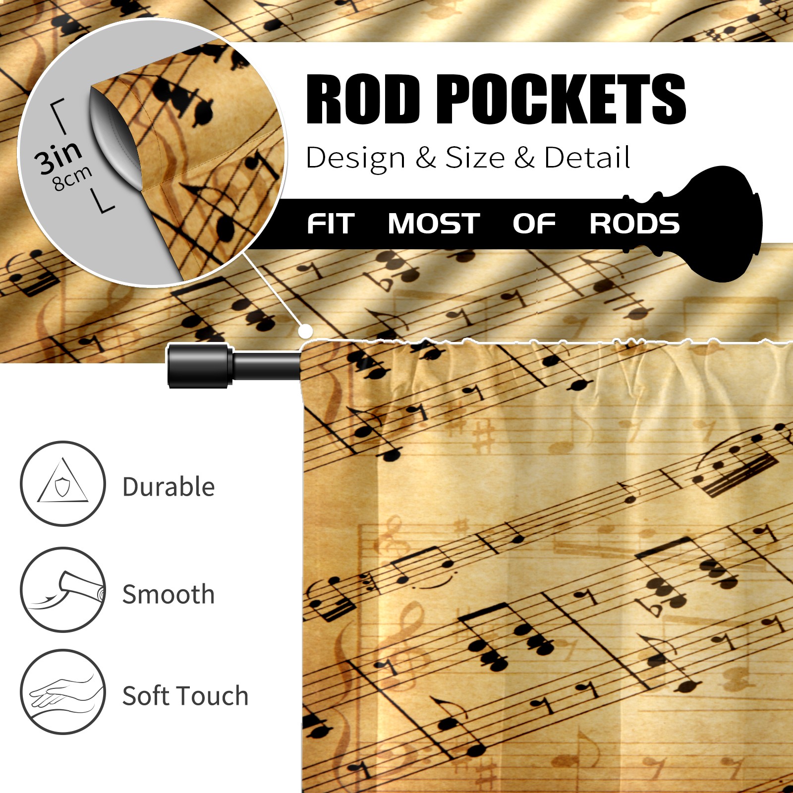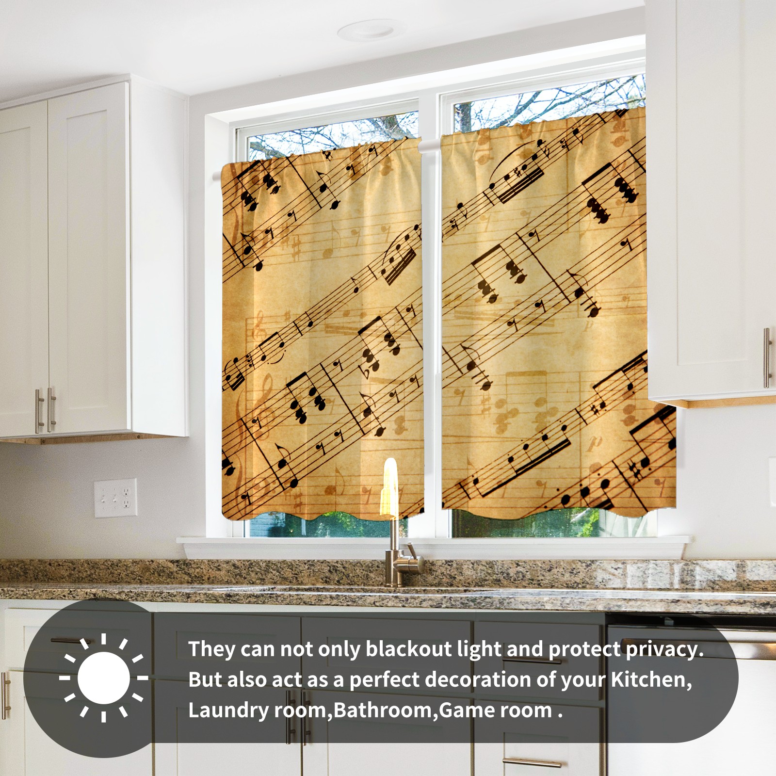 Шторы-панно для дома, декоративные драпировки для гостиной и спальни, легкие и прочные, Vintage Brown Staff Music Note