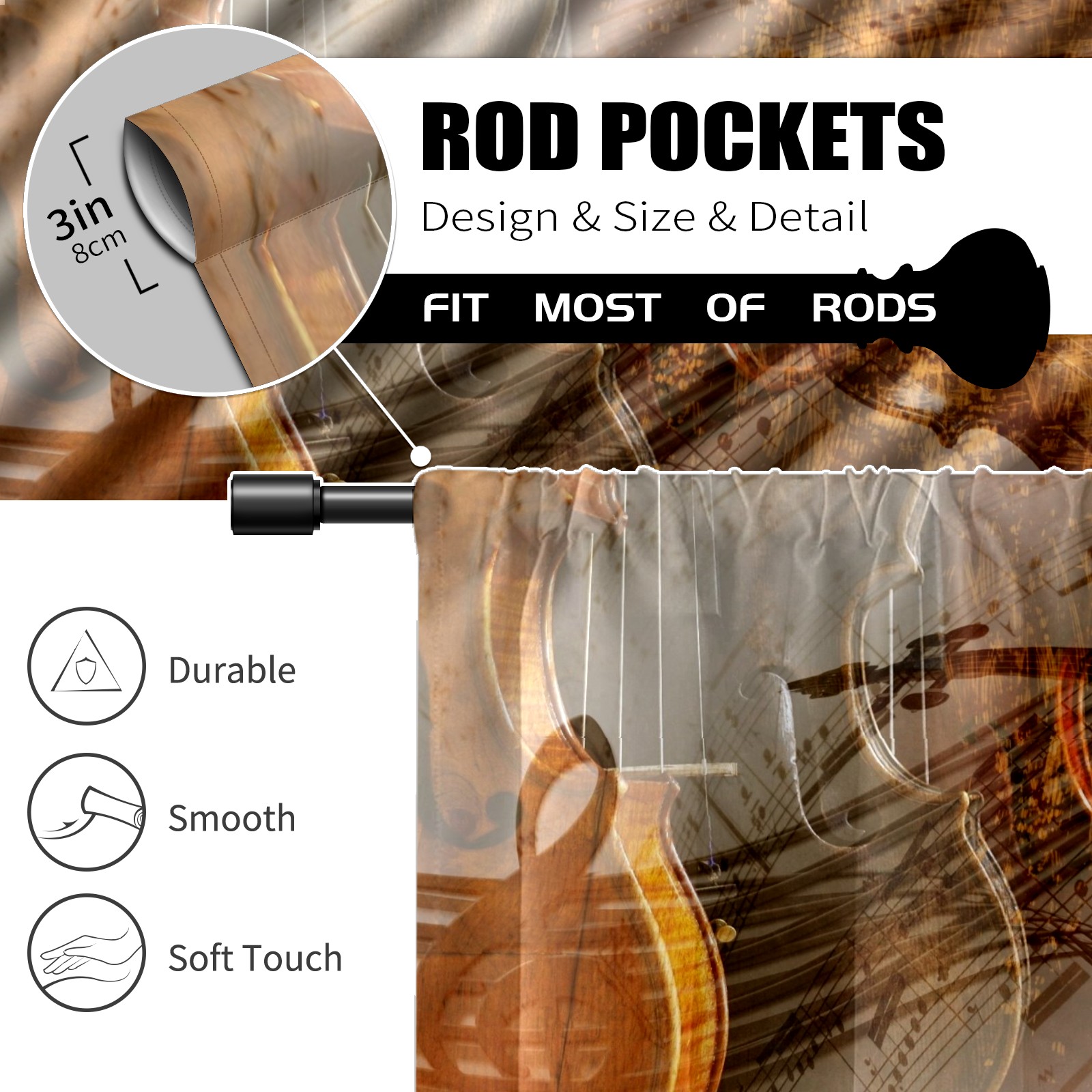 Шторы-панно для дома, декоративные драпировки для гостиной и спальни, легкие и прочные, Vintage Violin Music Instrument