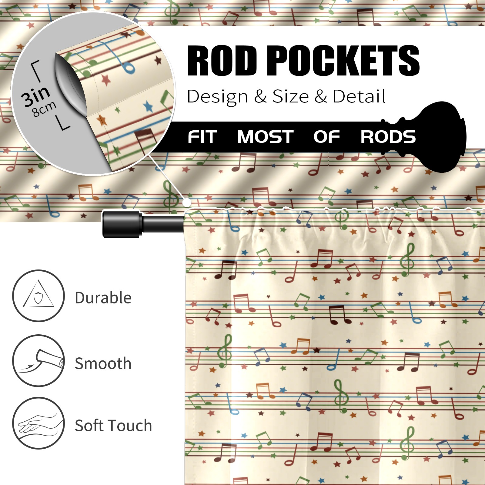 Шторы-панно для дома, декоративные драпировки для гостиной и спальни, легкие и прочные, Retro Musical Notes