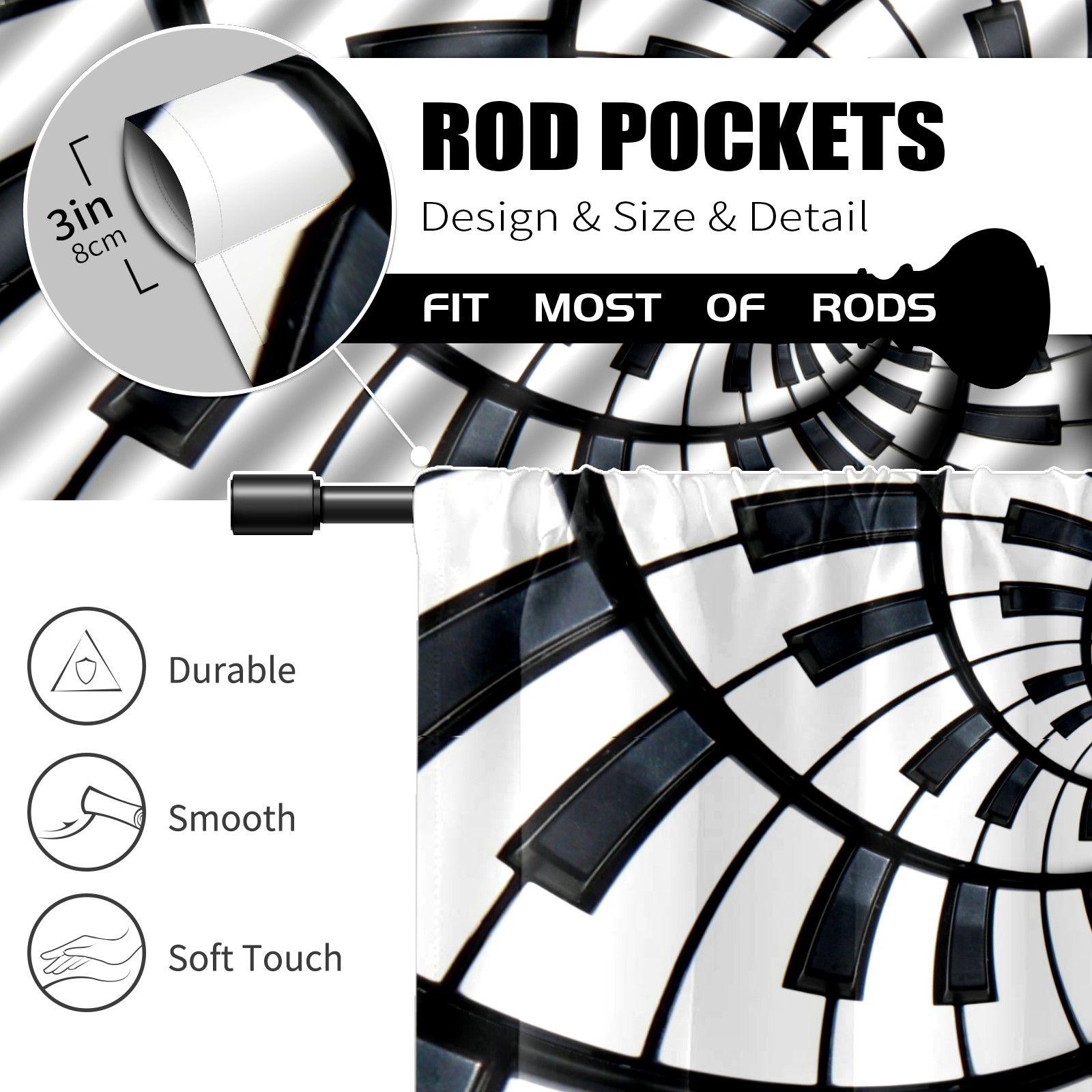 Шторы-панно для дома, декоративные драпировки для гостиной и спальни, легкие и прочные, Piano Key Abstract