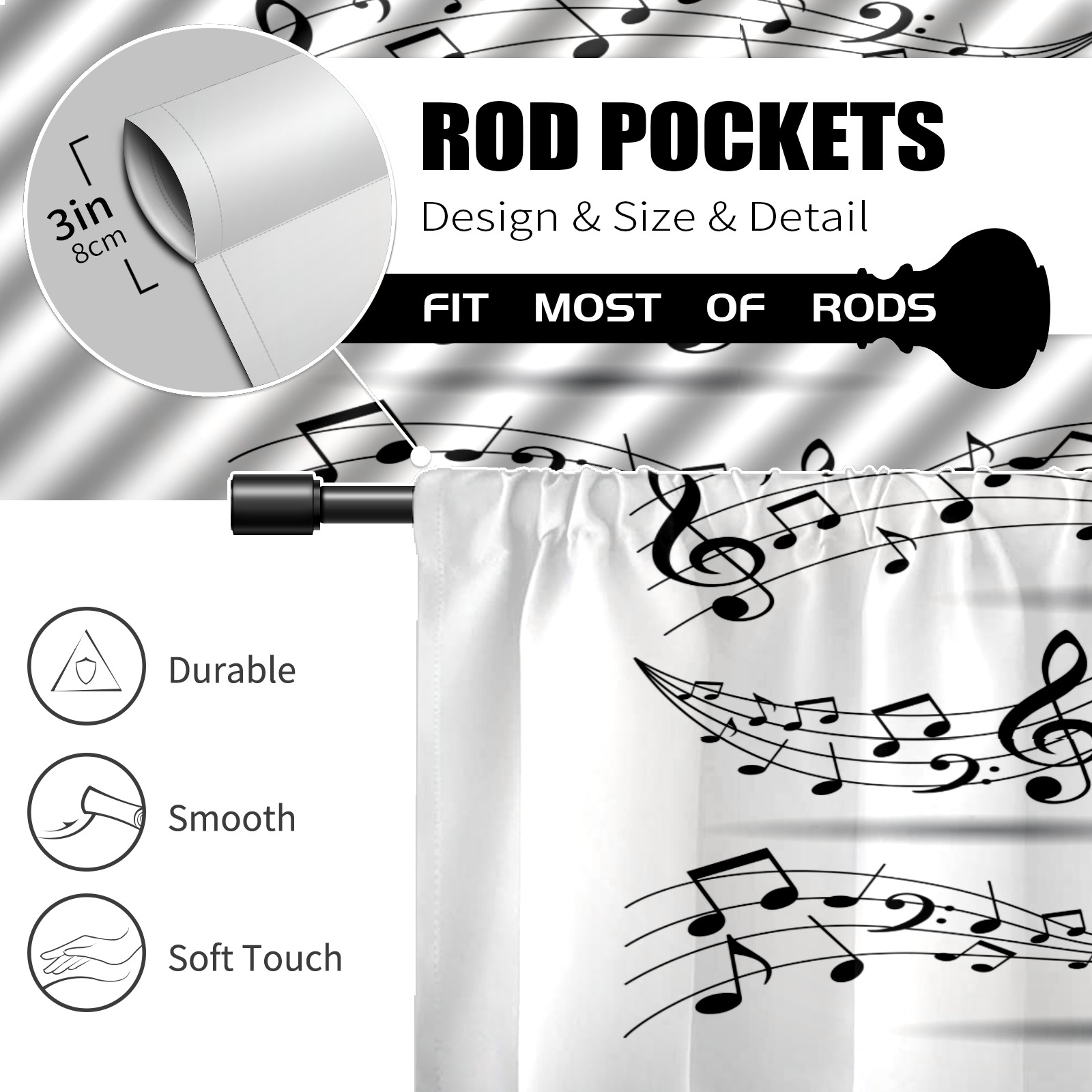 Шторы-панно для дома, декоративные драпировки для гостиной и спальни, легкие и прочные, Pentagrams Musical Notes Staff