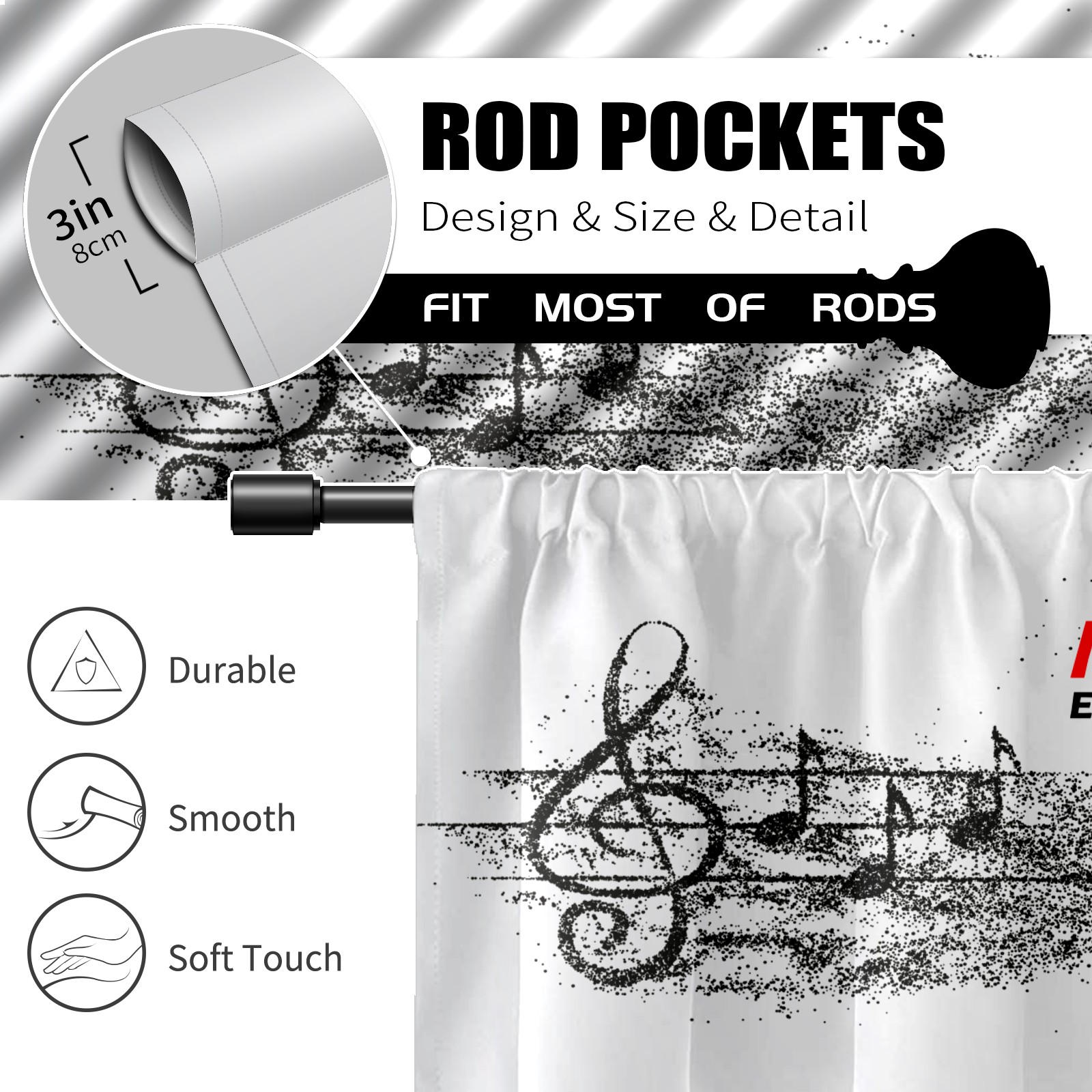 Шторы-панно для дома, декоративные драпировки для гостиной и спальни, легкие и прочные, Music Notes Staff