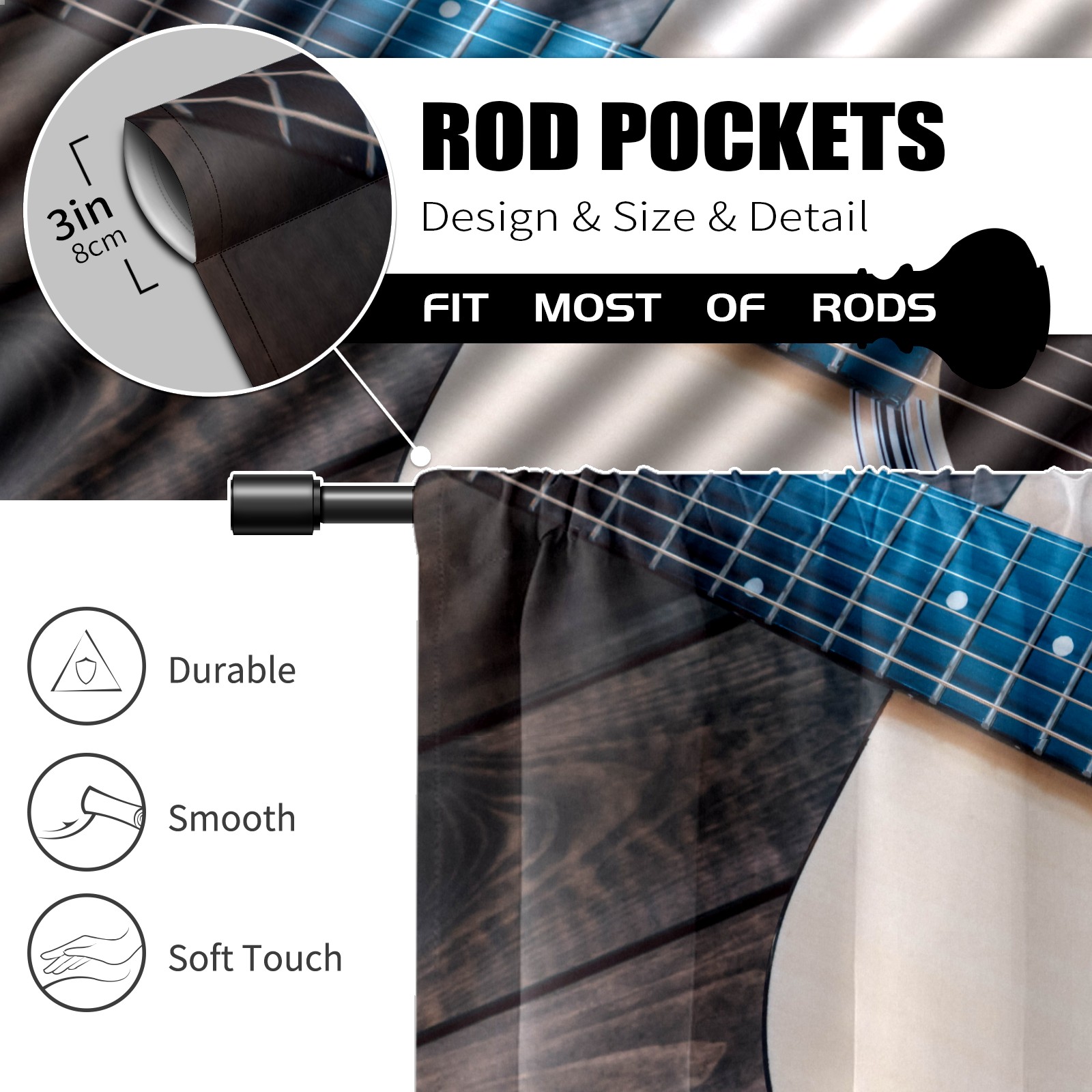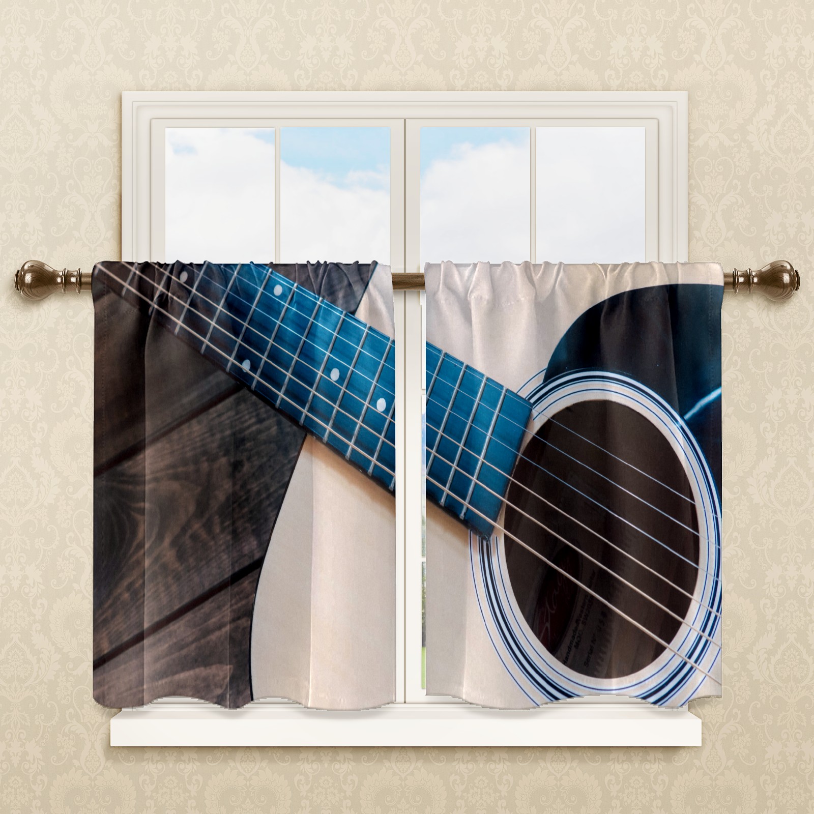 Шторы-панно для дома, декоративные драпировки для гостиной и спальни, легкие и прочные, Music Guitar Retro