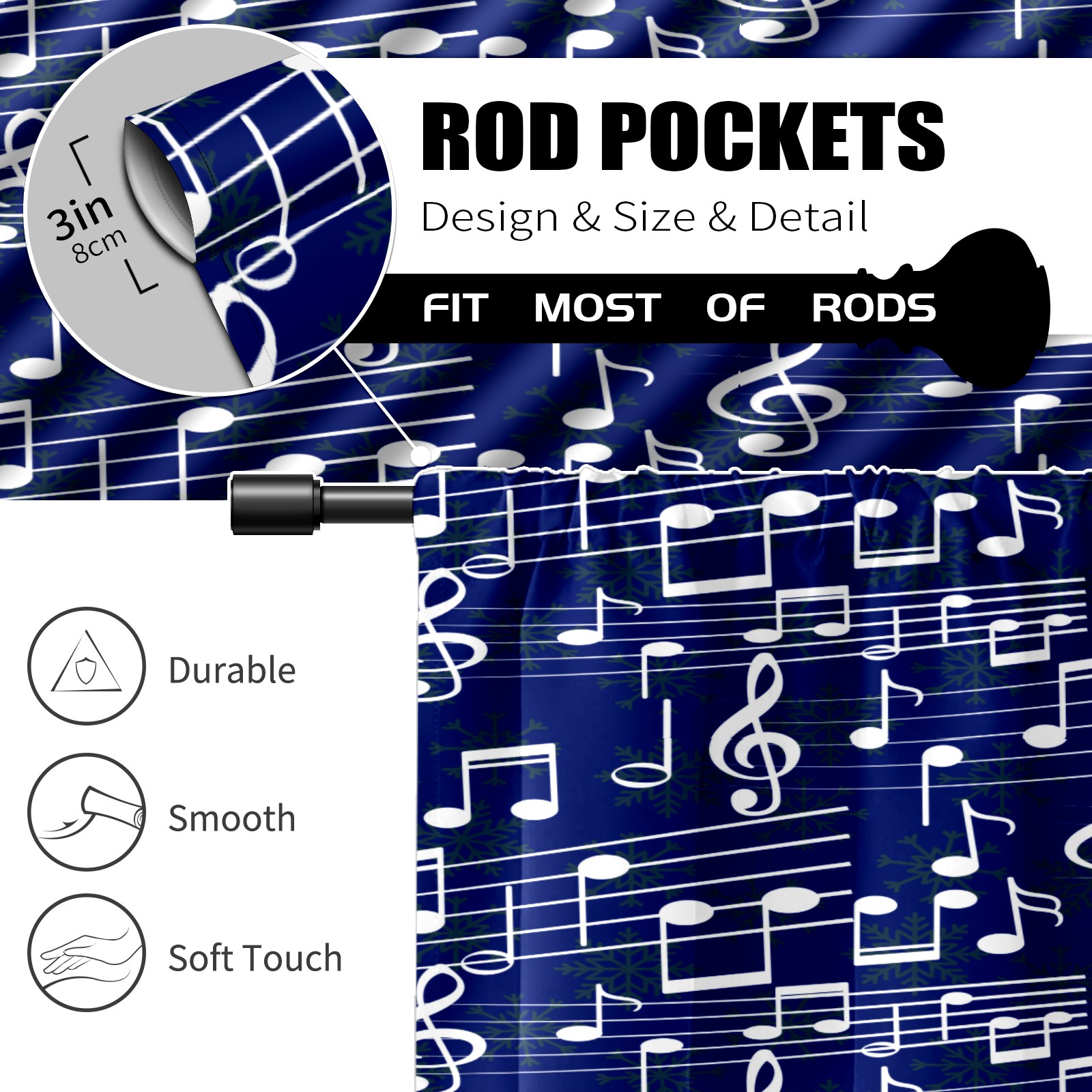 Шторы-панно для дома, декоративные драпировки для гостиной и спальни, легкие и прочные, Music Note Pattern