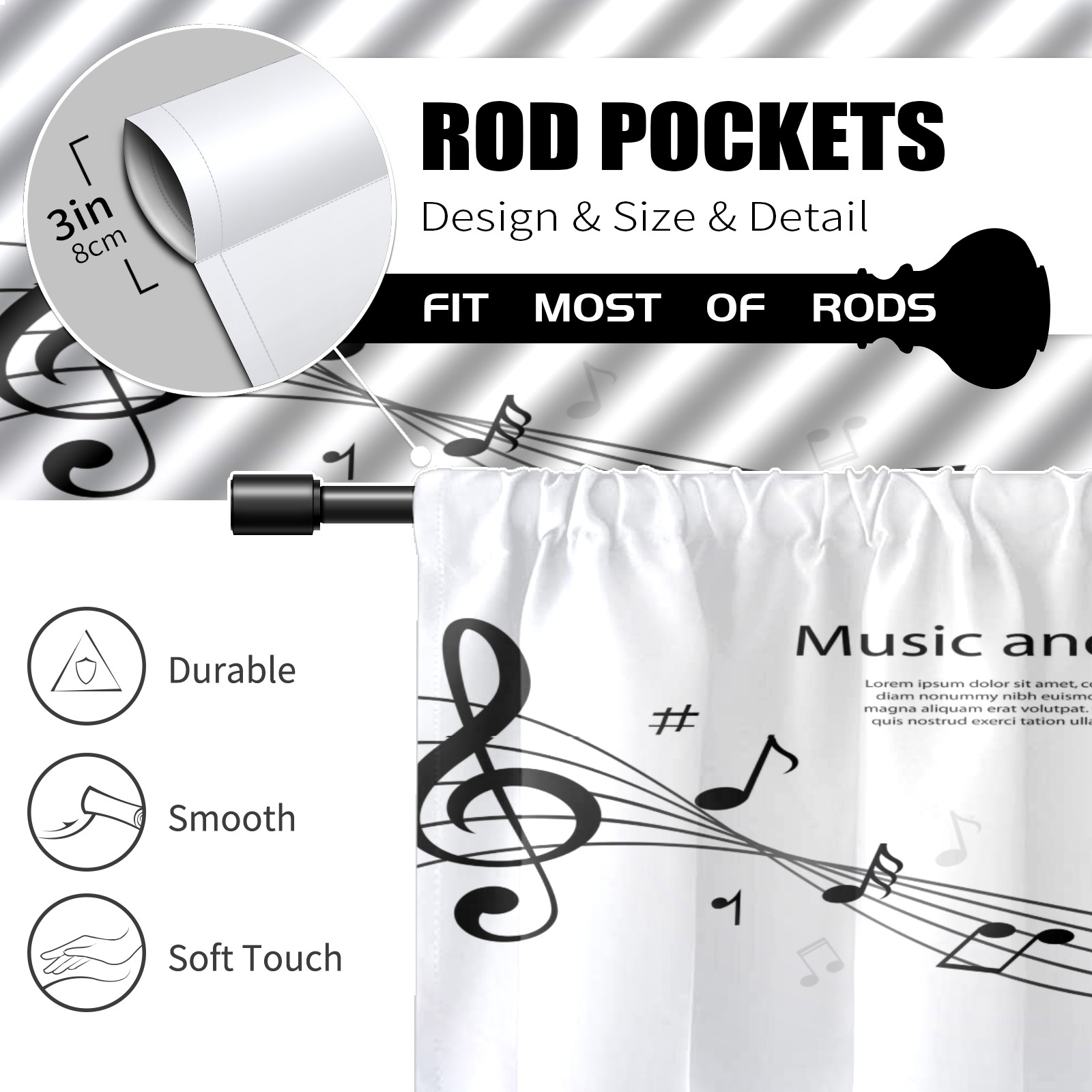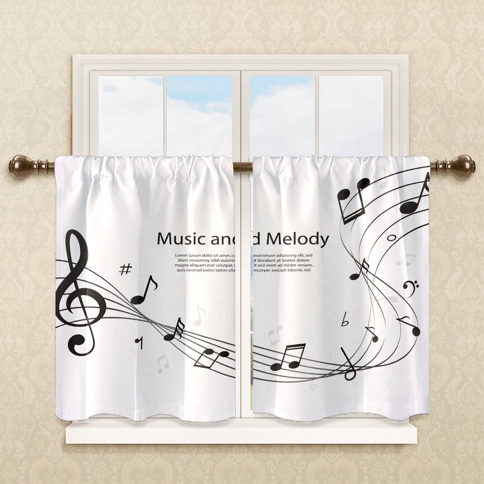 Шторы-панно для дома, декоративные драпировки для гостиной и спальни, легкие и прочные, Musical Notes Staff