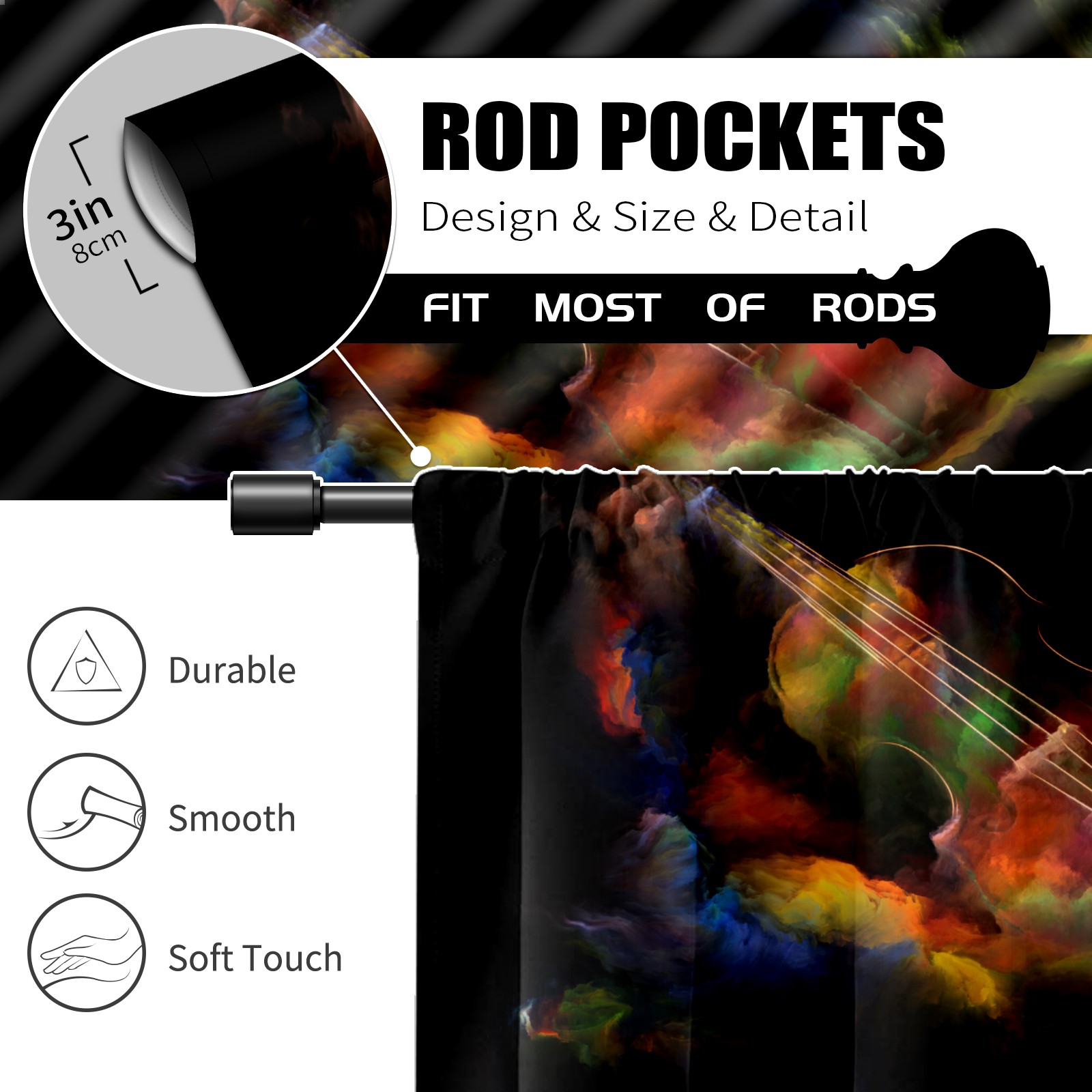 Шторы-панно для дома, декоративные драпировки для гостиной и спальни, легкие и прочные, Colorful Guitar Black