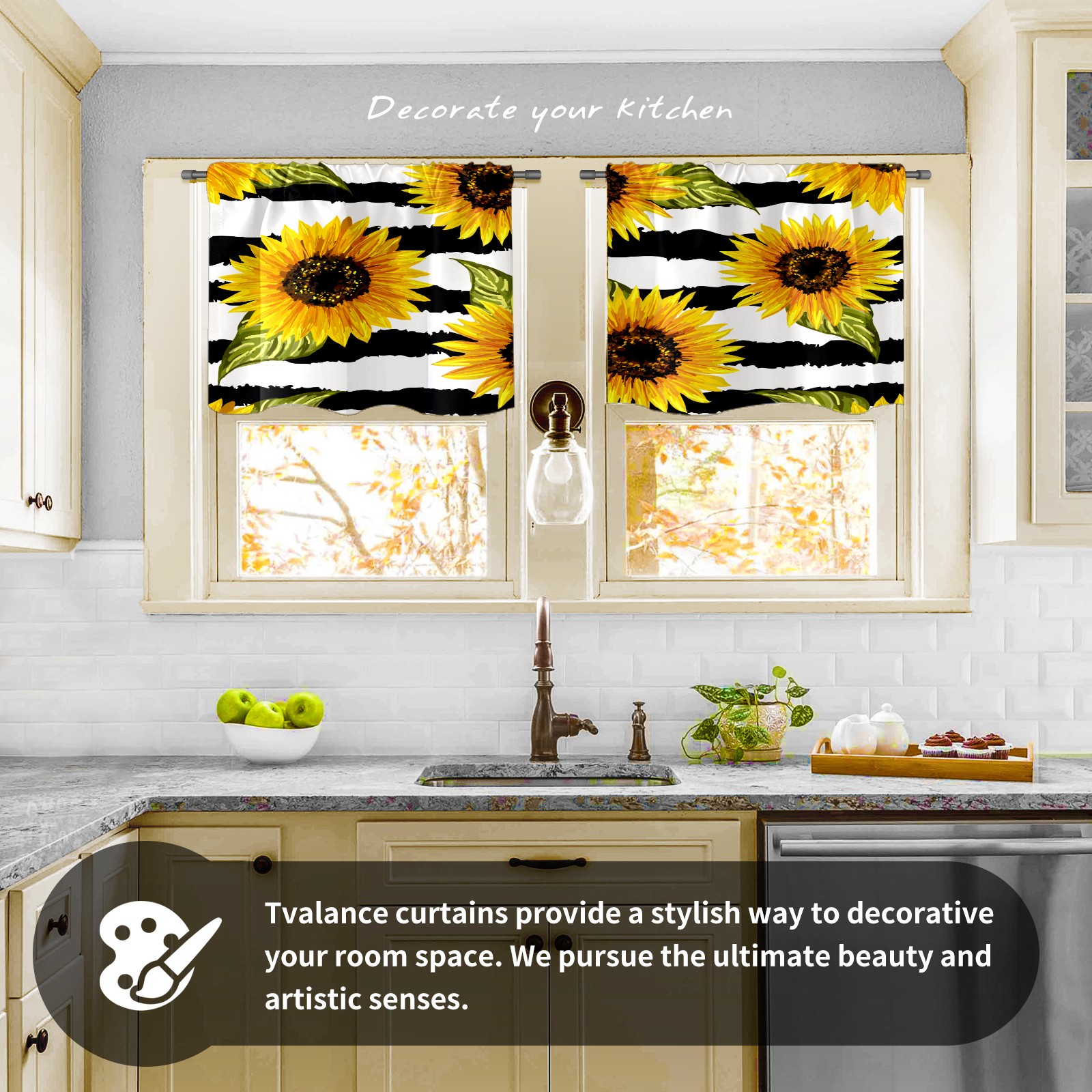 Шторы-панно для дома, декоративные драпировки для гостиной и спальни, легкие и прочные, Sunflowers Black