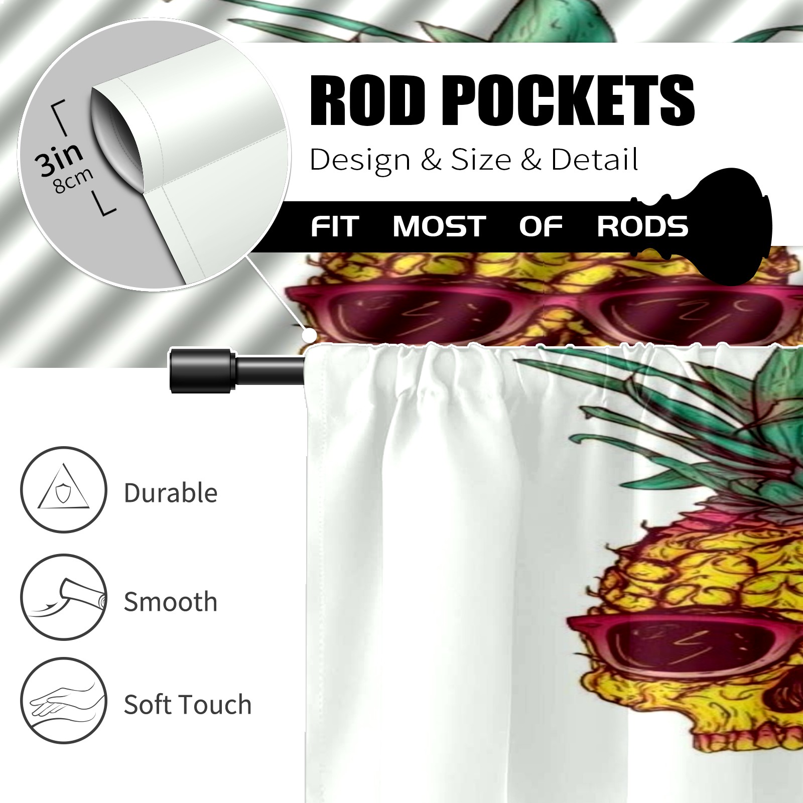 Шторы-панно для дома, декоративные драпировки для гостиной и спальни, легкие и прочные, Cool-pineapple-skull-summer