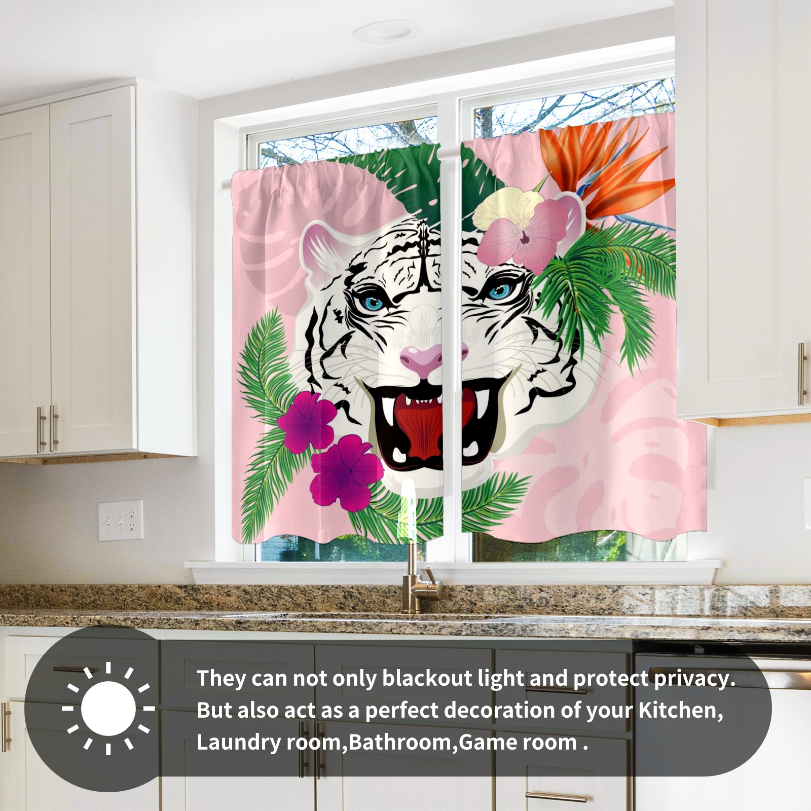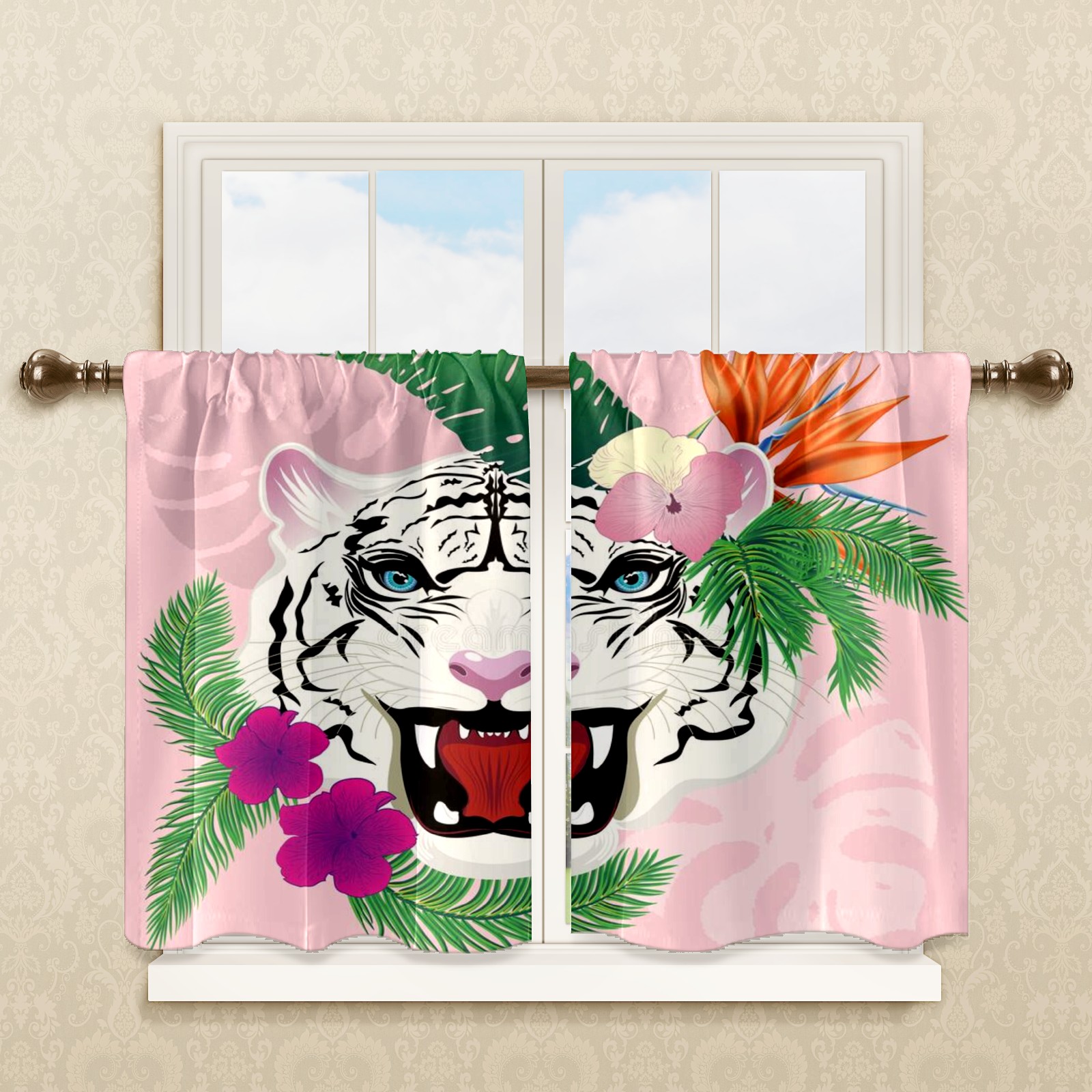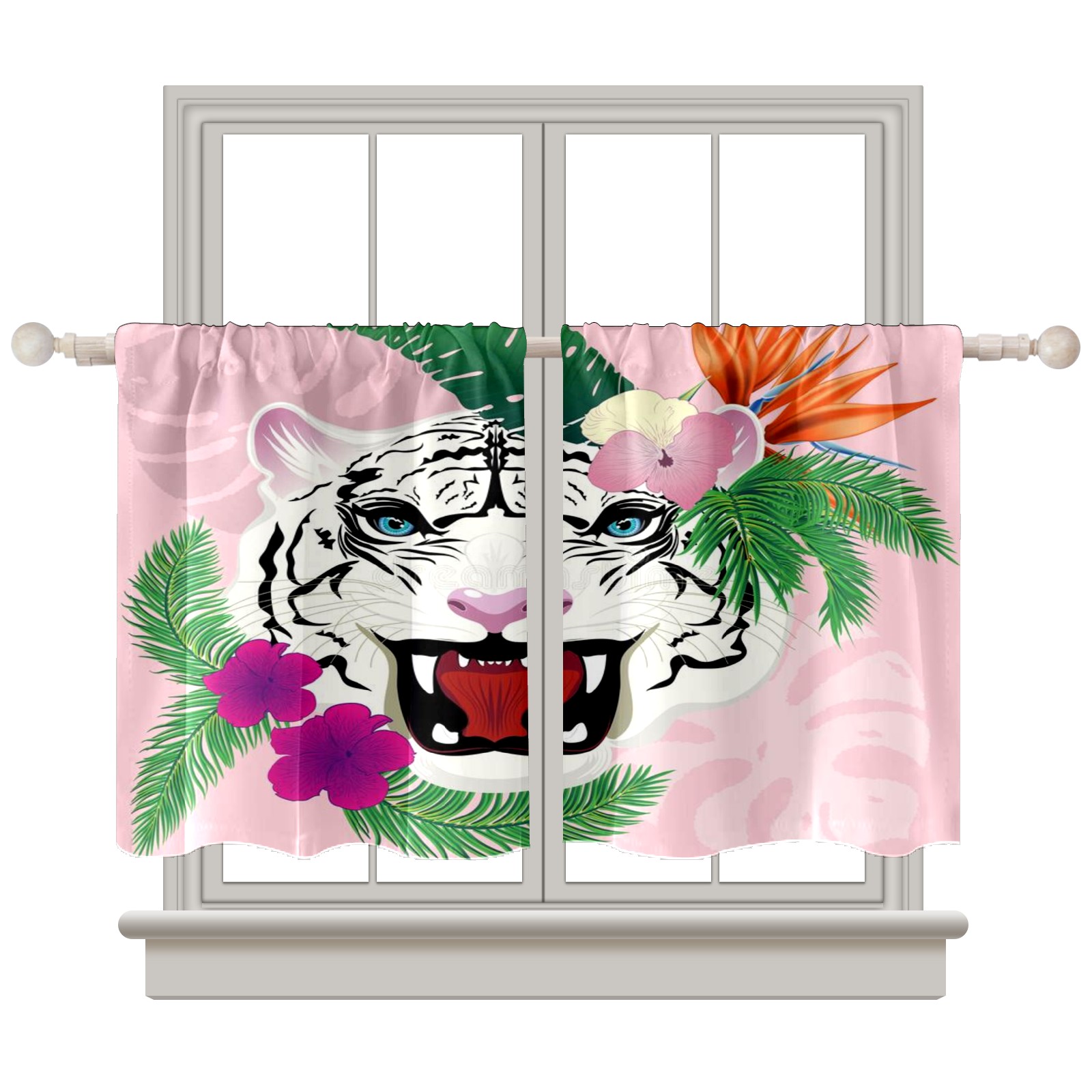 Шторы-панно для дома, декоративные драпировки для гостиной и спальни, легкие и прочные, White-tiger-portrait-tropical-leaves-abstract-blue-eyes-flowers