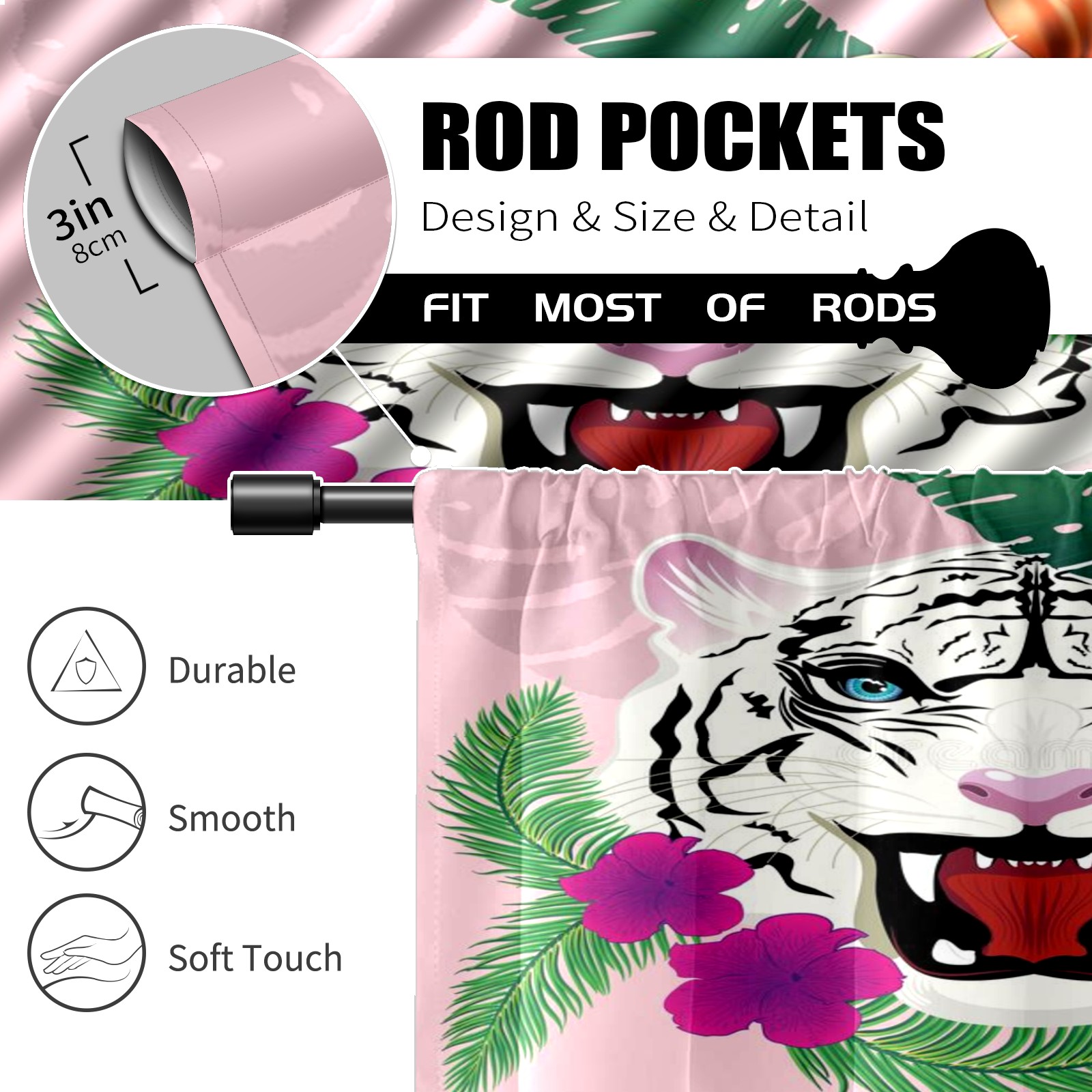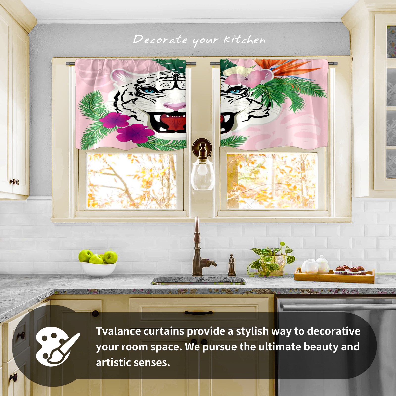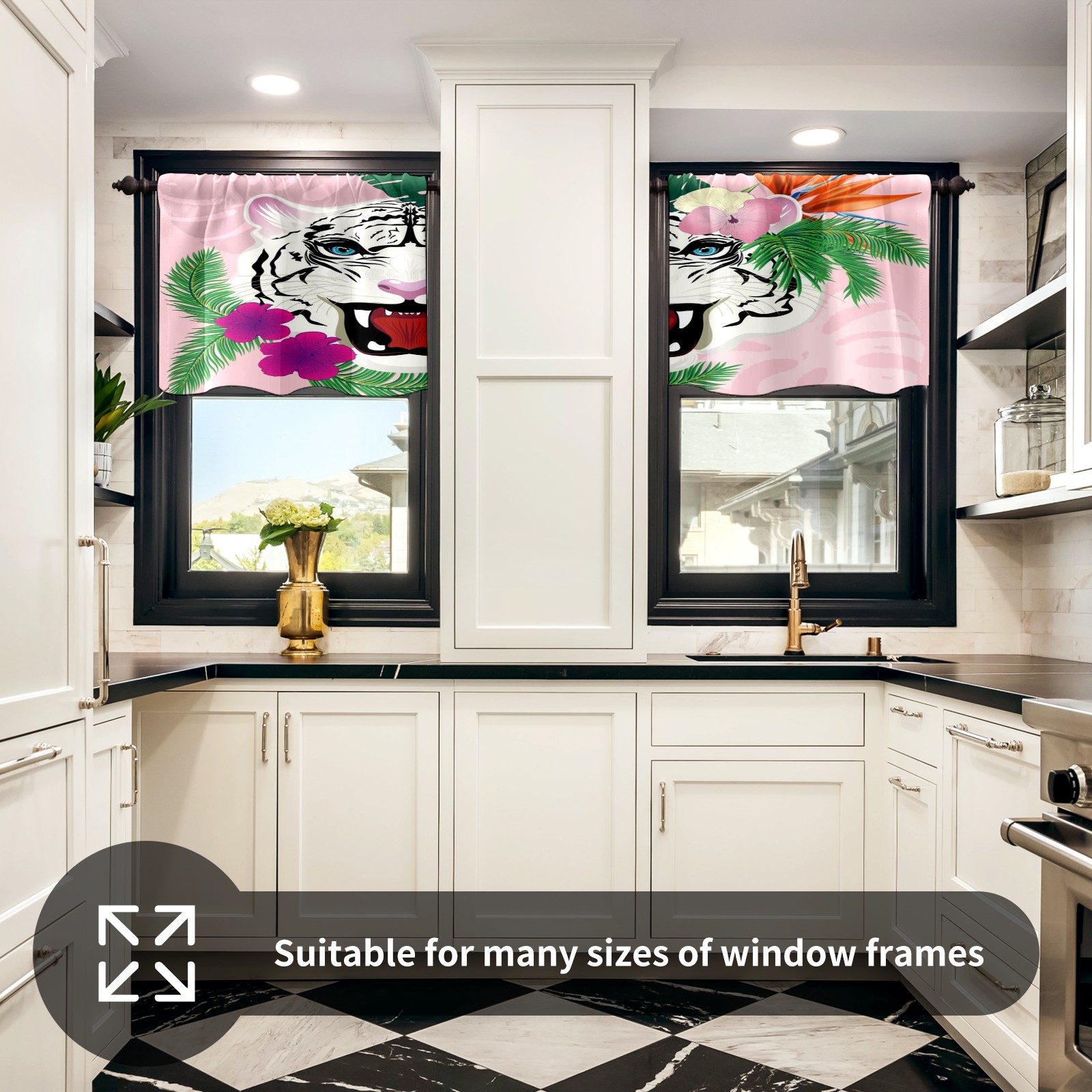 Шторы-панно для дома, декоративные драпировки для гостиной и спальни, легкие и прочные, White-tiger-portrait-tropical-leaves-abstract-blue-eyes-flowers
