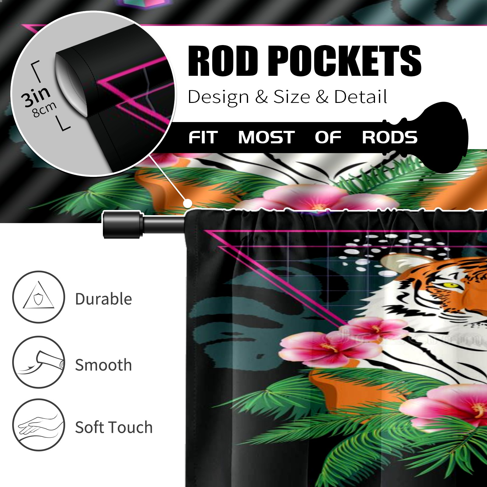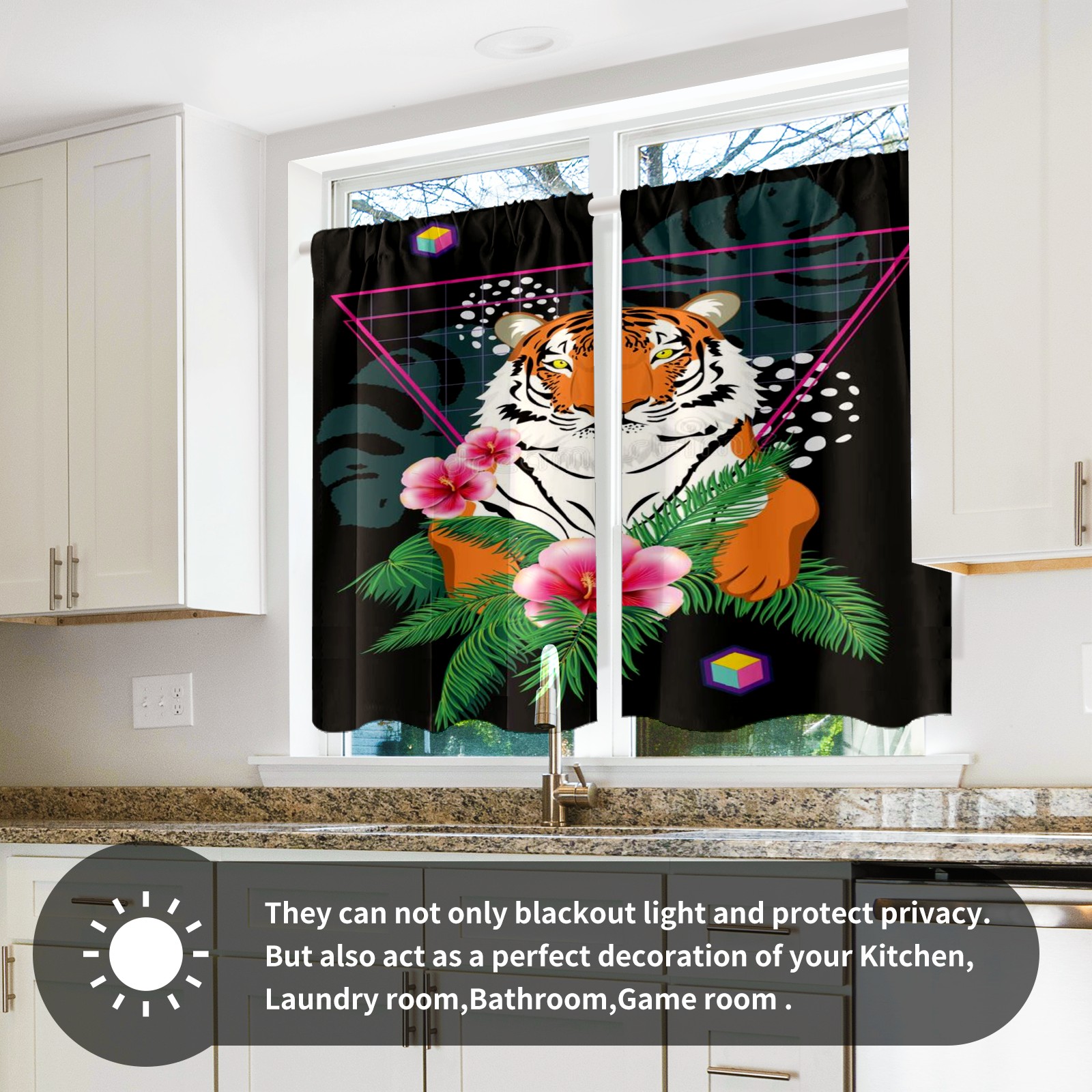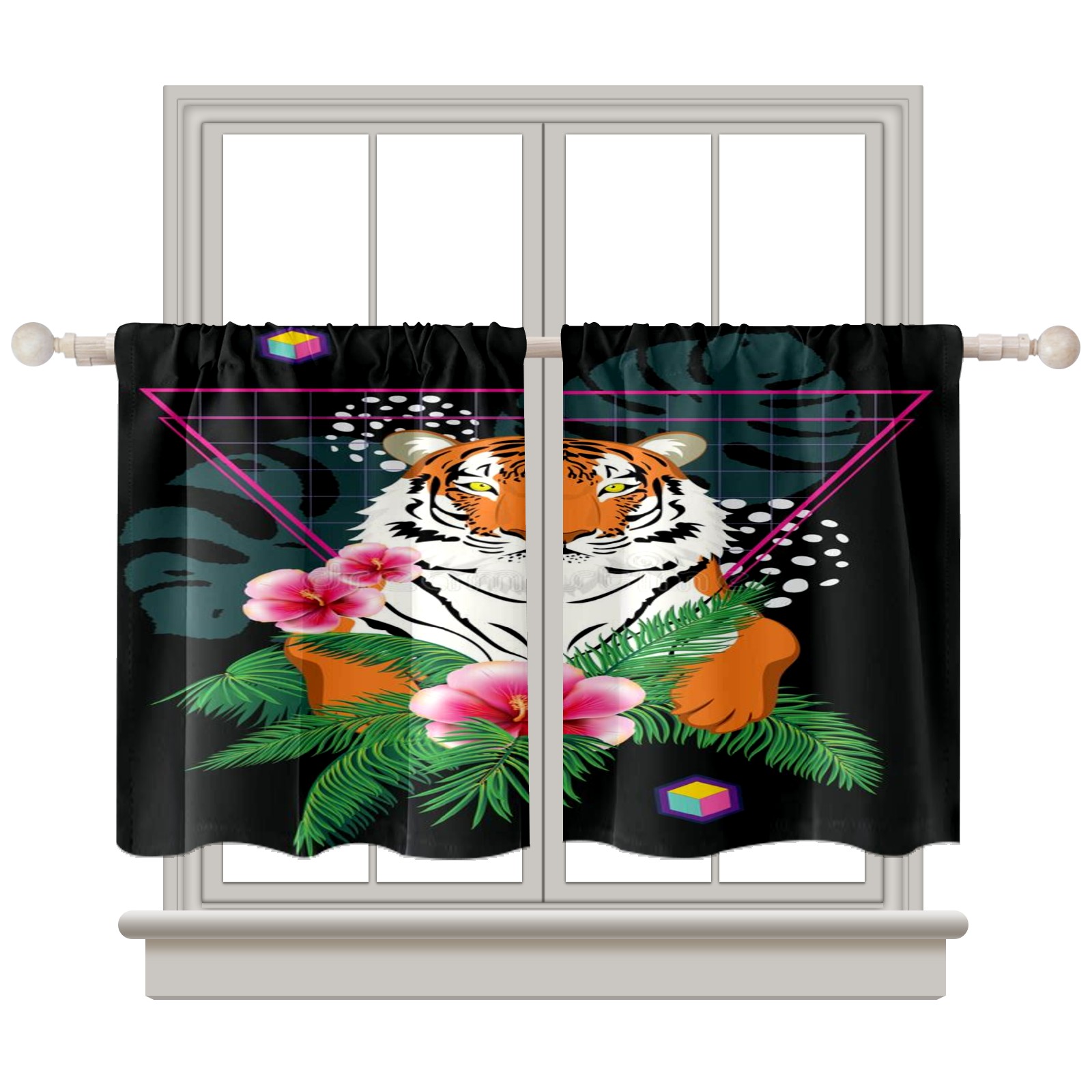Шторы-панно для дома, декоративные драпировки для гостиной и спальни, легкие и прочные, Tiger-tropic-leaves-retro-abstract-geometric-elements-tropical-plants
